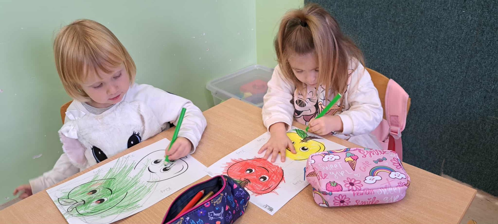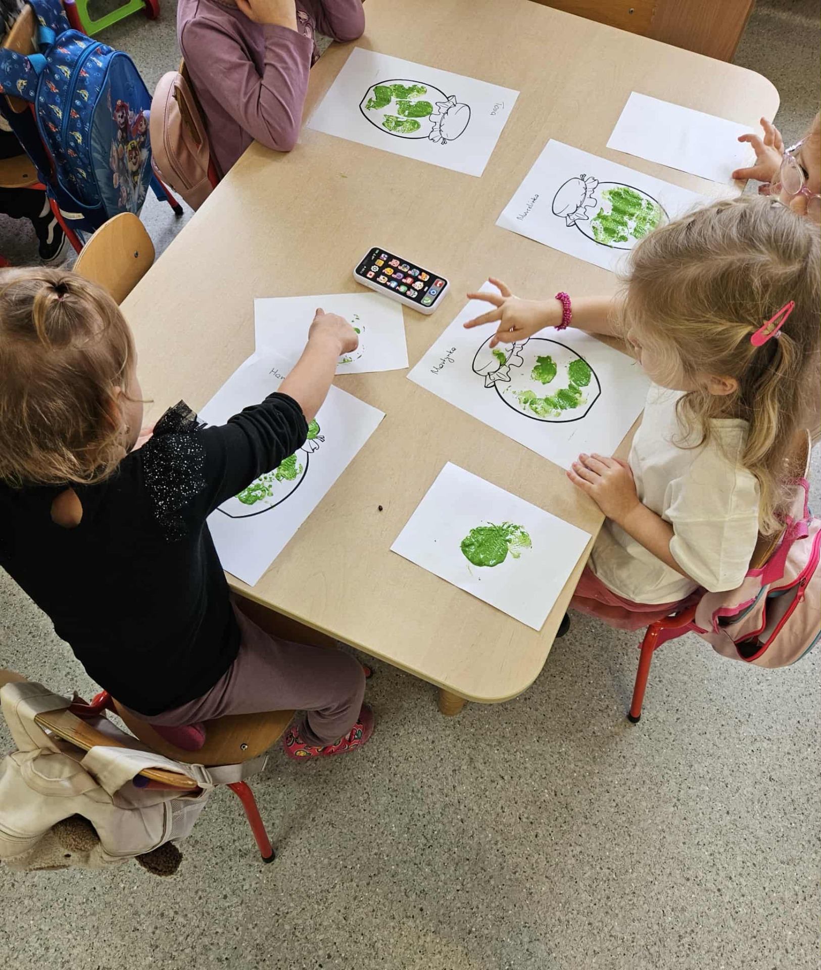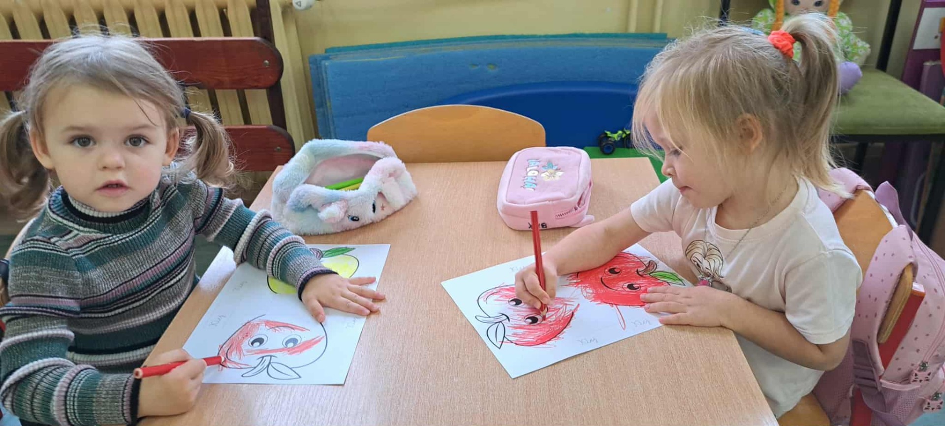 Ogromnym zainteresowaniem cieszyły się także prace plastyczne z motywem jabłka – dzieci malowały, wyklejały i tworzyły własne „jabłkowe dzieła sztuki”, które ozdobiły sale przedszkolne.