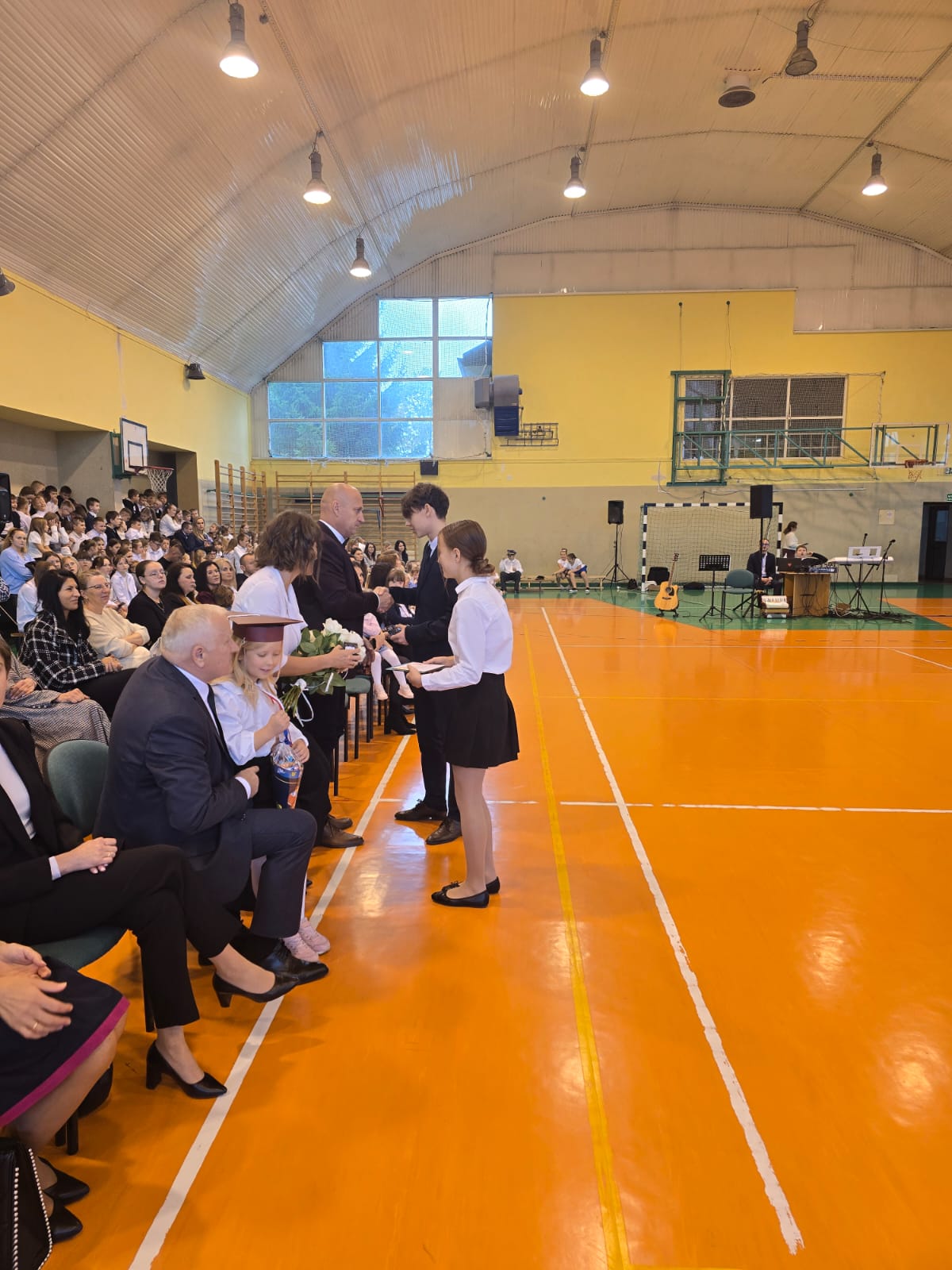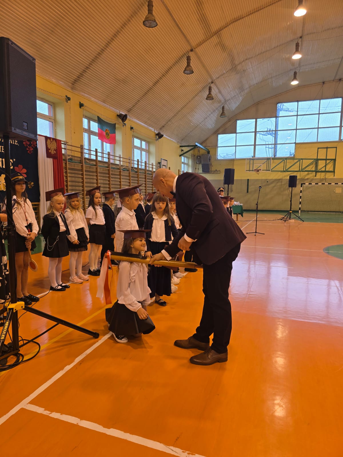 Po złożeniu ślubowania dyrektor szkoły dokonał symbolicznego pasowania na ucznia i życzył wszystkim samych sukcesów w długiej karierze szkolnej.