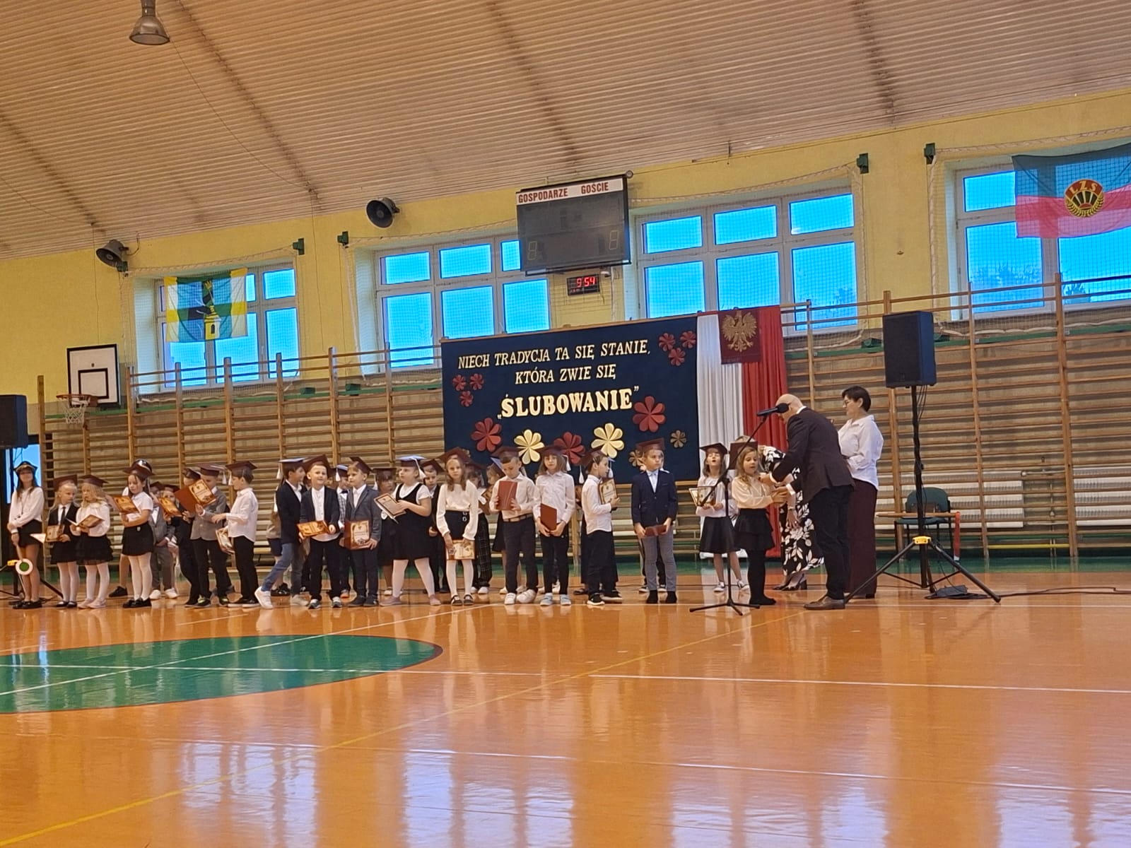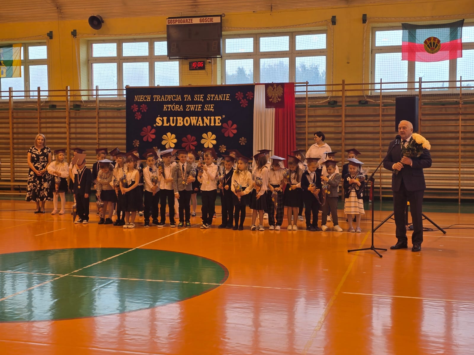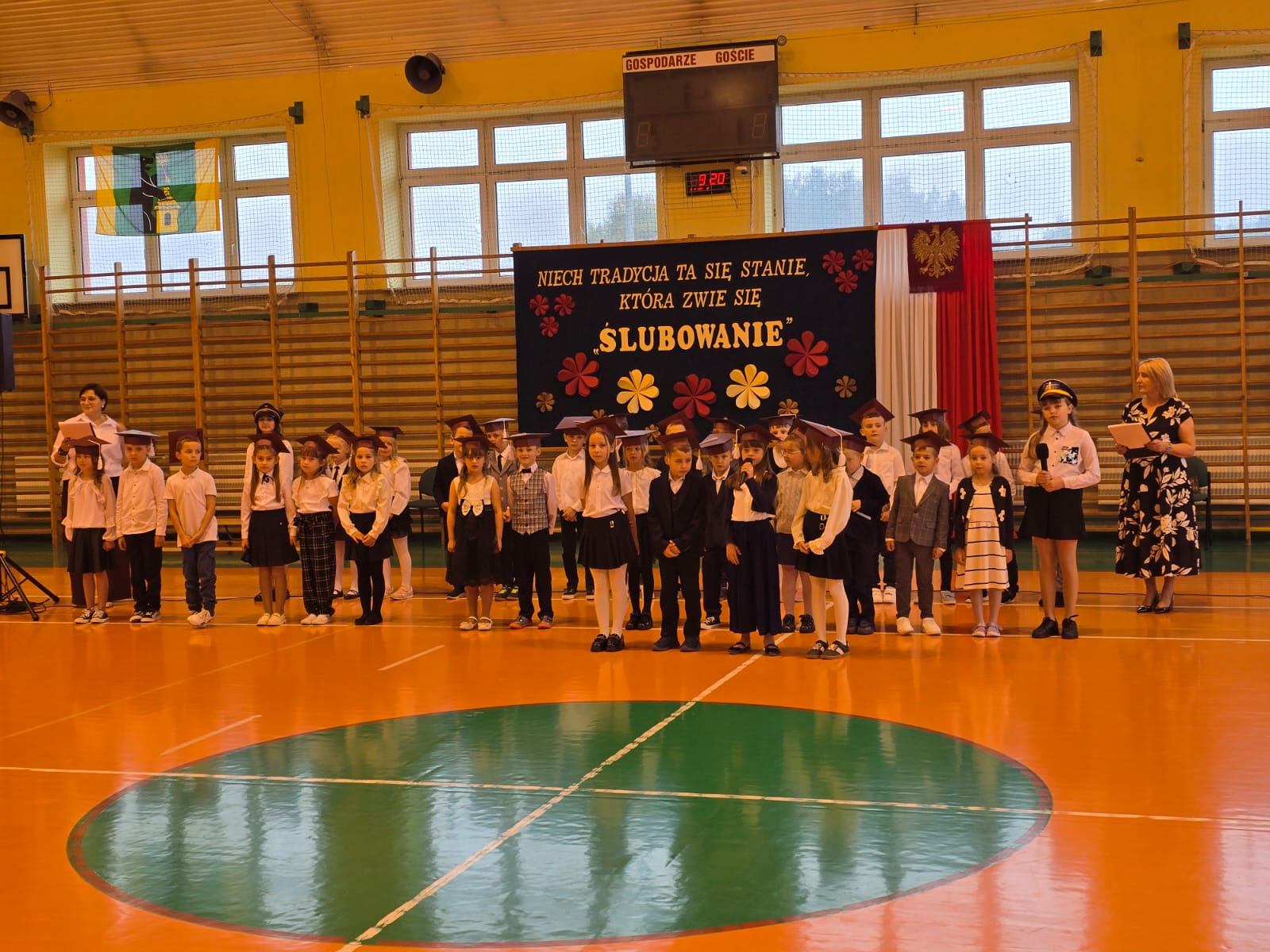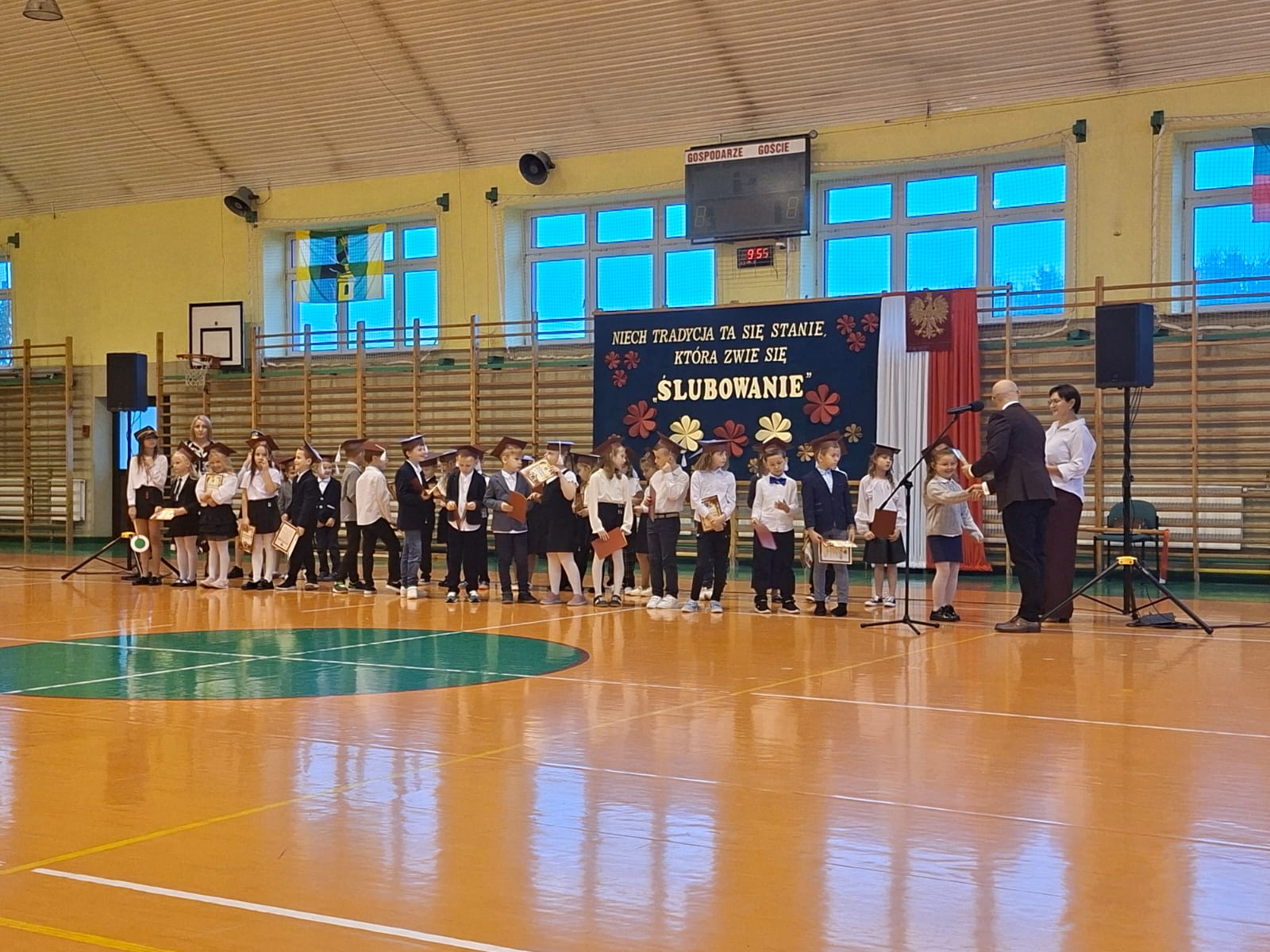 Ślubowanie to jedno z najważniejszych wydarzeń w życiu każdego ucznia, dlatego uroczystość miała bardzo wyjątkowy charakter. Na Ślubowanie przybyli: pan dyrektor Piotr Mikinka, pani dyrektor Aneta Dominiak, wójt Gminy Bogdan Kaczmarek, Sekretarz Gminy Aneta Michniewska, Skarbnik Gminy Elżbieta Wrześniewska, Dyrektor Gminnego Domu Kultury Grażyna Susik, Dyrektor Gminnej Biblioteki Bożena Wenecka, Rada Rodziców: Justyna Pecyna, Marika Wojtysiak, Paulina Kruś oraz Urszula Szymczak, nauczyciele, rodzice uczniów, a także koledzy i koleżanki z klas starszych.