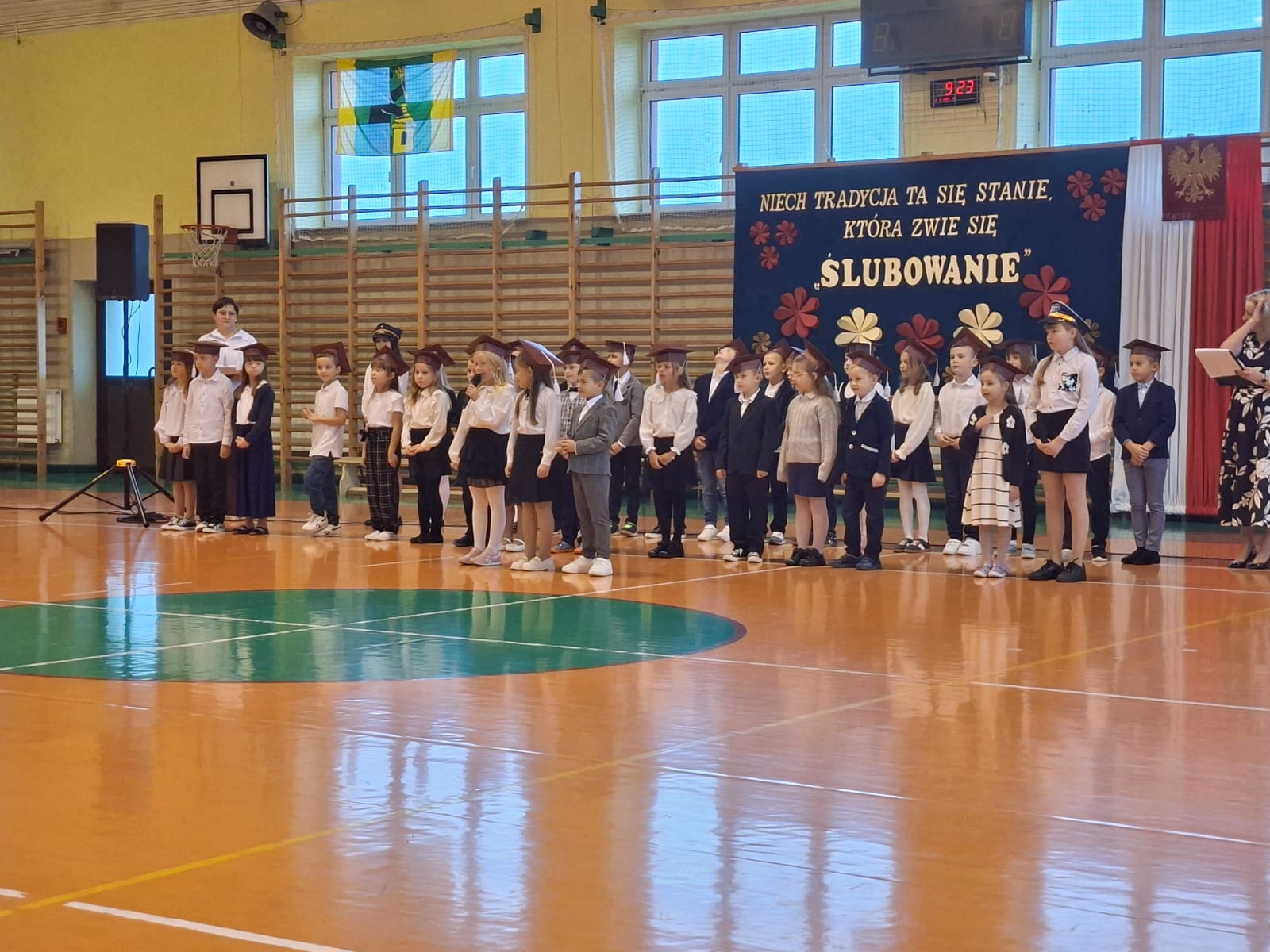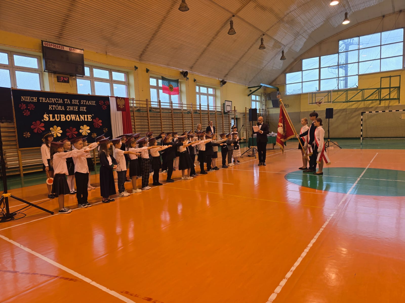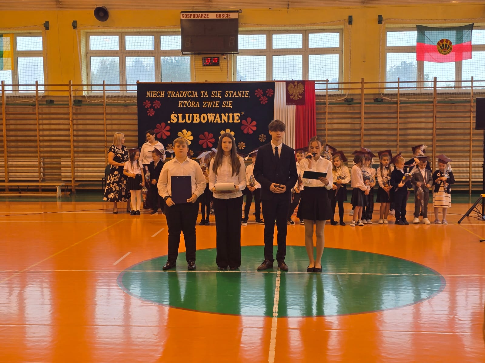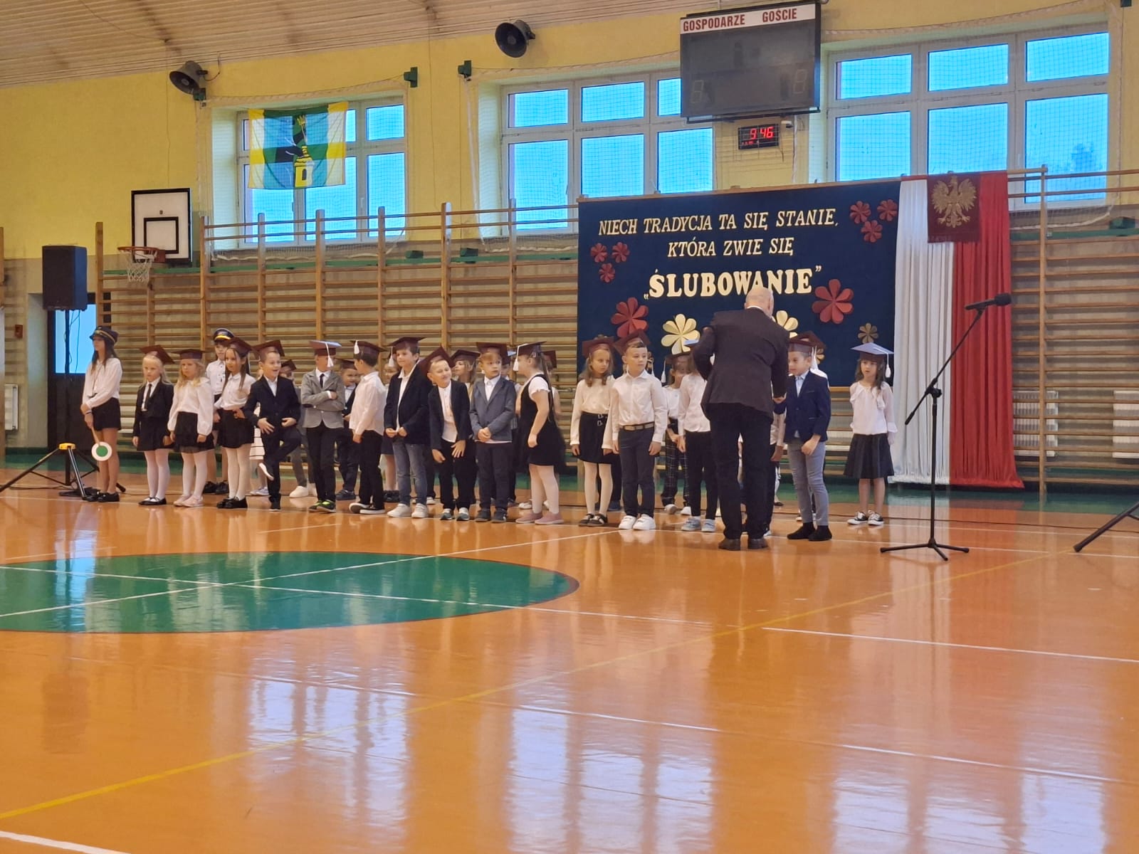 Ślubowanie to jedno z najważniejszych wydarzeń w życiu każdego ucznia, dlatego uroczystość miała bardzo wyjątkowy charakter. Na Ślubowanie przybyli: pan dyrektor Piotr Mikinka, pani dyrektor Aneta Dominiak, wójt Gminy Bogdan Kaczmarek, Sekretarz Gminy Aneta Michniewska, Skarbnik Gminy Elżbieta Wrześniewska, Dyrektor Gminnego Domu Kultury Grażyna Susik, Dyrektor Gminnej Biblioteki Bożena Wenecka, Rada Rodziców: Justyna Pecyna, Marika Wojtysiak, Paulina Kruś oraz Urszula Szymczak, nauczyciele, rodzice uczniów, a także koledzy i koleżanki z klas starszych.