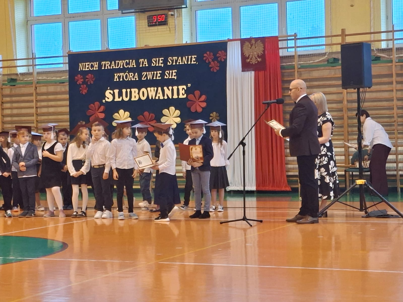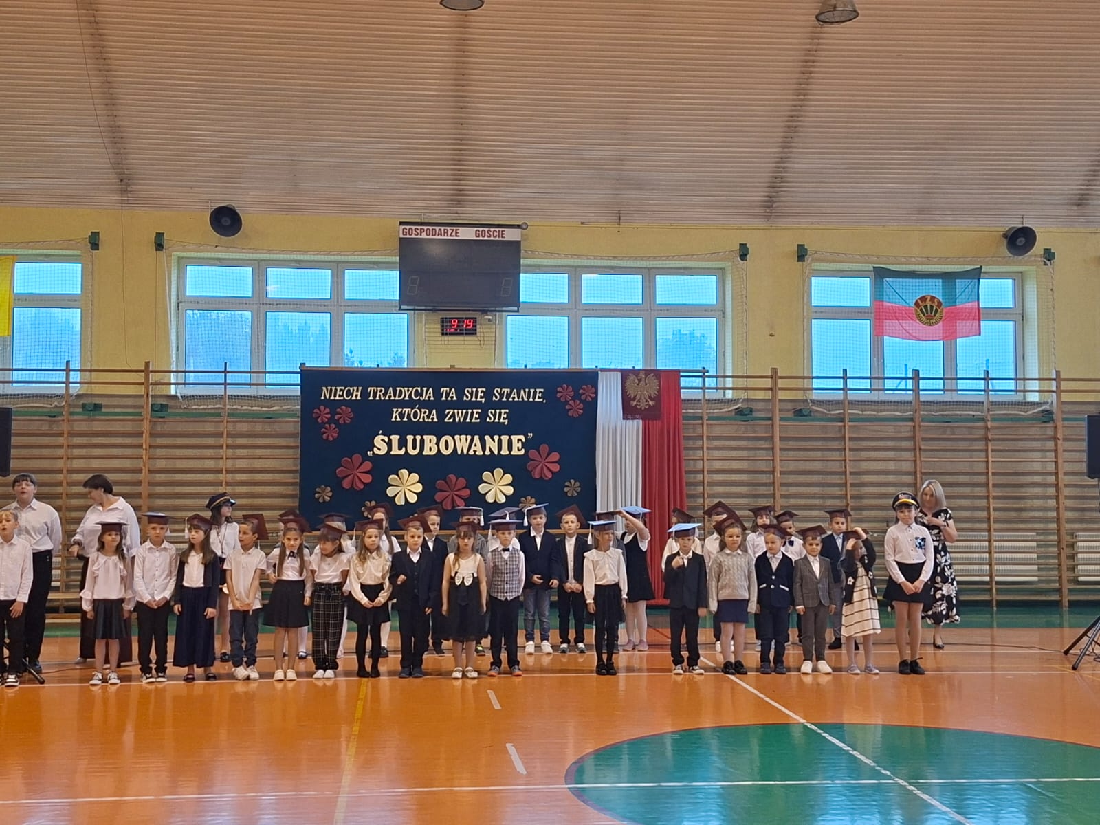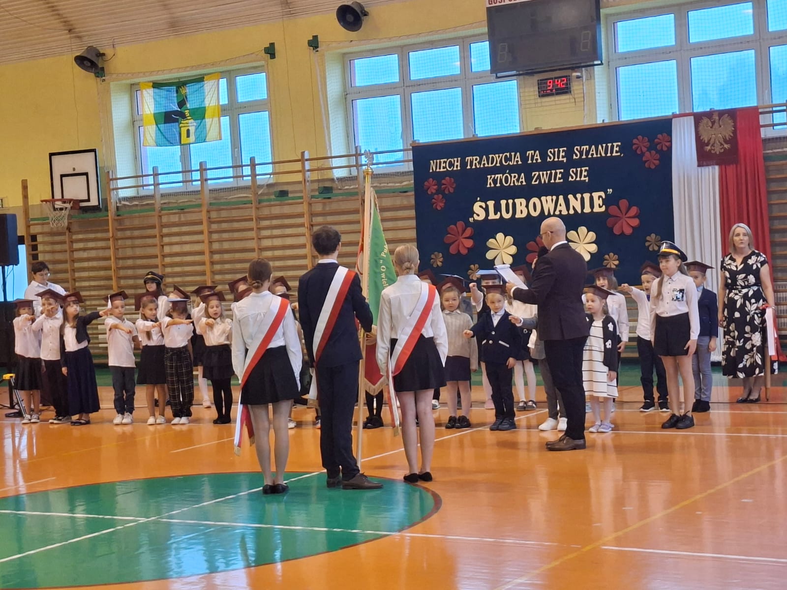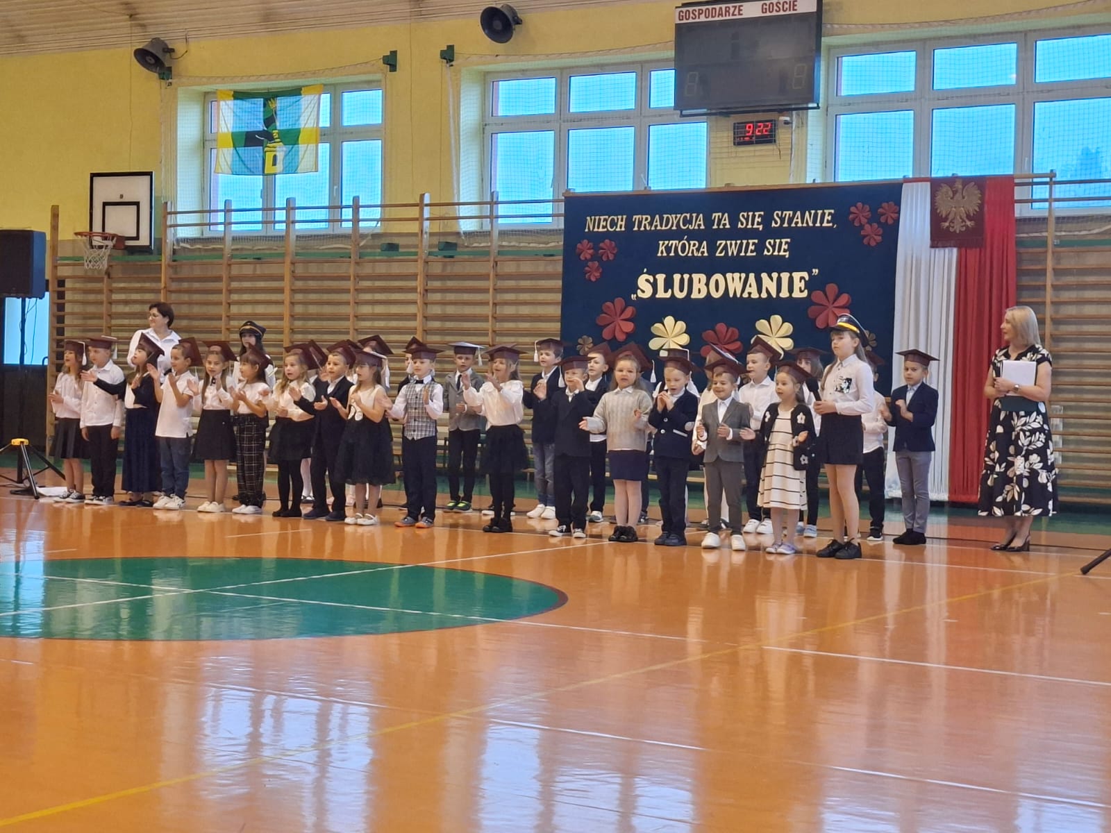 Ślubowanie to jedno z najważniejszych wydarzeń w życiu każdego ucznia, dlatego uroczystość miała bardzo wyjątkowy charakter. Na Ślubowanie przybyli: pan dyrektor Piotr Mikinka, pani dyrektor Aneta Dominiak, wójt Gminy Bogdan Kaczmarek, Sekretarz Gminy Aneta Michniewska, Skarbnik Gminy Elżbieta Wrześniewska, Dyrektor Gminnego Domu Kultury Grażyna Susik, Dyrektor Gminnej Biblioteki Bożena Wenecka, Rada Rodziców: Justyna Pecyna, Marika Wojtysiak, Paulina Kruś oraz Urszula Szymczak, nauczyciele, rodzice uczniów, a także koledzy i koleżanki z klas starszych.