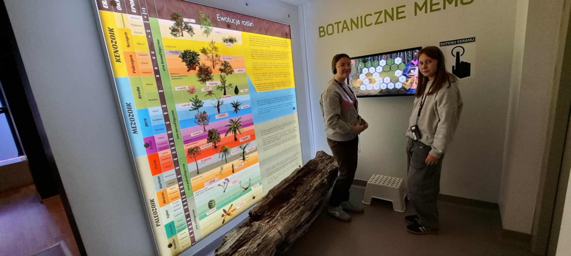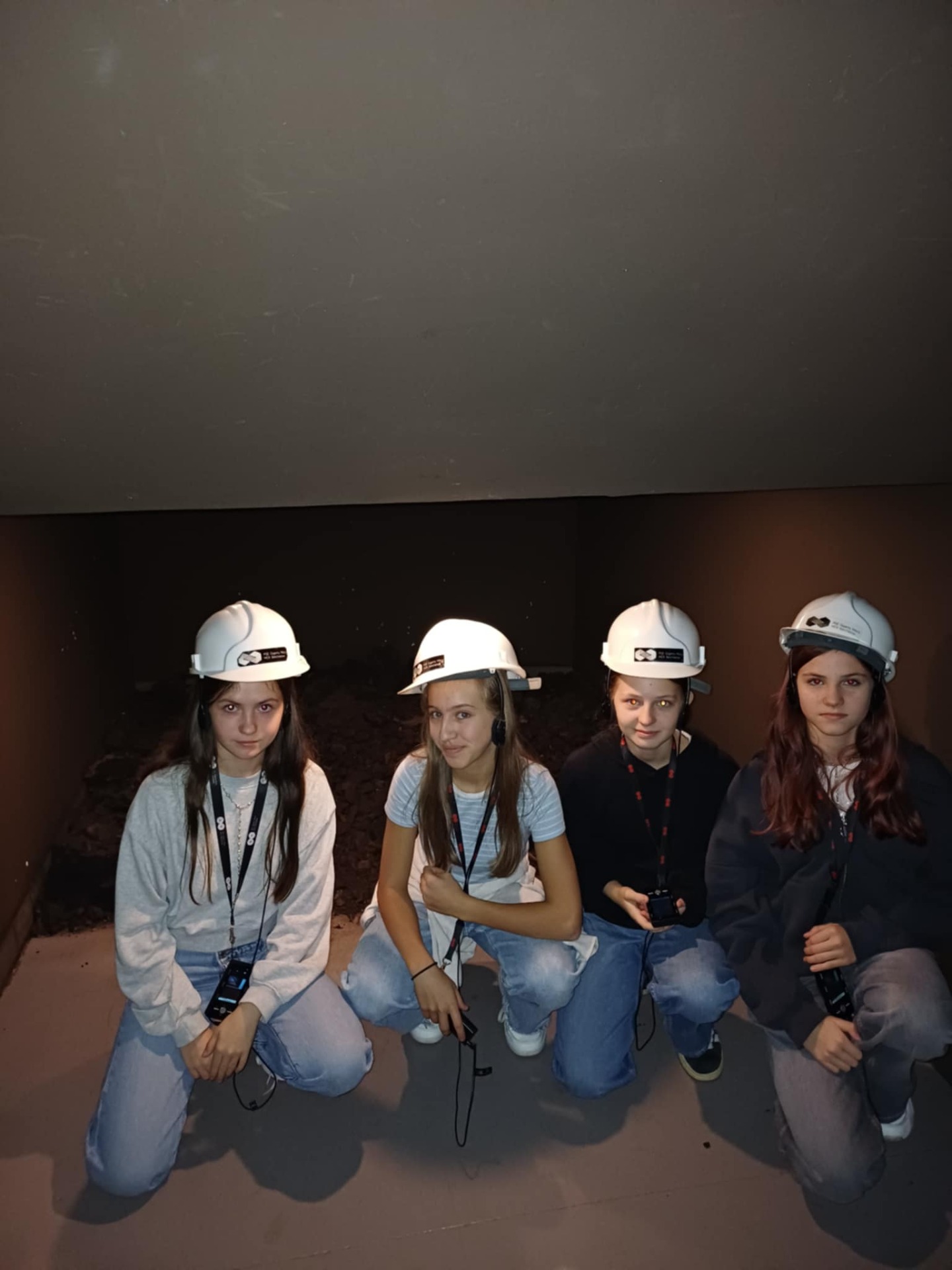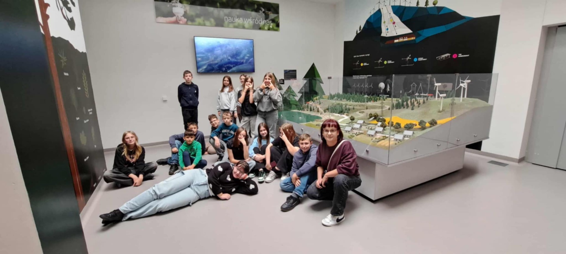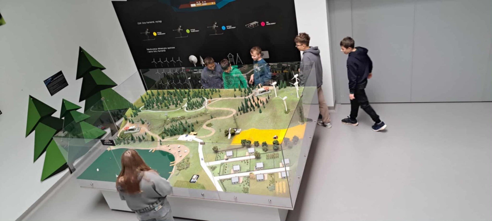 Na początku zwiedziliśmy pierwsze w Polsce muzeum węgla i energii „Giganty Mocy”, w którym poznaliśmy historie powstawania i wydobywania węgla brunatnego oraz produkcji z niego energii elektrycznej. Wystawa łączy naukę z zabawą poprzez interaktywne stoiska, multimedialne ekrany oraz wiele różnych gier. Wyposażeni w audio przewodniki ruszyliśmy na zwiedzanie i odbyliśmy swoistą podróż w czasie. Podczas zwiedzania wystawy uczniowie przeprowadzali doświadczenia z zakresu fizyki i zjawisk elektryczności. Spacerowali po dnie morza i odwiedzili las tropikalny, dowiedzieli się przy tym o poszczególnych fazach formowania się złóż węgla brunatnego. Eksperymentowali w generatorze odpowiedzialnym za wytwarzanie prądu, sterowali procesem wytwarzania energii oraz podziwiali szczątki mamuta, żyjącego niegdyś na obszarze dzisiejszej odkrywki węgla brunatnego w Bełchatowie.