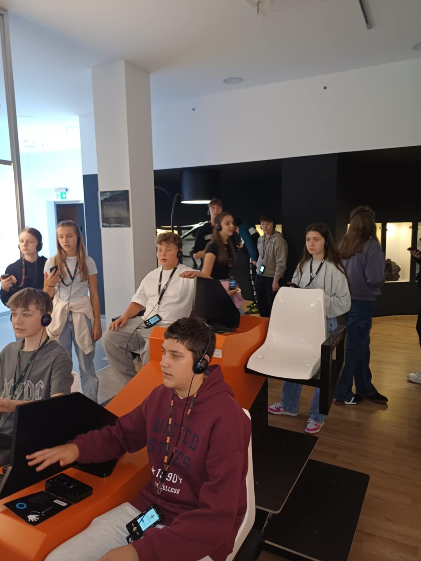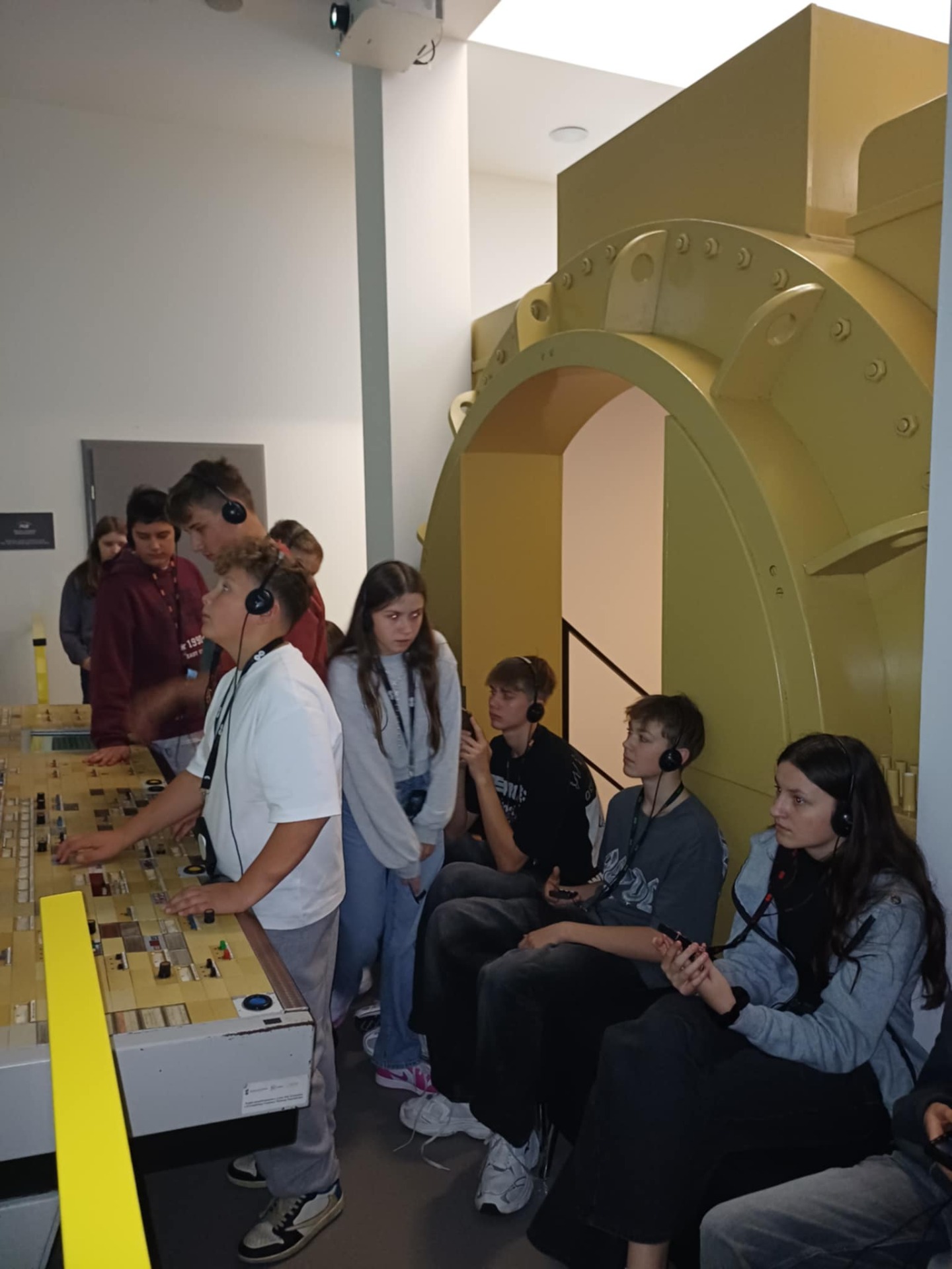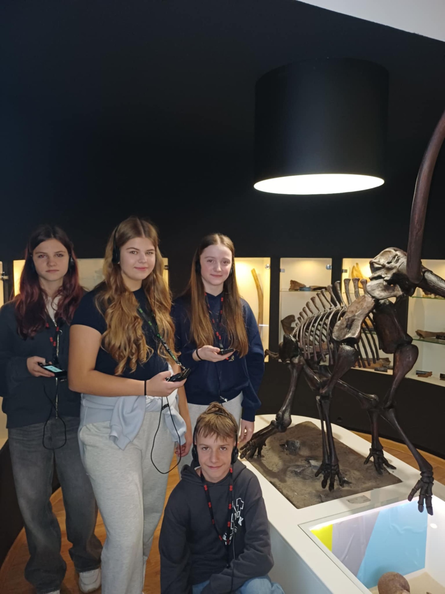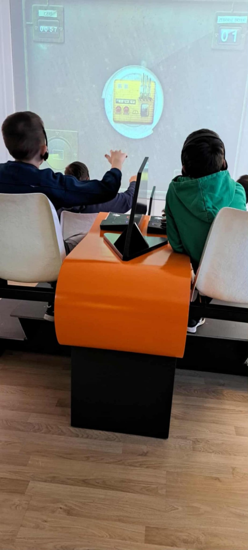 Na początku zwiedziliśmy pierwsze w Polsce muzeum węgla i energii „Giganty Mocy”, w którym poznaliśmy historie powstawania i wydobywania węgla brunatnego oraz produkcji z niego energii elektrycznej. Wystawa łączy naukę z zabawą poprzez interaktywne stoiska, multimedialne ekrany oraz wiele różnych gier. Wyposażeni w audio przewodniki ruszyliśmy na zwiedzanie i odbyliśmy swoistą podróż w czasie. Podczas zwiedzania wystawy uczniowie przeprowadzali doświadczenia z zakresu fizyki i zjawisk elektryczności. Spacerowali po dnie morza i odwiedzili las tropikalny, dowiedzieli się przy tym o poszczególnych fazach formowania się złóż węgla brunatnego. Eksperymentowali w generatorze odpowiedzialnym za wytwarzanie prądu, sterowali procesem wytwarzania energii oraz podziwiali szczątki mamuta, żyjącego niegdyś na obszarze dzisiejszej odkrywki węgla brunatnego w Bełchatowie.