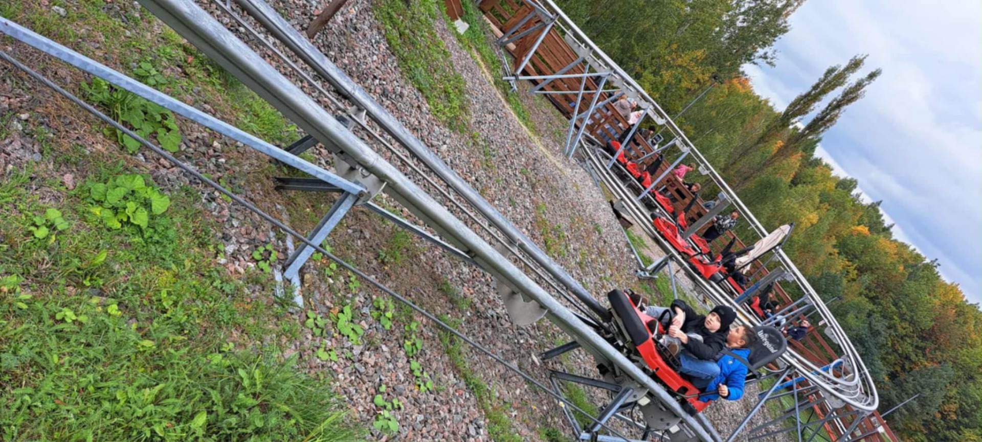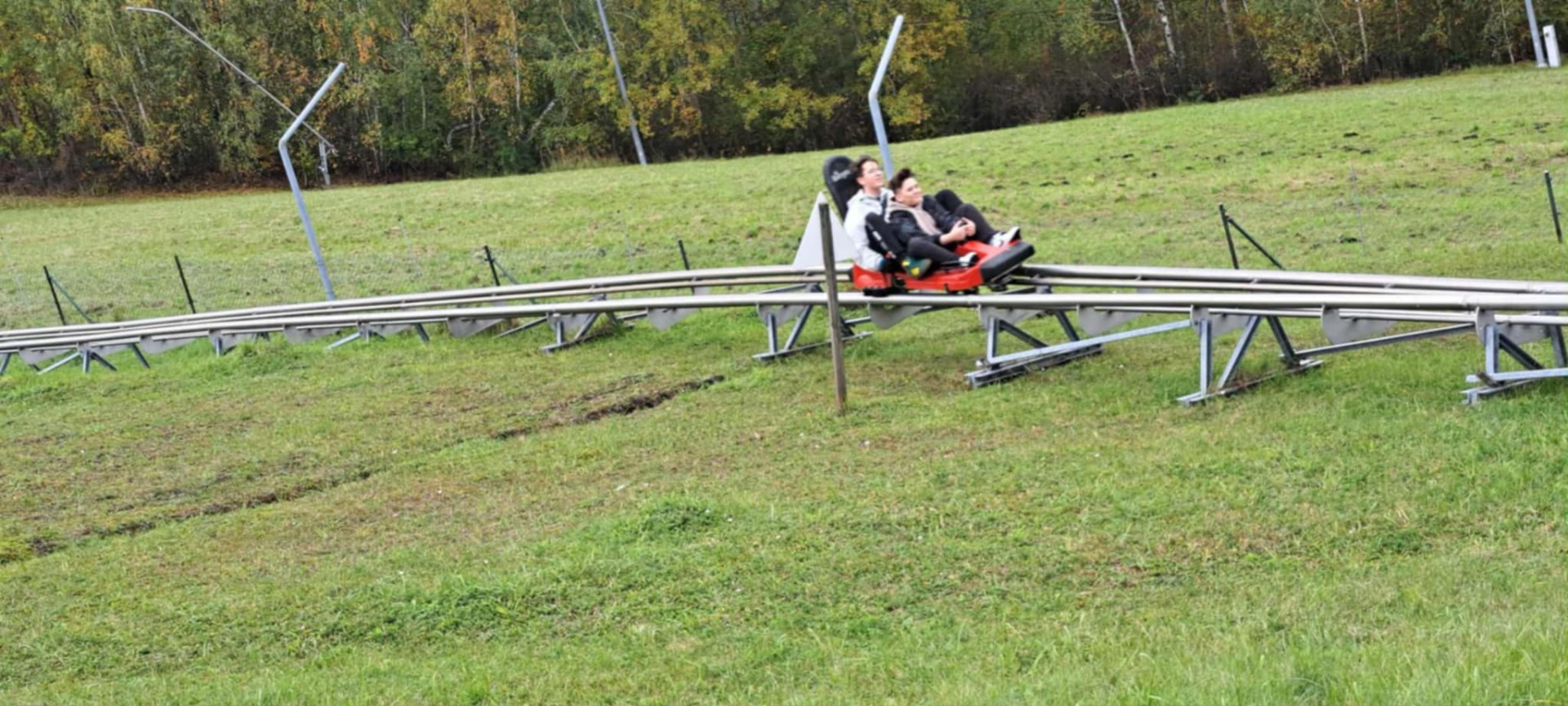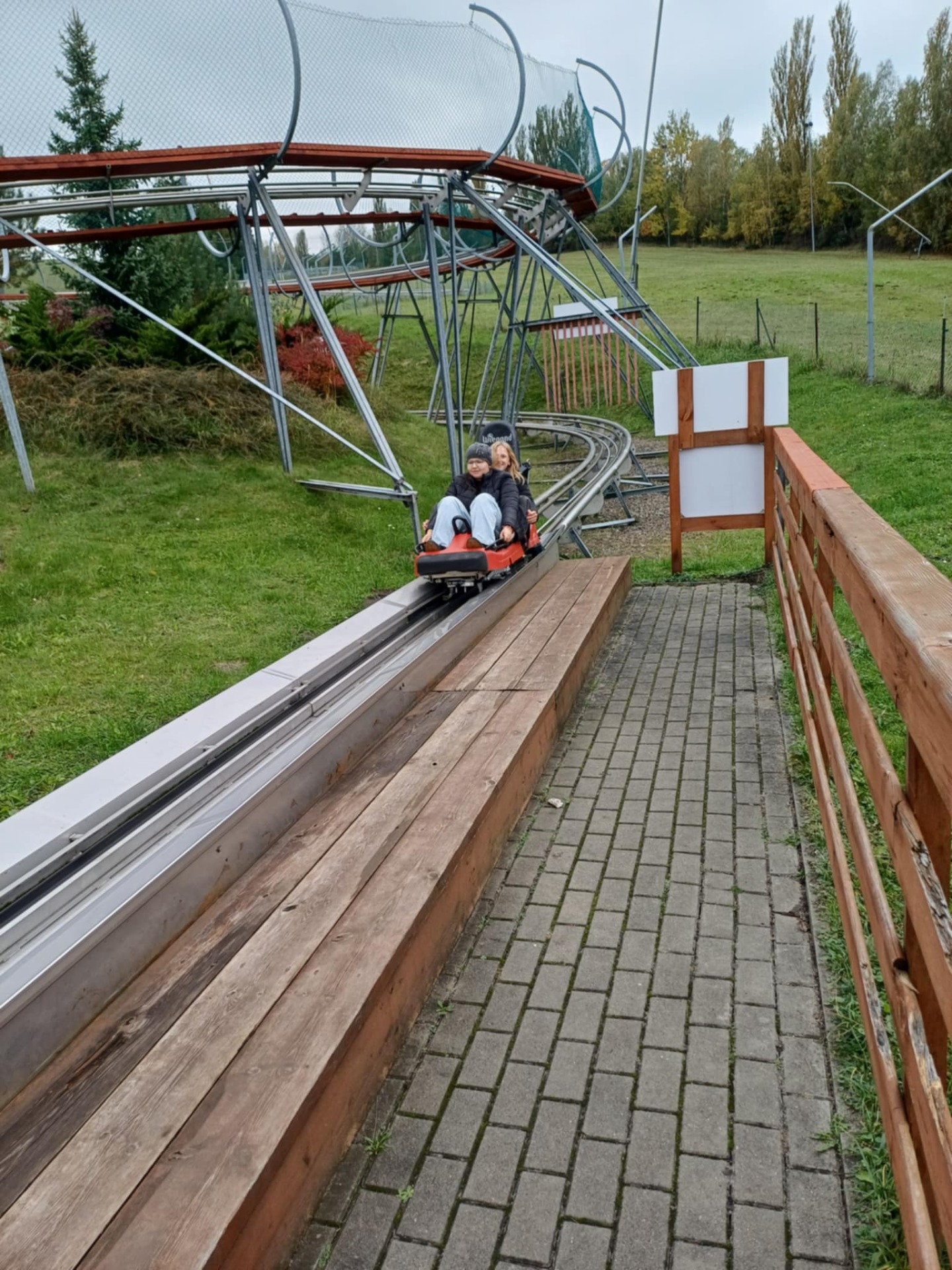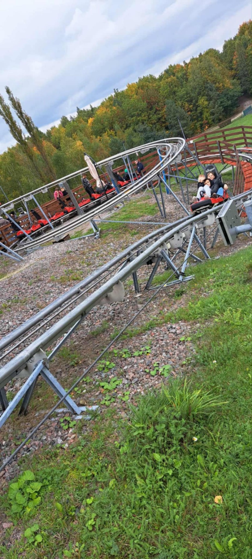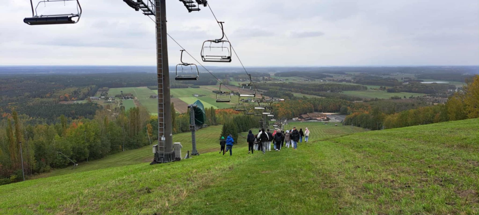 Kolejnym punktem wycieczki była Góra Kamieńska (błędnie nazywana Górą Kamieńsk) - sztuczne wzgórze o wysokości 405,6 m n.p.m. powstałe jako zwałowisko zewnętrzne Kopalni Węgla Brunatnego „Bełchatów”. Na szczycie góry znajduje się Elektrownia Wiatrowa Kamieńsk, a na stoku Ośrodek Sportu i Rekreacji. Po dotarciu na szczyt wyciągiem krzesełkowym mogliśmy podziwiać rozległe widoki m.in. na miasto Bełchatów oraz kopalnię odkrywkową, potężne kominy i chłodnie Elektrowni Bełchatów. Ostatnia atrakcja to jazda po letnim torze saneczkowym, która dostarczyła uczniom dużo radości i emocji.