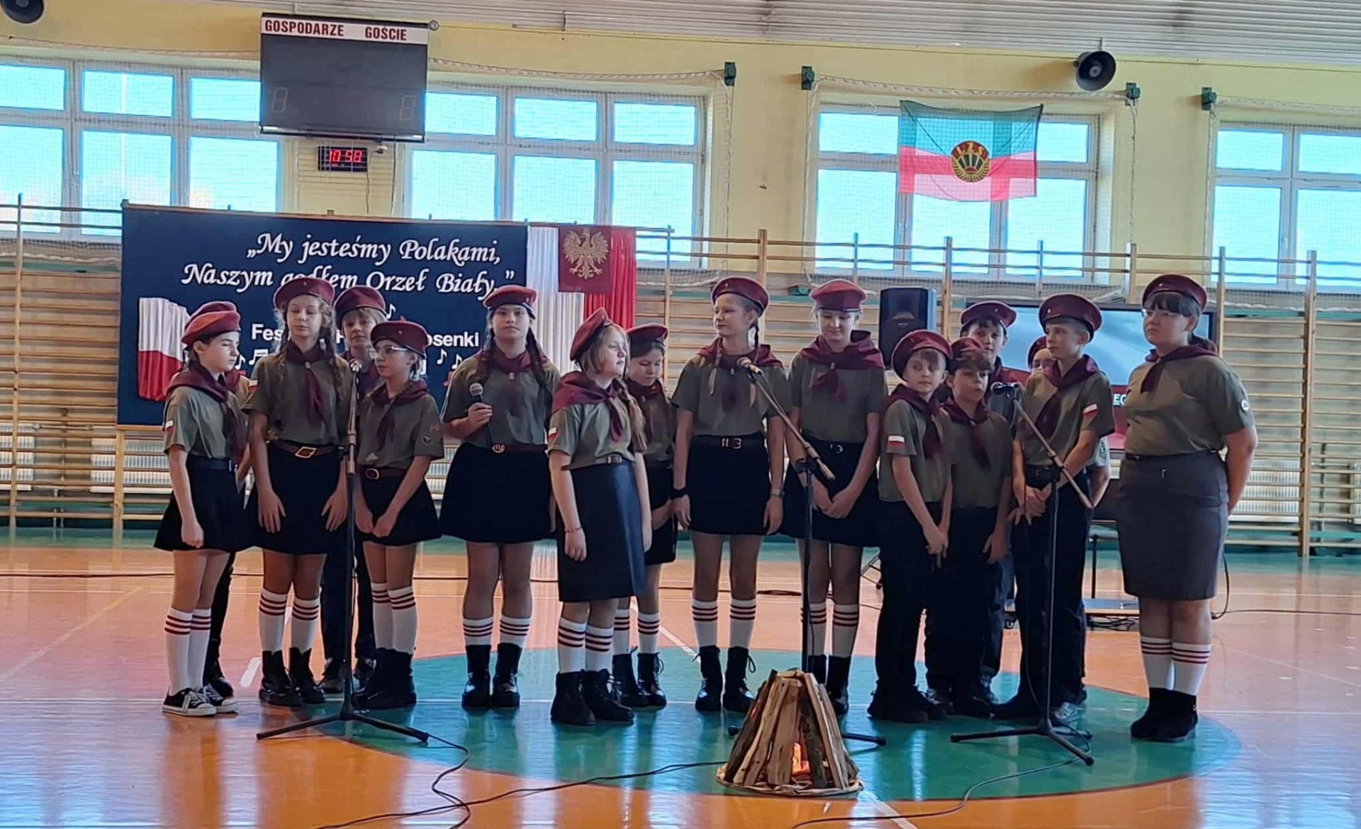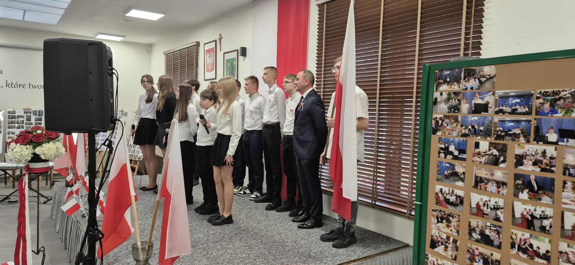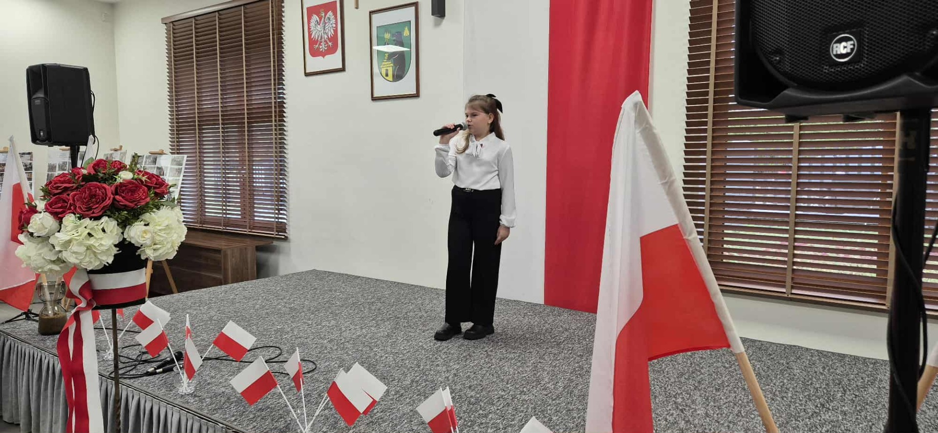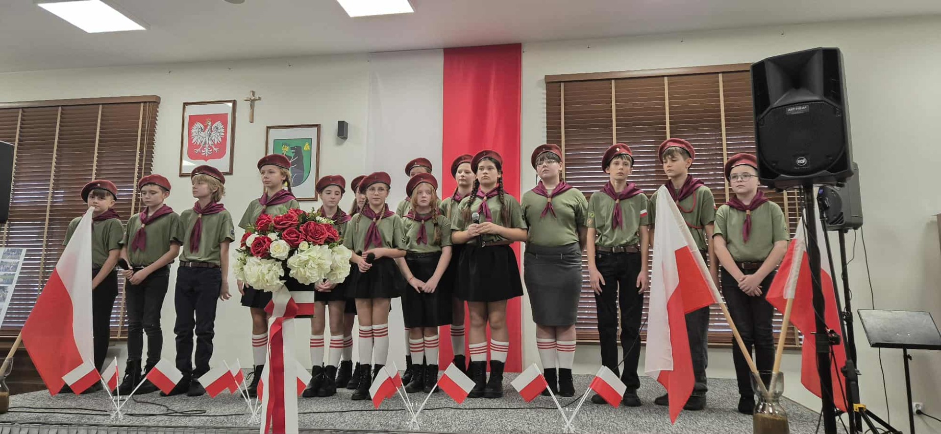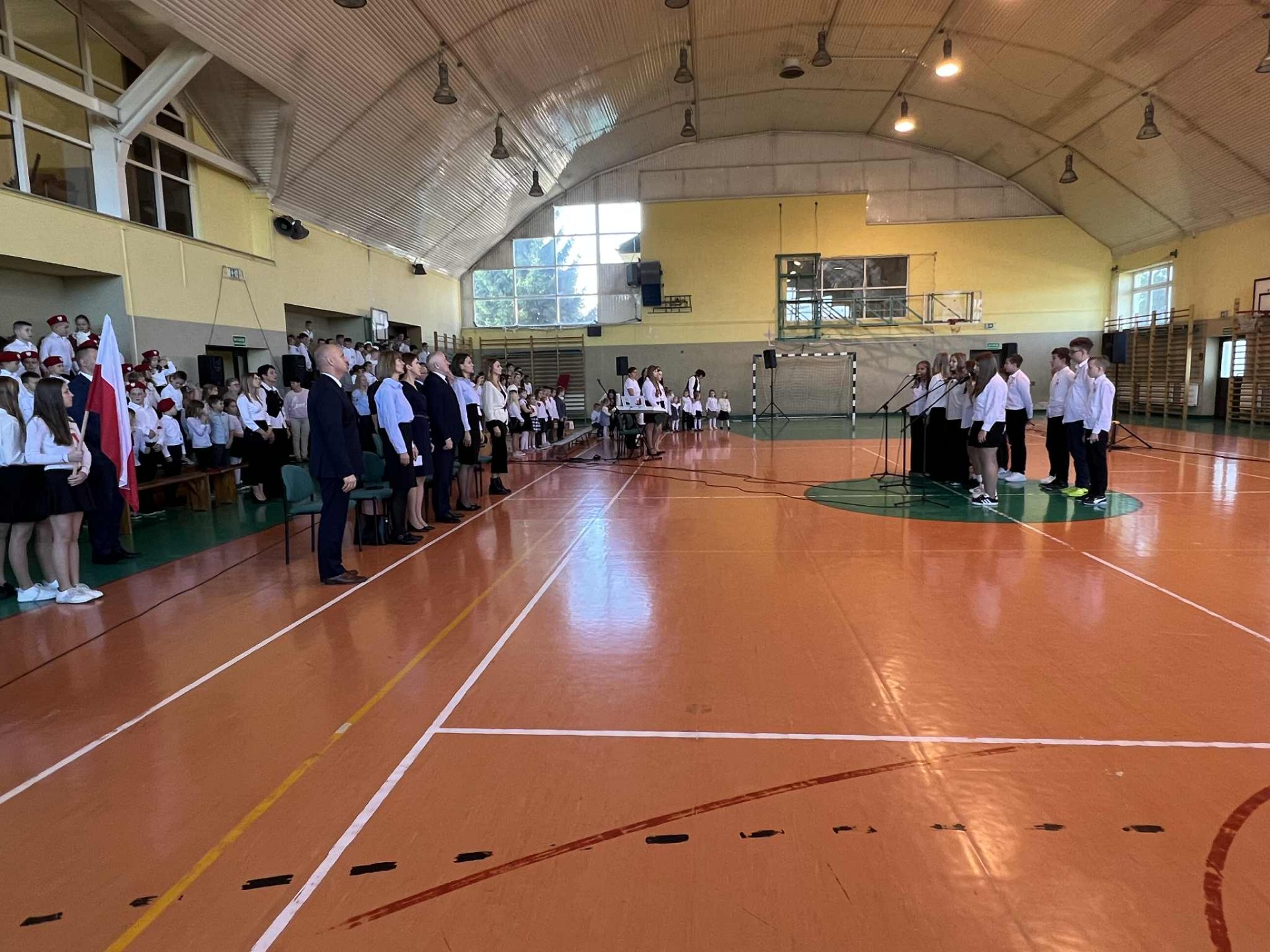 Po części oficjalnej uczestnicy przenieśli się do muzycznej odsłony uroczystości – Festiwalu Pieśni i Piosenki Patriotycznej. Każda klasa zaprezentowała wylosowany utwór patriotyczny, z dumą i zaangażowaniem oddając hołd historii oraz bohaterom walk o wolność. Wspólne śpiewanie oraz występy uczniów wprowadziły zgromadzonych w wyjątkową atmosferę pełną dumy i refleksji nad historią naszego kraju.