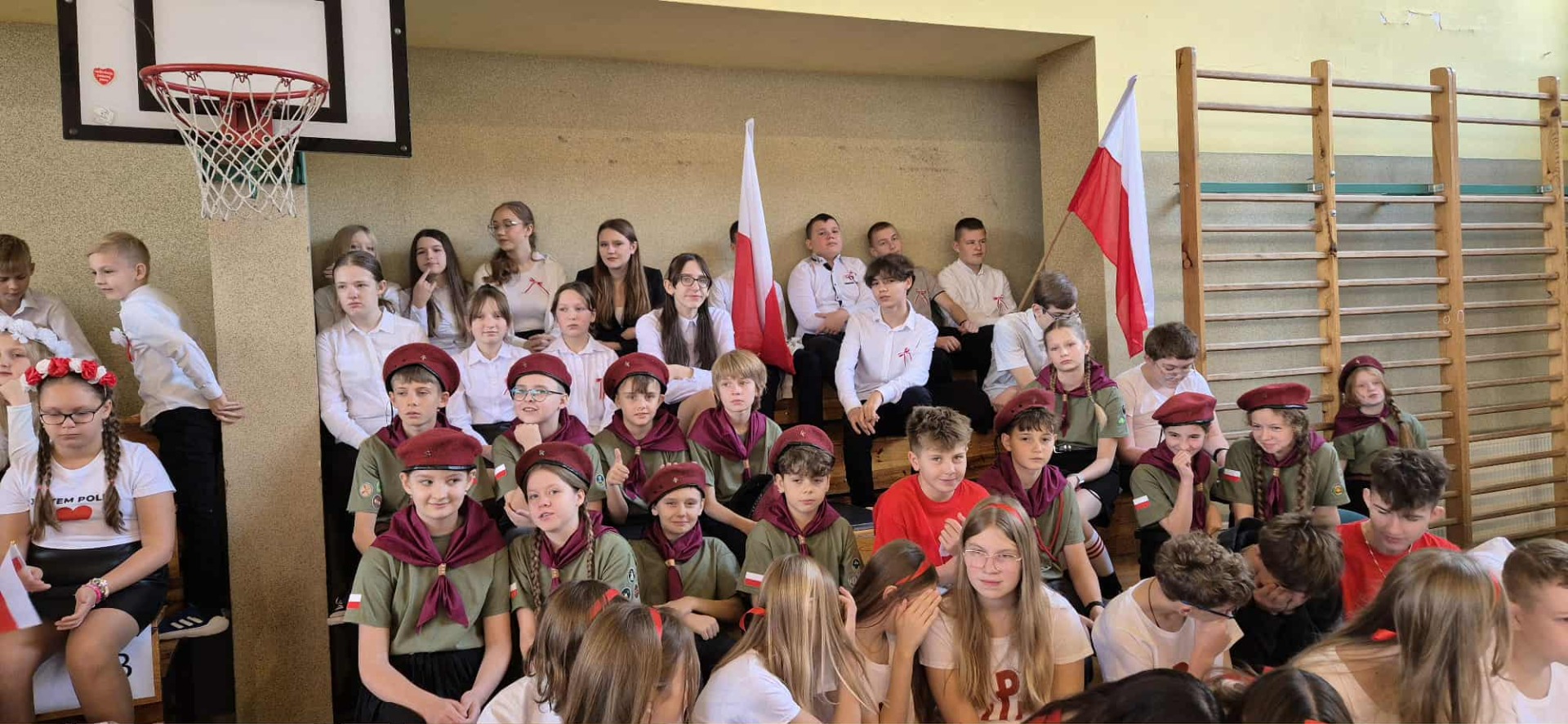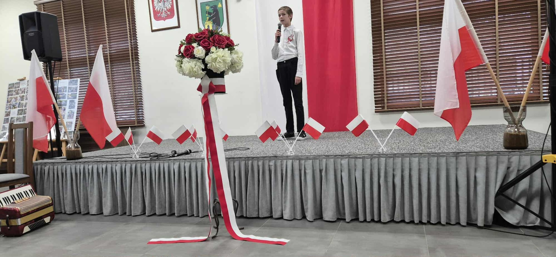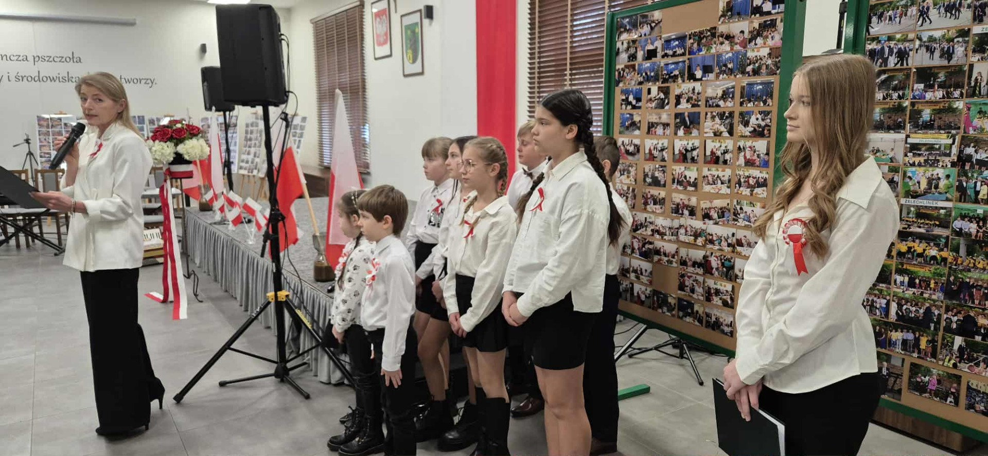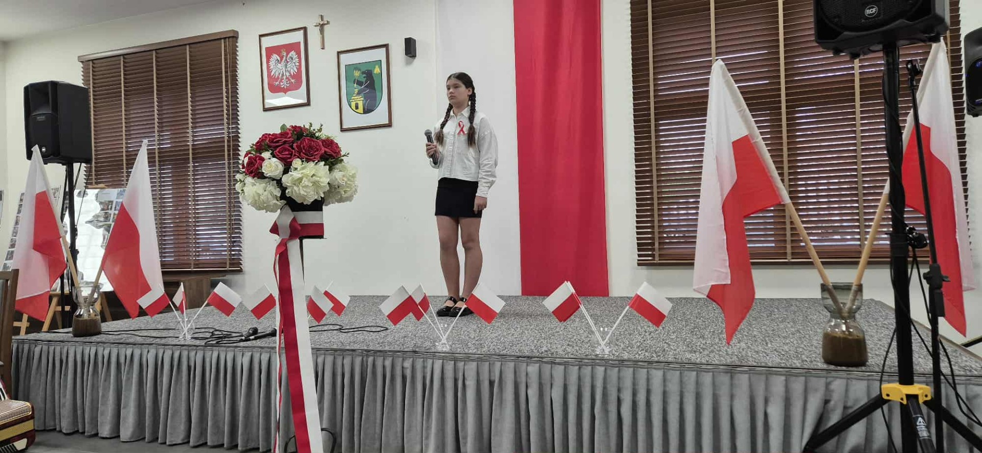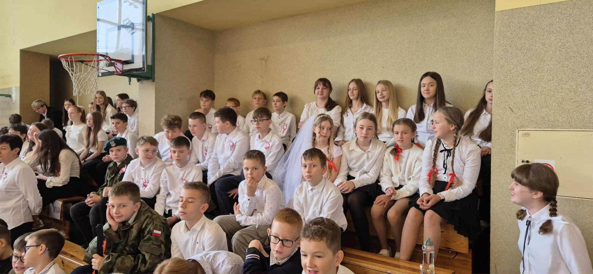 Po części oficjalnej uczestnicy przenieśli się do muzycznej odsłony uroczystości – Festiwalu Pieśni i Piosenki Patriotycznej. Każda klasa zaprezentowała wylosowany utwór patriotyczny, z dumą i zaangażowaniem oddając hołd historii oraz bohaterom walk o wolność. Wspólne śpiewanie oraz występy uczniów wprowadziły zgromadzonych w wyjątkową atmosferę pełną dumy i refleksji nad historią naszego kraju.