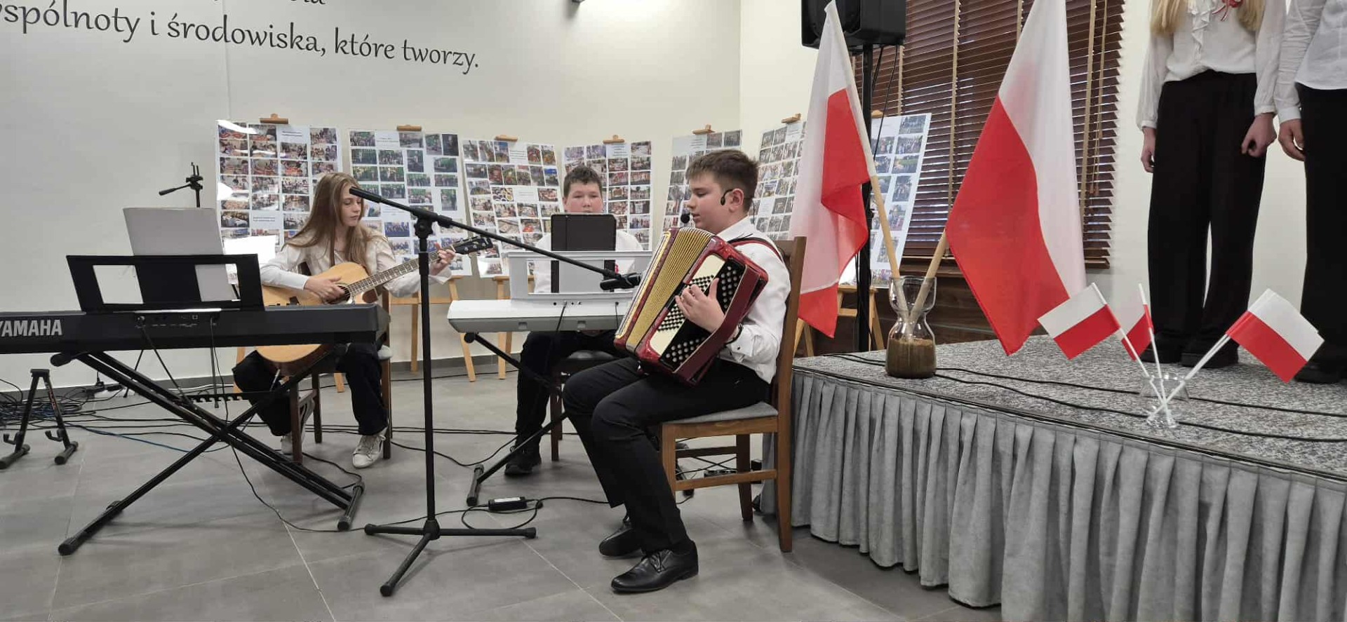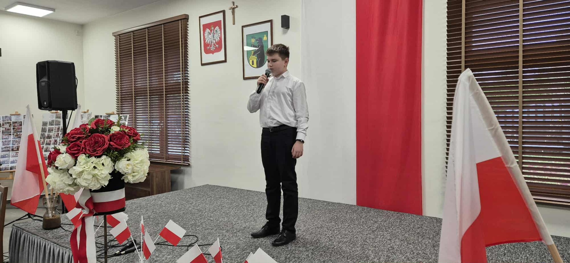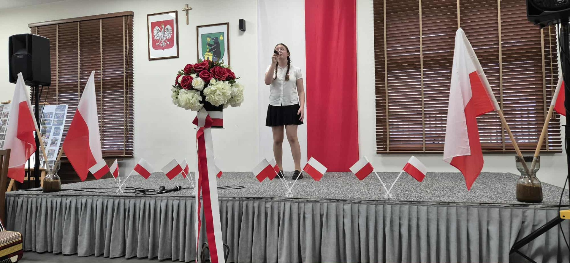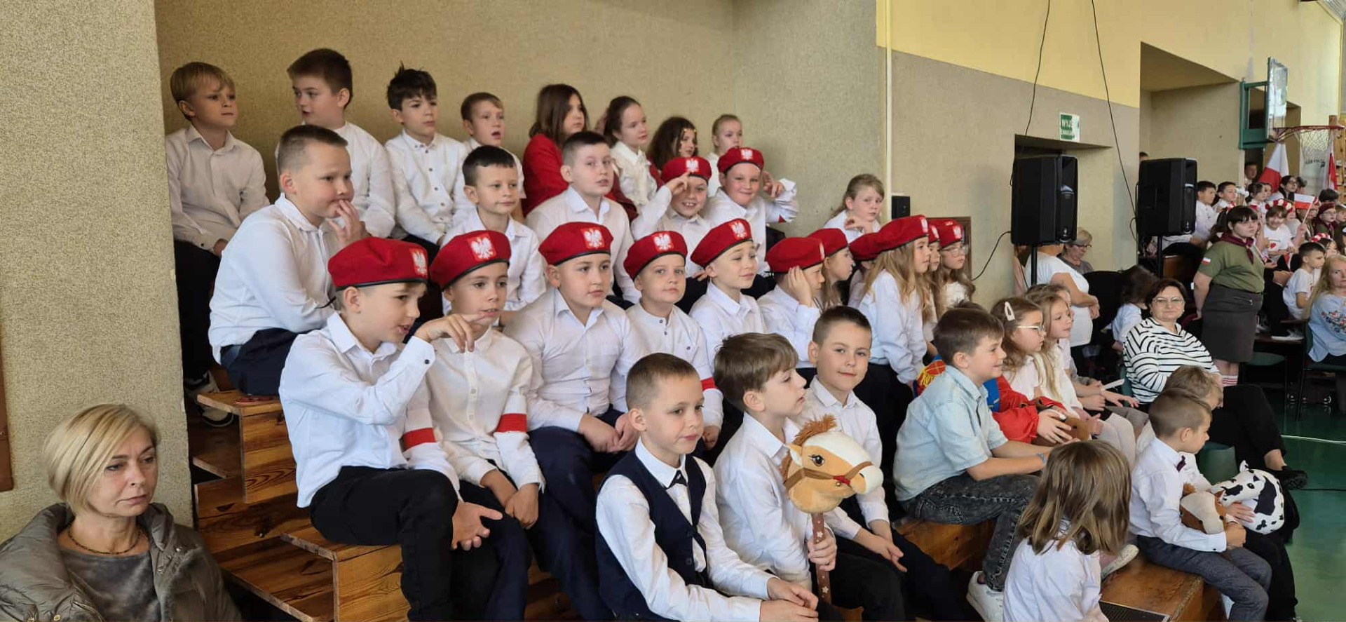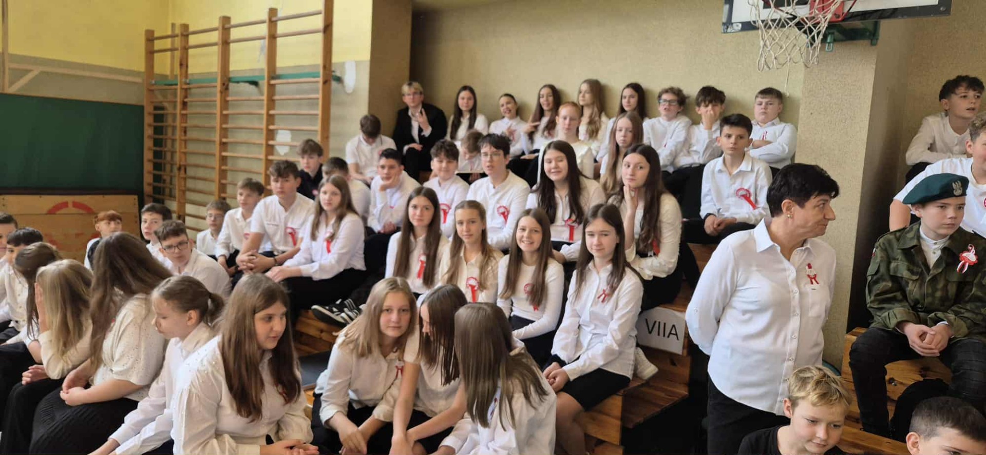 Po części oficjalnej uczestnicy przenieśli się do muzycznej odsłony uroczystości – Festiwalu Pieśni i Piosenki Patriotycznej. Każda klasa zaprezentowała wylosowany utwór patriotyczny, z dumą i zaangażowaniem oddając hołd historii oraz bohaterom walk o wolność. Wspólne śpiewanie oraz występy uczniów wprowadziły zgromadzonych w wyjątkową atmosferę pełną dumy i refleksji nad historią naszego kraju.