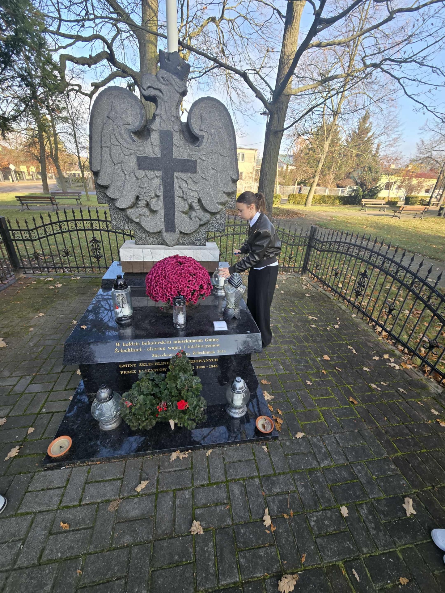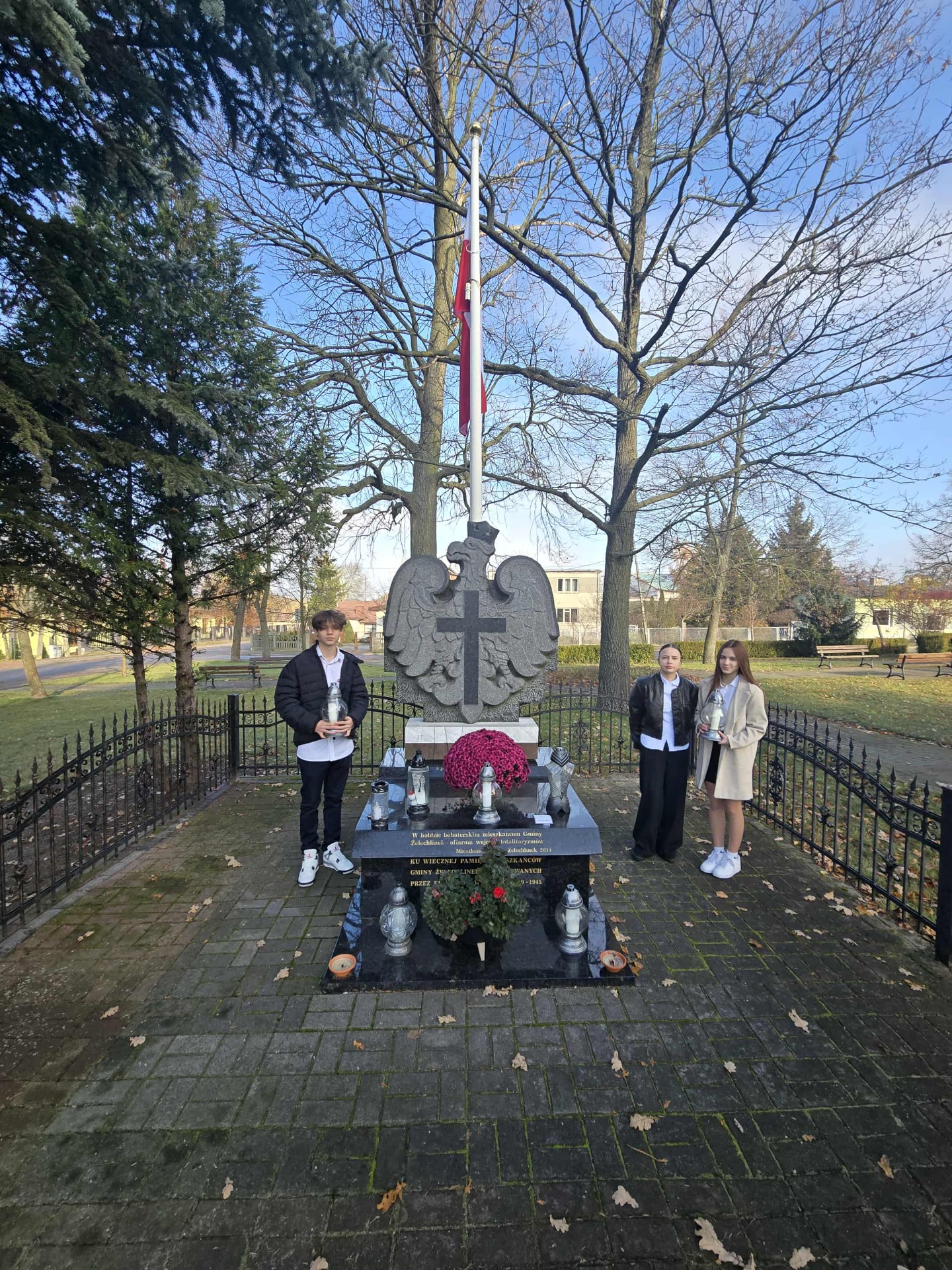 Reprezentacja uczniów naszej szkoły aktywnie uczestniczyła również w gminnych obchodach Narodowego Święta Niepodległości, które odbyły się 11 listopada. Delegacja brała udział w uroczystości przy grobie nieznanego żołnierza na cmentarzu parafialnym, mszy świętej w Kościele oraz pod pomnikiem ku czci pomordowanych mieszkańców gminy Żelechlinek. Na zakończenie uczniowie zaprezentowali program artystyczny i pieśni patriotyczne w Domu Inicjatyw Twórczych, wzbogacając lokalne obchody swoim występem i podkreślając znaczenie wspólnego pielęgnowania pamięci o historii.