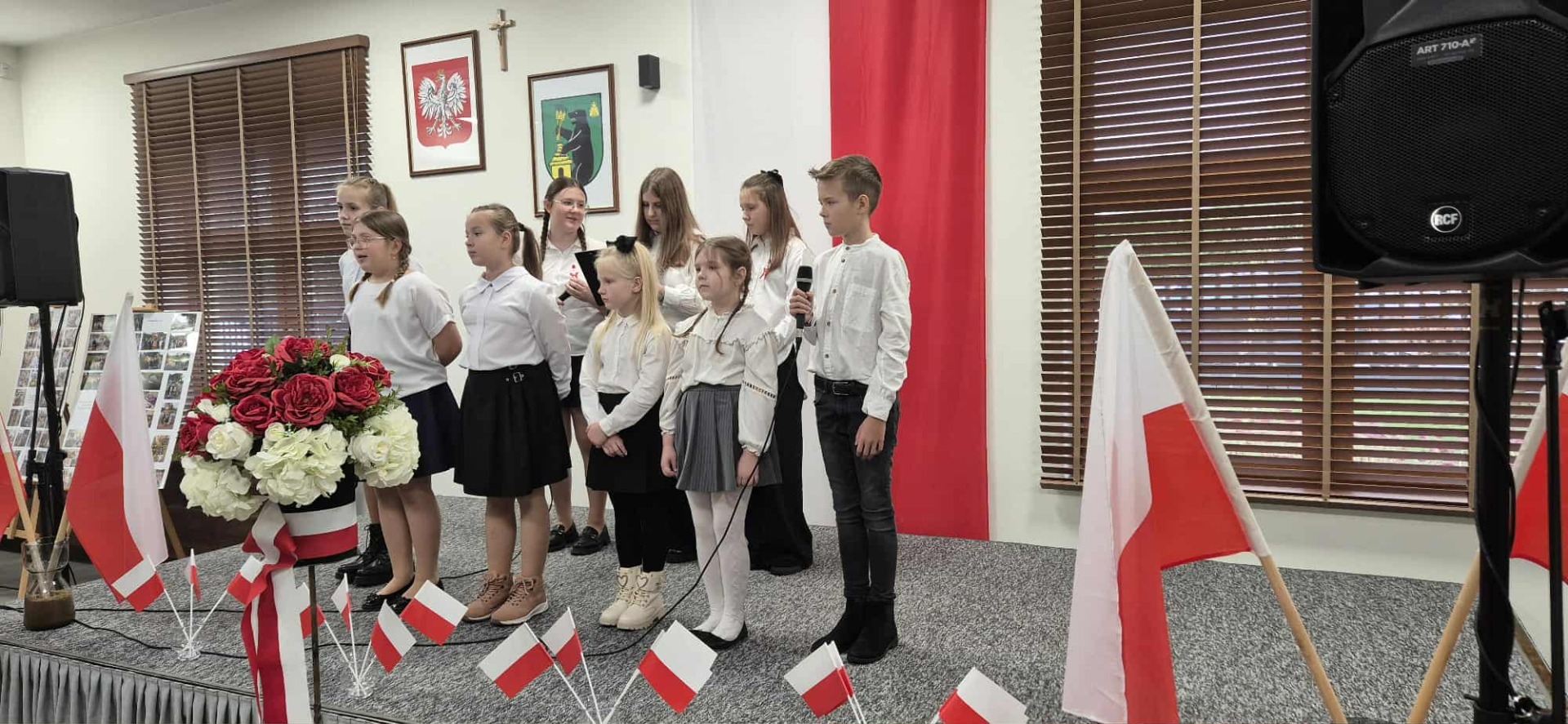 W części artystycznej uczniowie zaprezentowali wzruszające wiersze i refleksje patriotyczne, a najmłodsze dzieci z oddziałów przedszkolnych wykonały piosenkę wraz z układem taneczny. Szczególnym punktem programu był film pt. „O Polsce oczami najmłodszych”, przedstawiający wypowiedzi przedszkolaków o Ojczyźnie i patriotyzmie, który wprowadził widzów w świat dziecięcej wrażliwości i prostoty przekazu.
