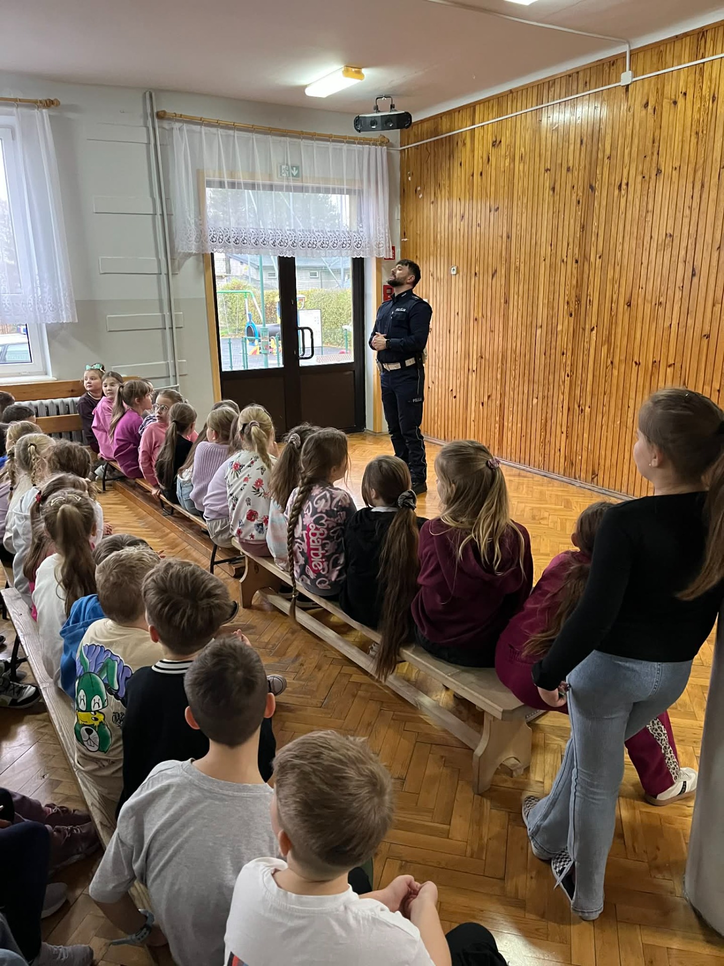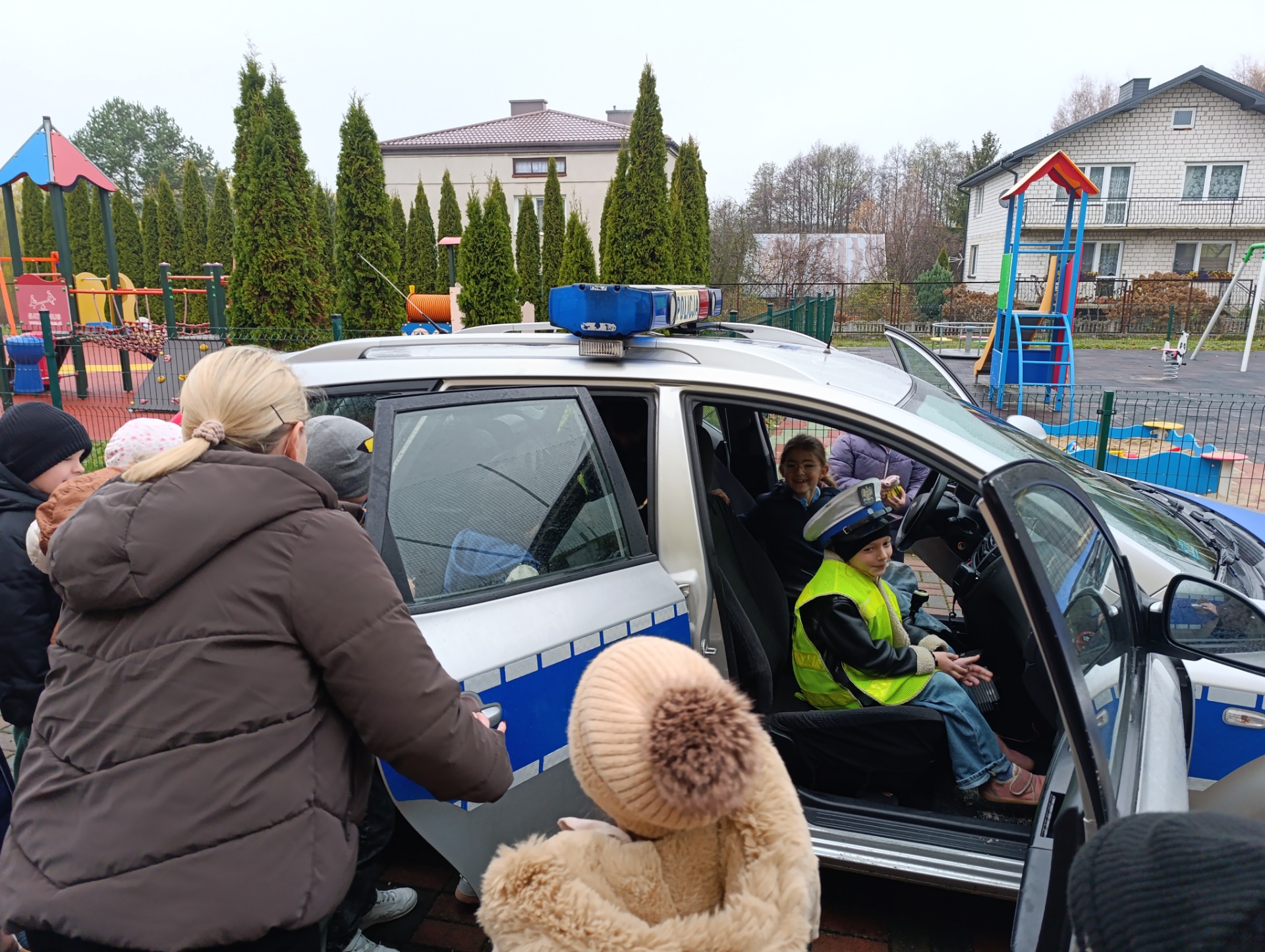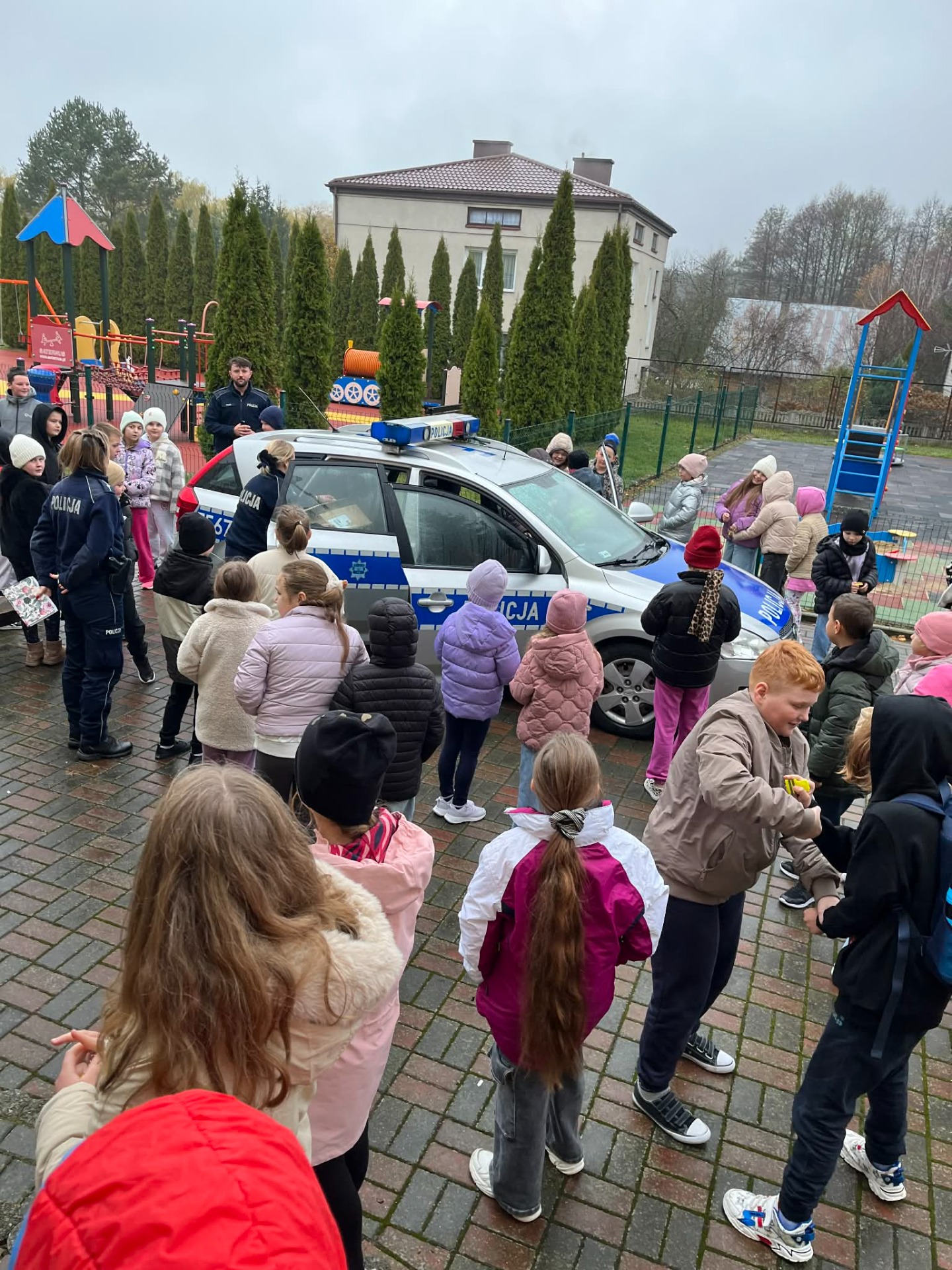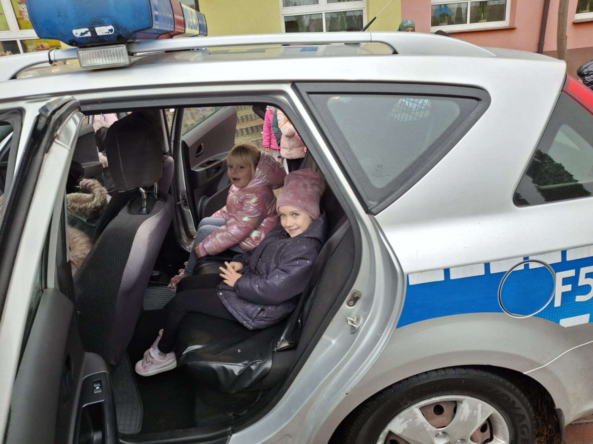 Dla klas 0–IV zorganizowano zajęcia dotyczące bezpiecznego poruszania się po drodze. Policjanci przypomnieli najmłodszym podstawowe zasady ruchu drogowego, znaczenie elementów odblaskowych oraz właściwe zachowanie w pobliżu jezdni. Ogromną atrakcją była możliwość obejrzenia radiowozu od środka i poznania jego wyposażenia.