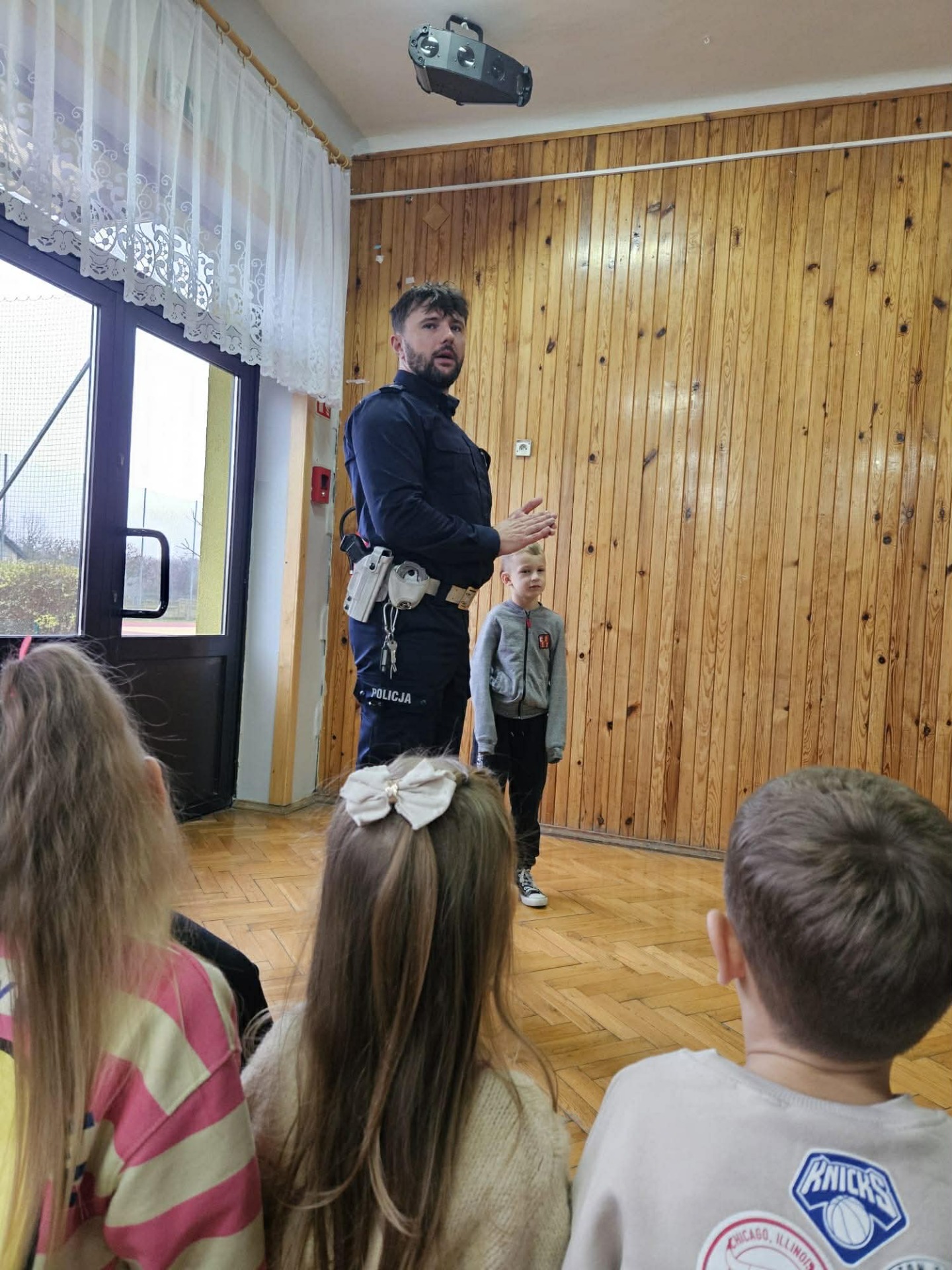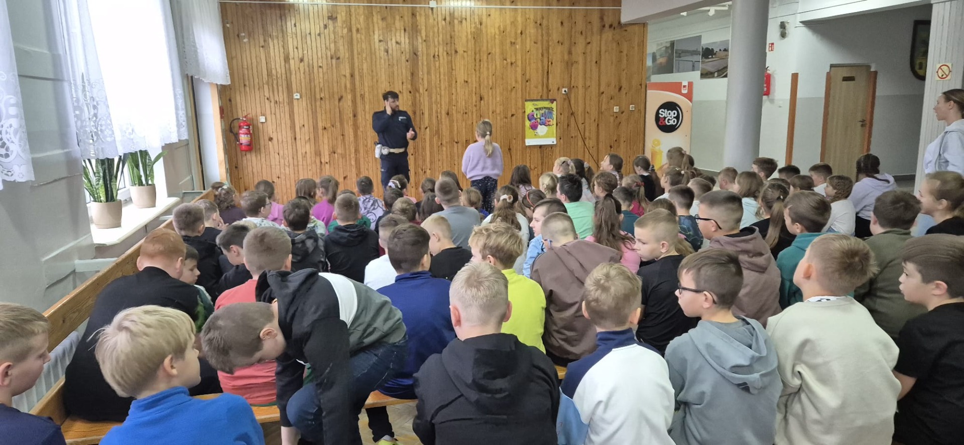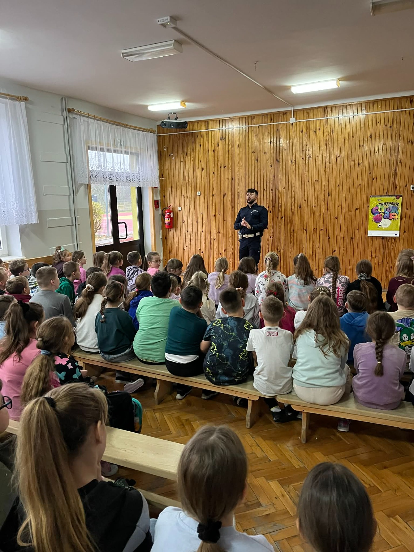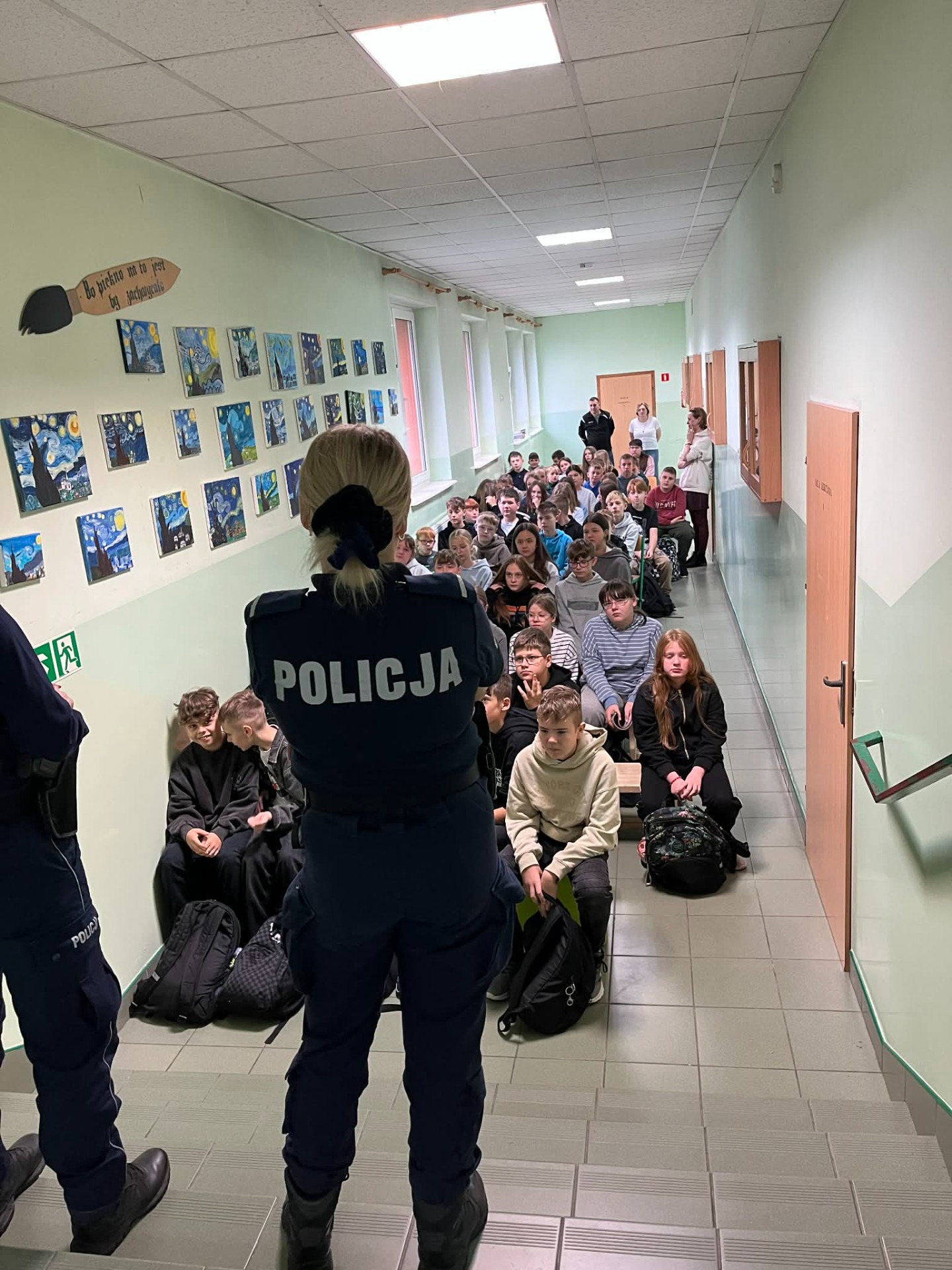 Dla klas 0–IV zorganizowano zajęcia dotyczące bezpiecznego poruszania się po drodze. Policjanci przypomnieli najmłodszym podstawowe zasady ruchu drogowego, znaczenie elementów odblaskowych oraz właściwe zachowanie w pobliżu jezdni. Ogromną atrakcją była możliwość obejrzenia radiowozu od środka i poznania jego wyposażenia.
