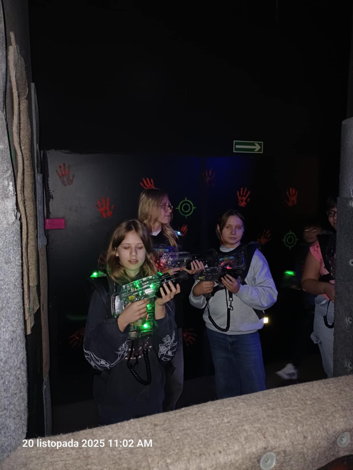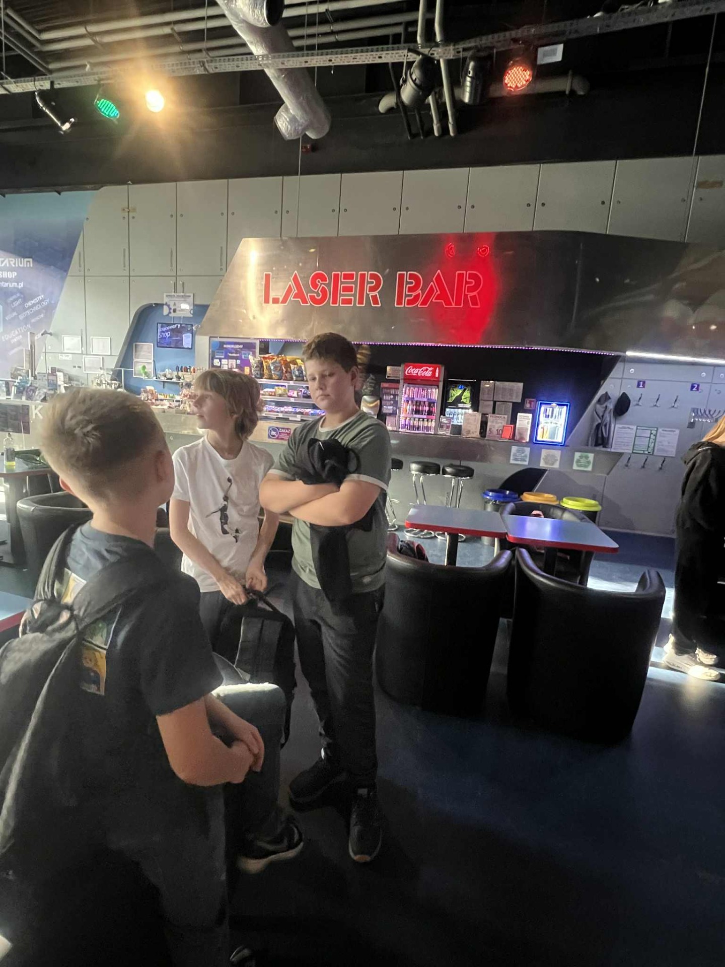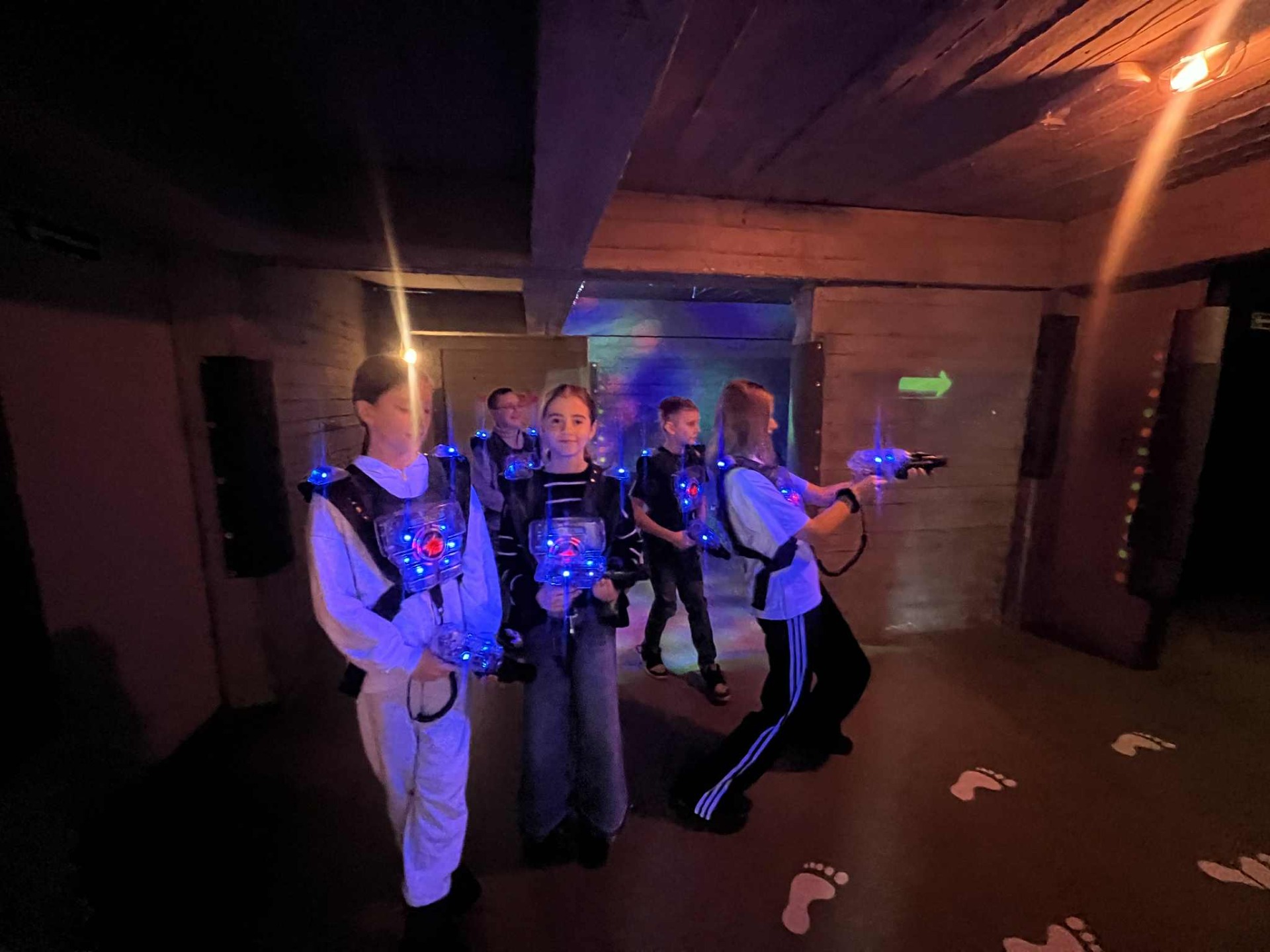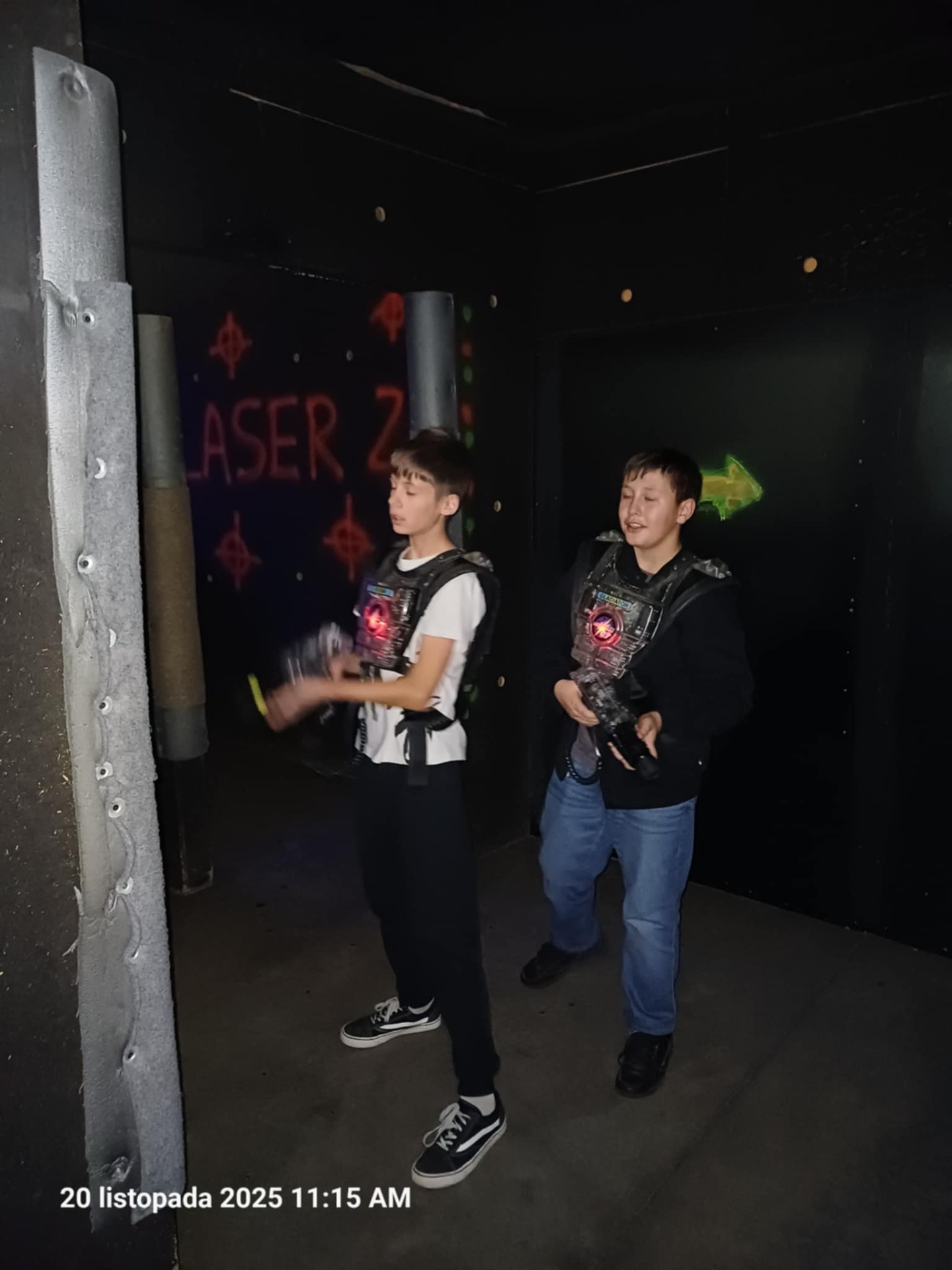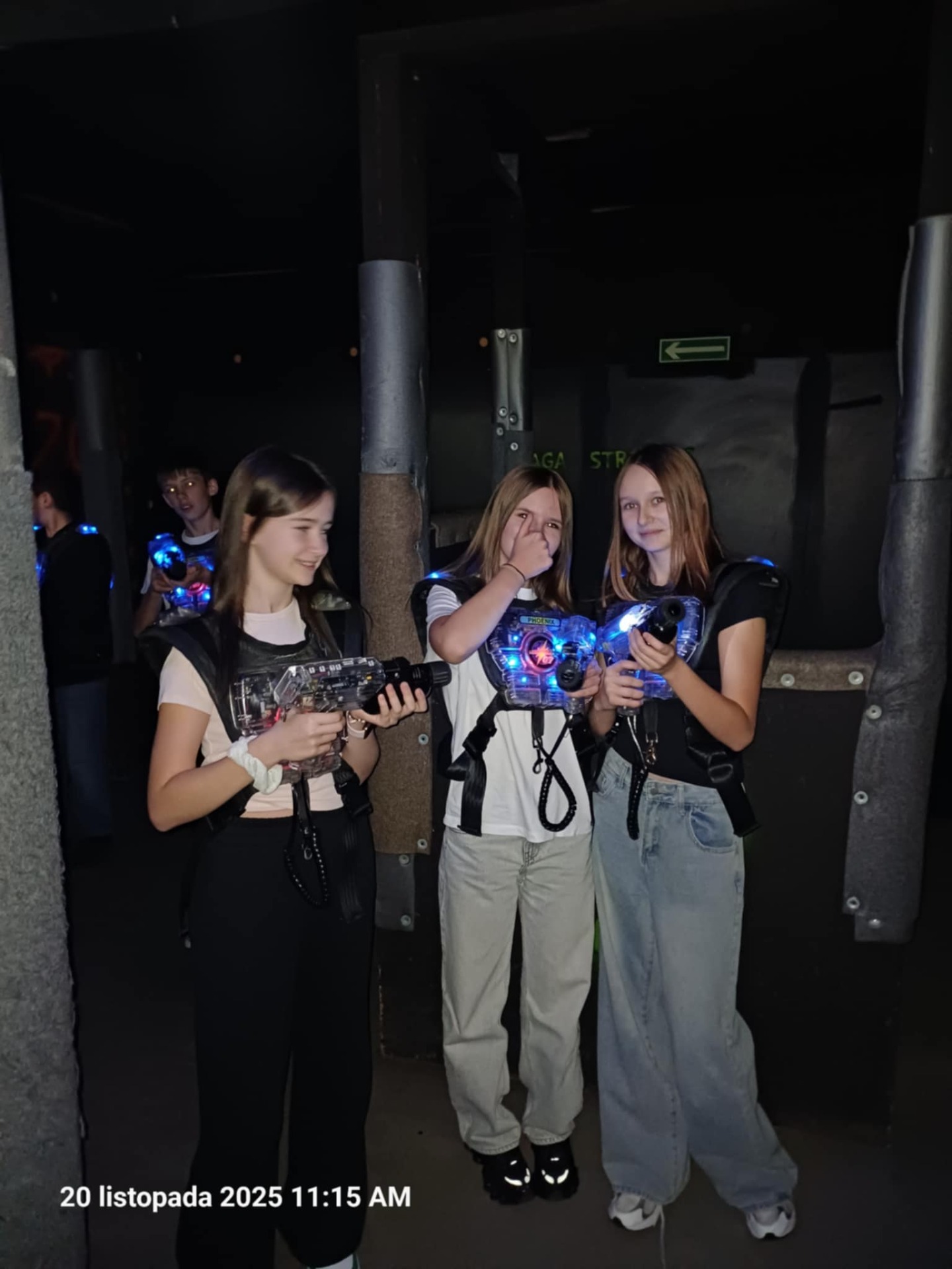 Pierwszym punktem programu była wizyta w Arena Laser Games w Eksperymentarium, gdzie uczniowie uczestniczyli w laserowej grze w paintball. Każda klasa rozegrała w laserowym labiryncie rozgrywkę, podczas której uczestnicy musieli wykazać się sprytem, inteligencją i umiejętnością szybkiej analizy stale zmieniającej się sytuacji. Zabawa stworzyła okazję do integracji klas, współpracy, a także rozwijania koordynacji i sprawności fizycznej.