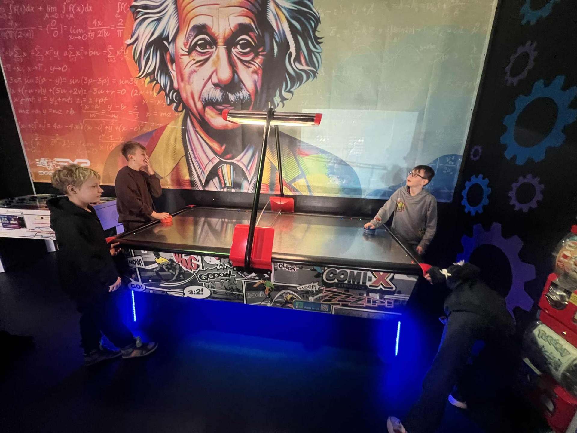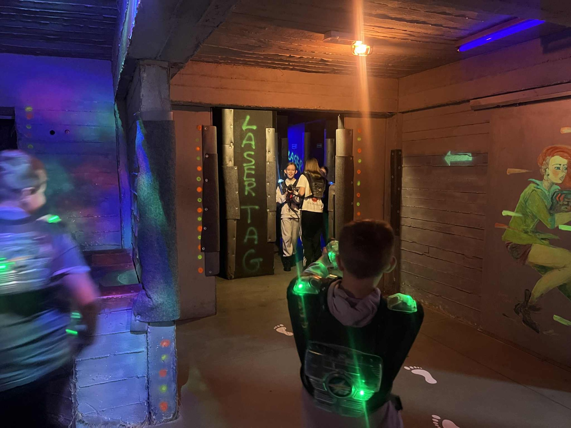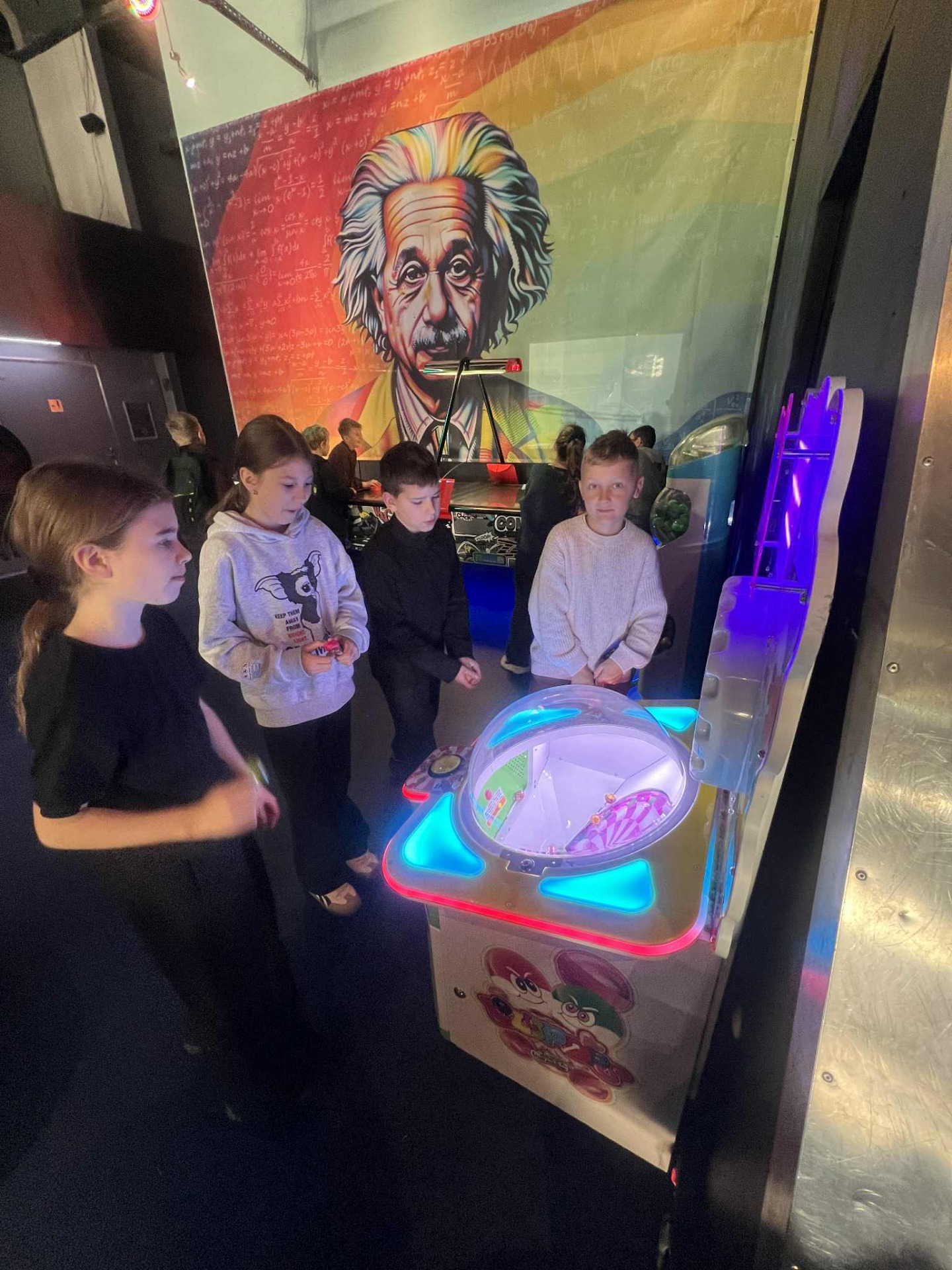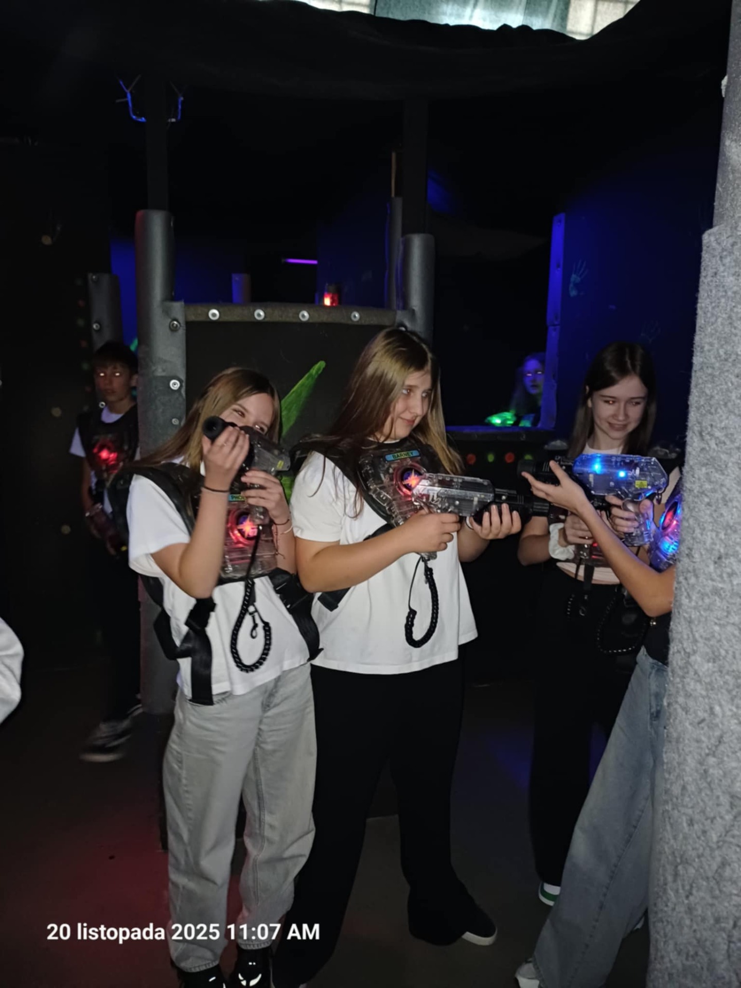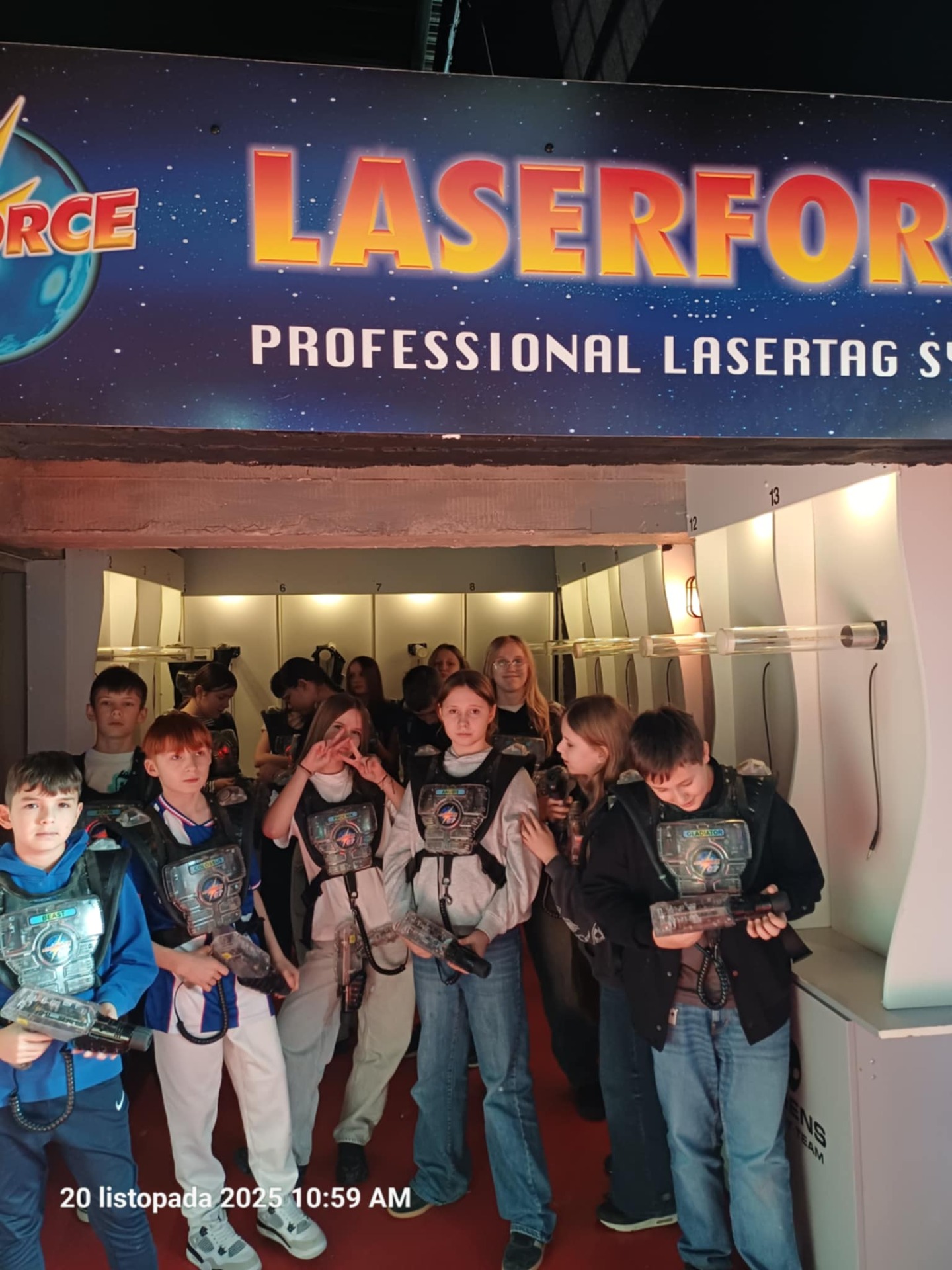 Pierwszym punktem programu była wizyta w Arena Laser Games w Eksperymentarium, gdzie uczniowie uczestniczyli w laserowej grze w paintball. Każda klasa rozegrała w laserowym labiryncie rozgrywkę, podczas której uczestnicy musieli wykazać się sprytem, inteligencją i umiejętnością szybkiej analizy stale zmieniającej się sytuacji. Zabawa stworzyła okazję do integracji klas, współpracy, a także rozwijania koordynacji i sprawności fizycznej.