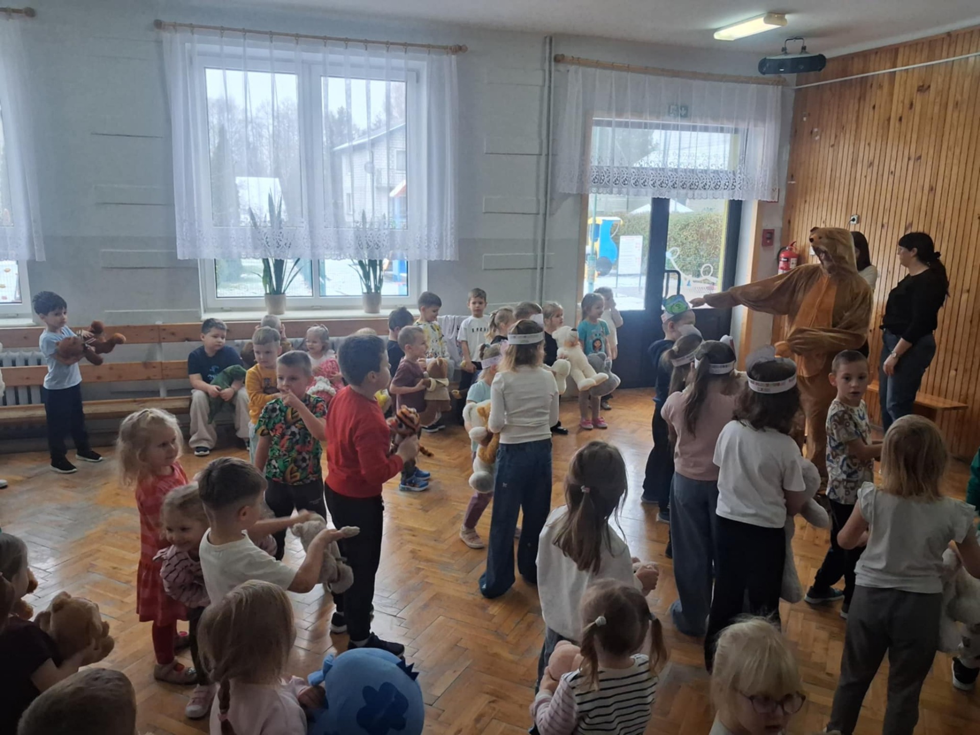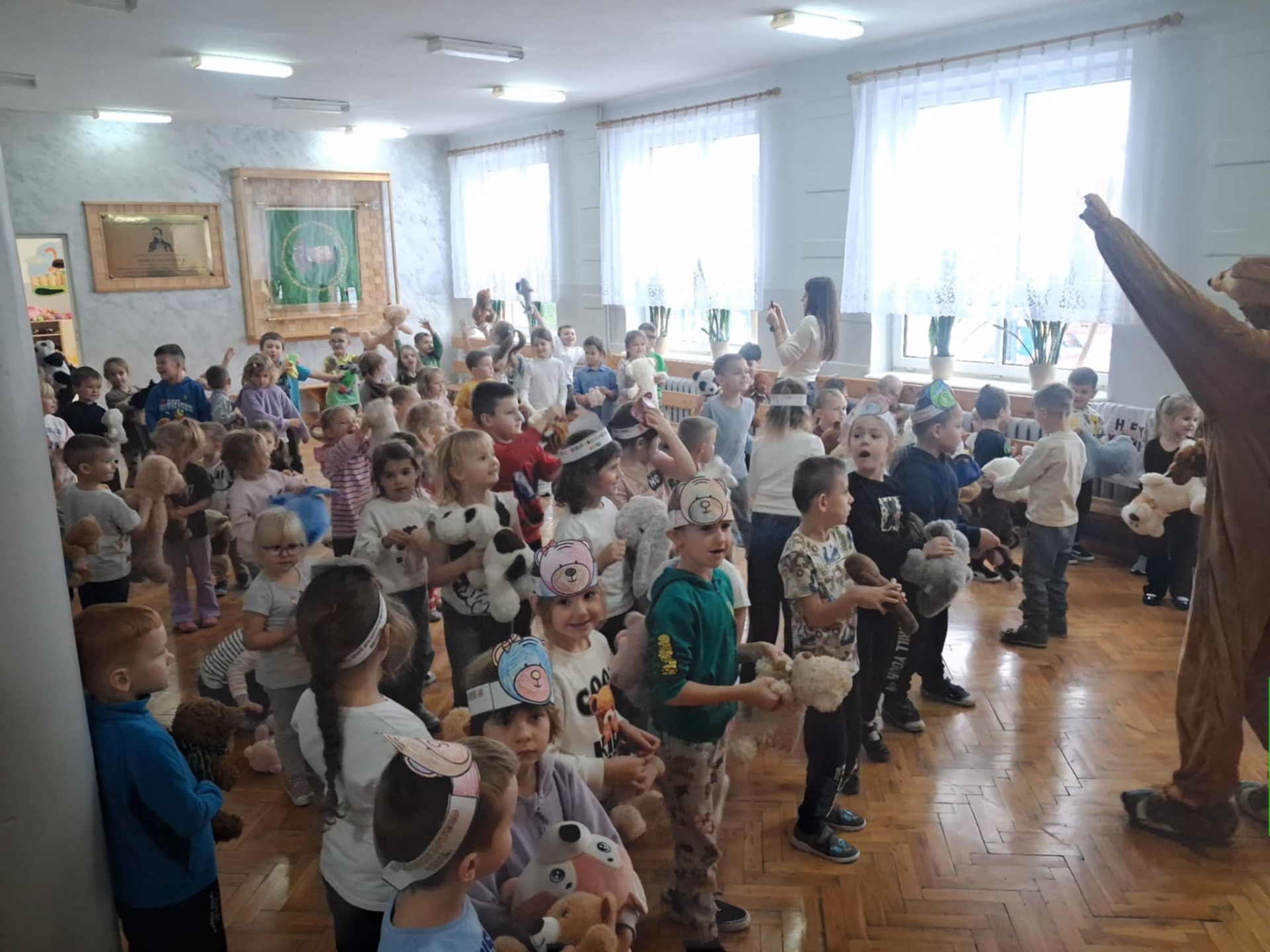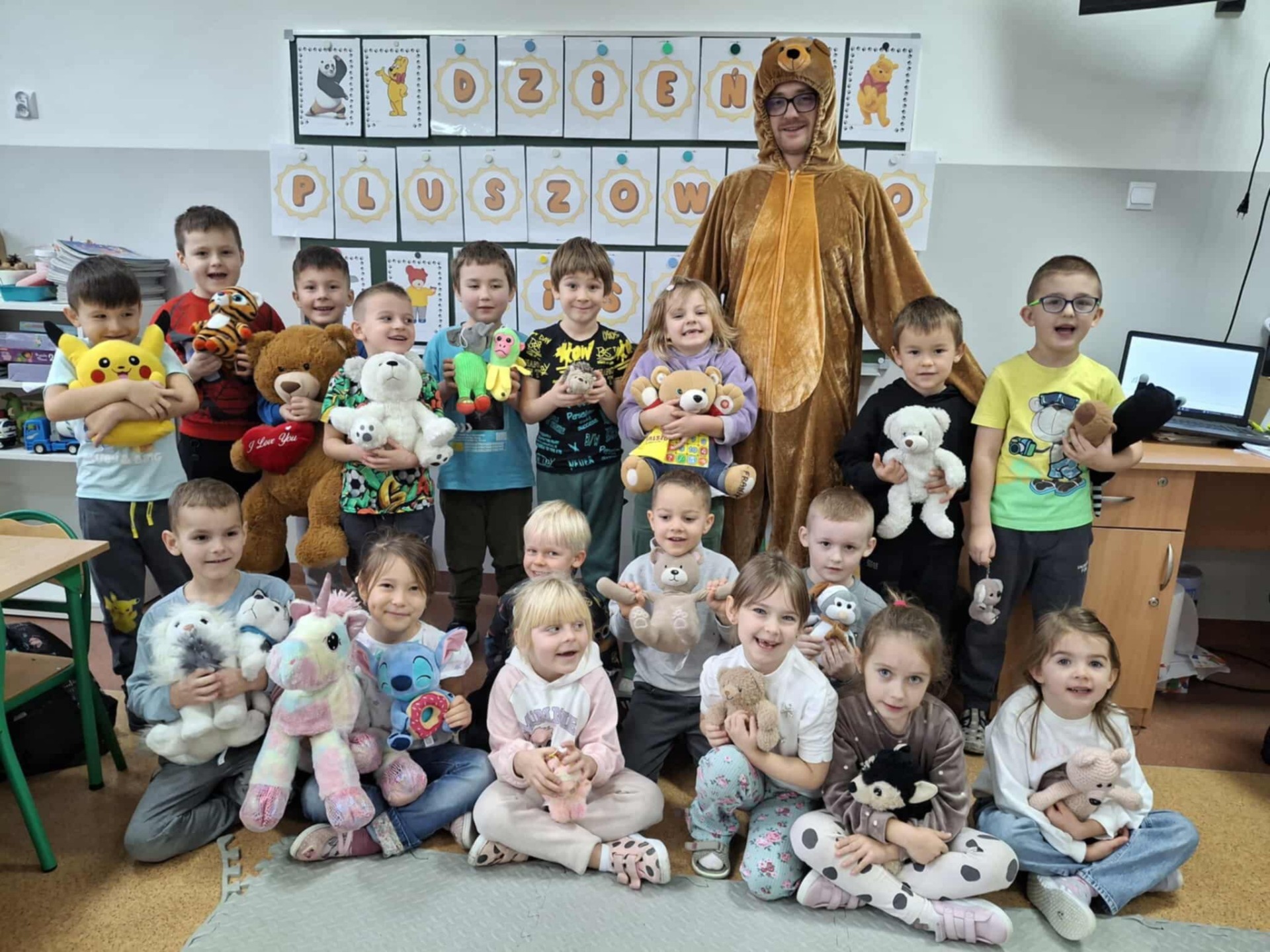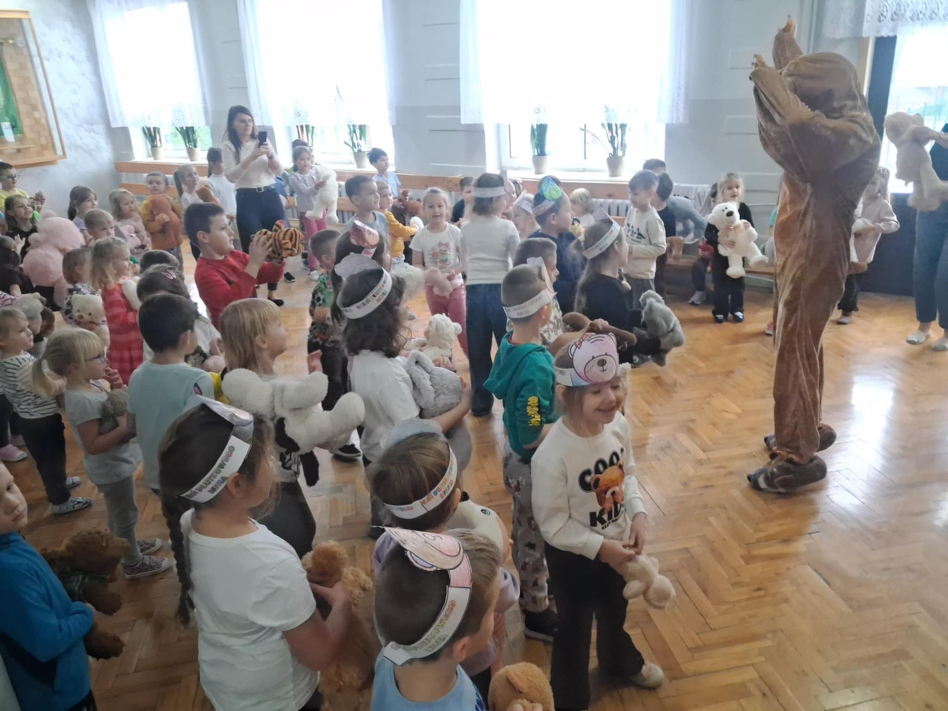 25 listopada obchodziliśmy Światowy Dzień Pluszowego Misia. Tego dnia każde dziecko mogło przynieść do przedszkola swojego ulubionego pluszaka. Przedszkolaczki przedstawiały swoje misie, opowiadały, od kogo je dostały oraz za co najbardziej kochają swoje maskotki. Dzieci zostały zaproszone do wspólnej zabawy w misiowej krainie. Poznały historię święta, słuchały wierszy i opowiadań o misiach, bawiły się przy piosenkach, a także tworzyły słodkie misie. Dla dzieci przygotowano wiele atrakcji: zabawy ruchowe, plastyczne, tańce z pluszakami. Dzieci odwiedził również Miś, z którym przedszkolaczki świetnie się bawiły. Ten dzień był pełen radości i uśmiechu oraz wspólnej zabawy.