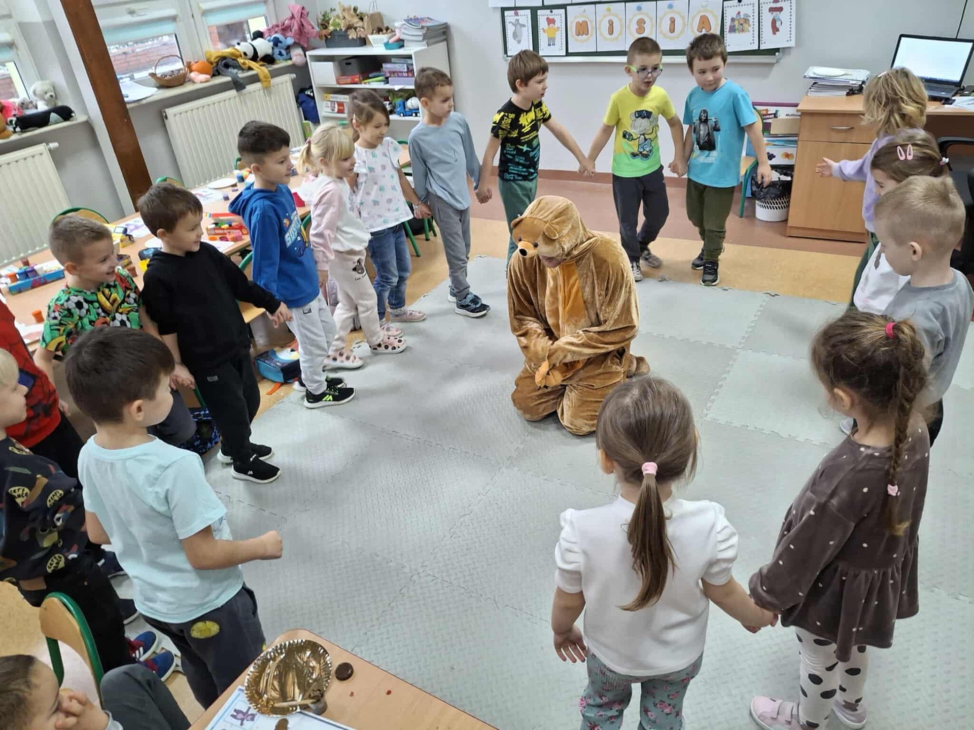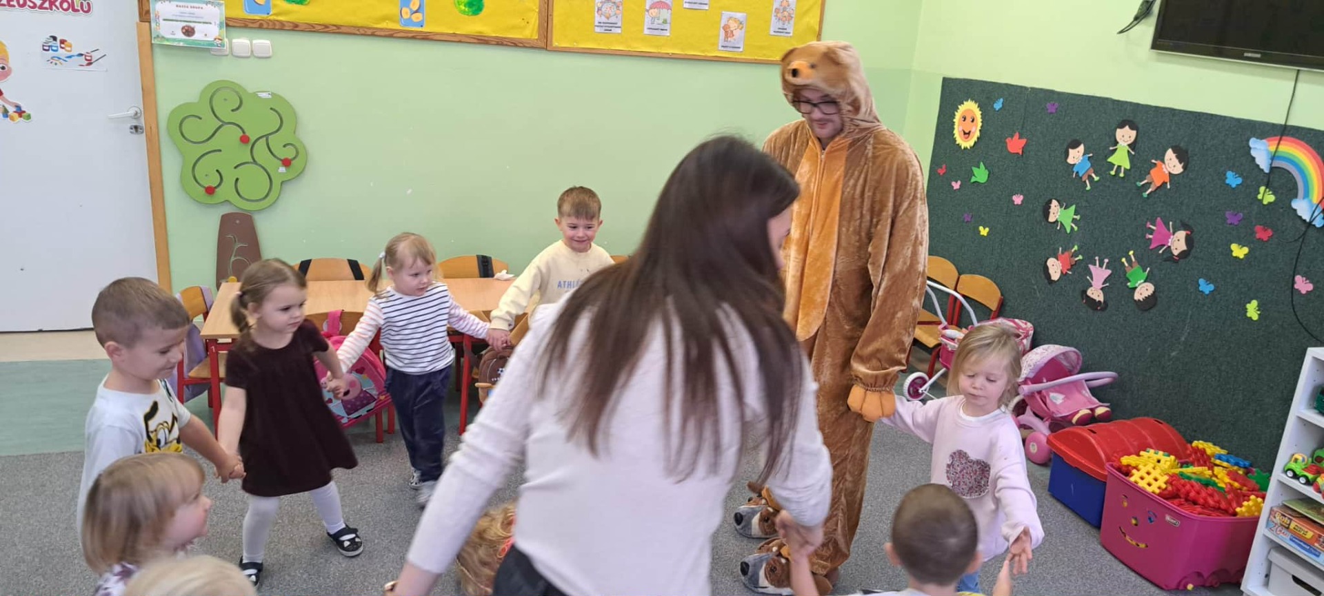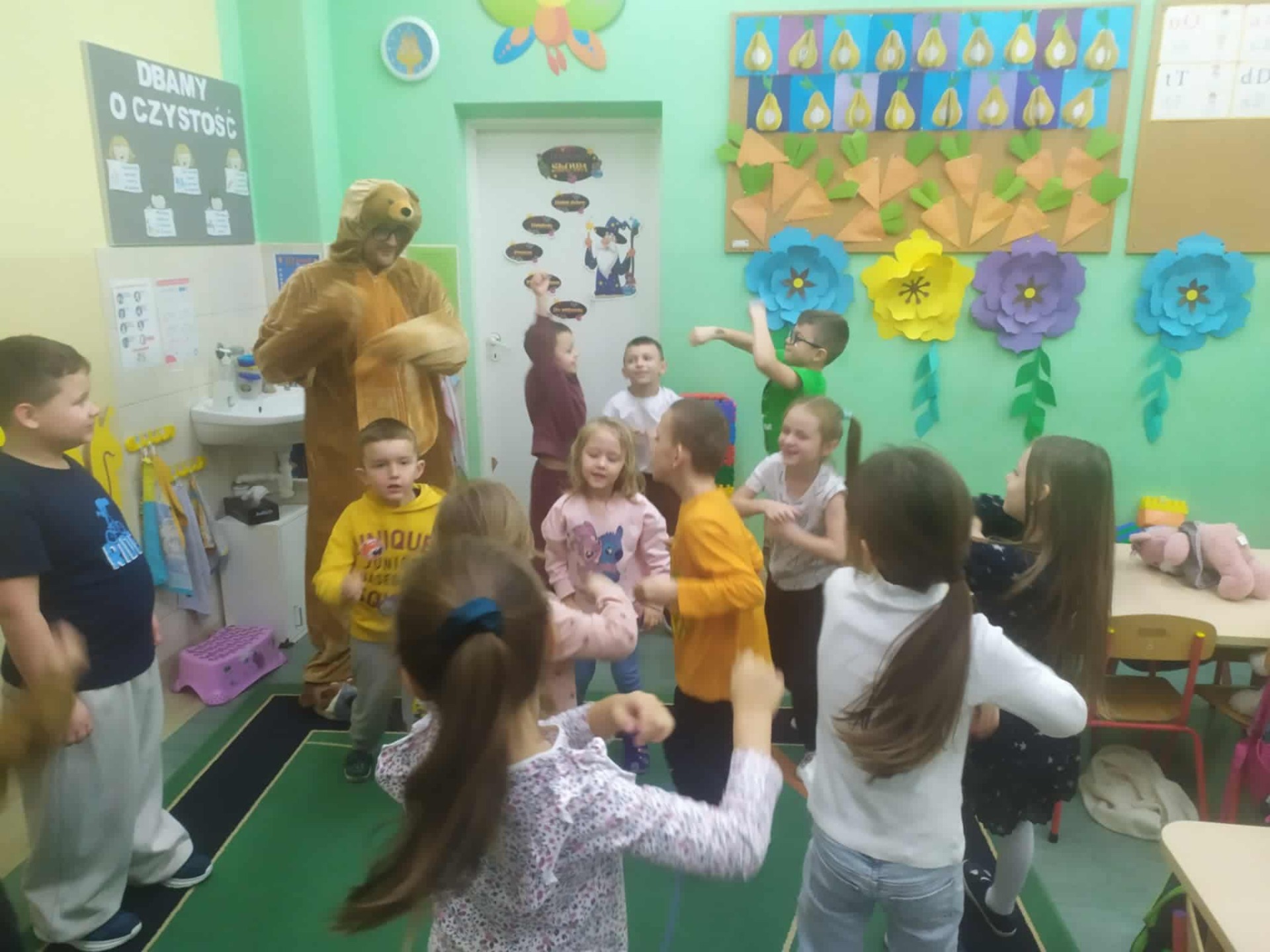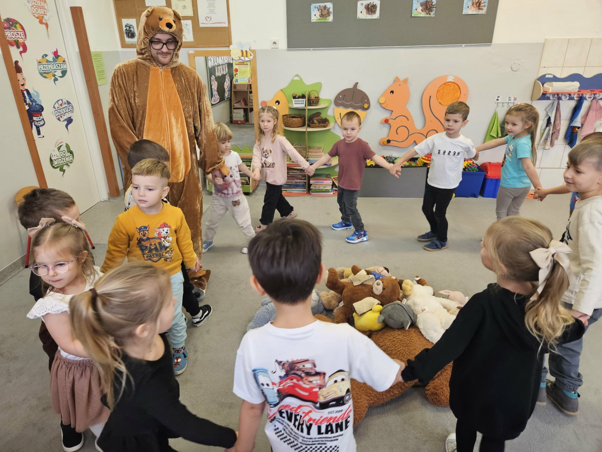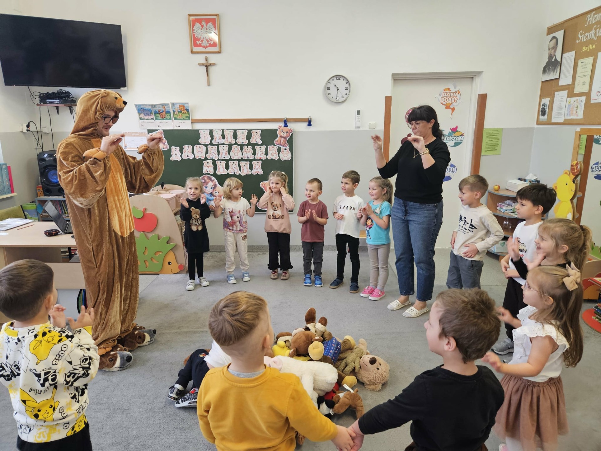 25 listopada obchodziliśmy Światowy Dzień Pluszowego Misia. Tego dnia każde dziecko mogło przynieść do przedszkola swojego ulubionego pluszaka. Przedszkolaczki przedstawiały swoje misie, opowiadały, od kogo je dostały oraz za co najbardziej kochają swoje maskotki. Dzieci zostały zaproszone do wspólnej zabawy w misiowej krainie. Poznały historię święta, słuchały wierszy i opowiadań o misiach, bawiły się przy piosenkach, a także tworzyły słodkie misie. Dla dzieci przygotowano wiele atrakcji: zabawy ruchowe, plastyczne, tańce z pluszakami. Dzieci odwiedził również Miś, z którym przedszkolaczki świetnie się bawiły. Ten dzień był pełen radości i uśmiechu oraz wspólnej zabawy.