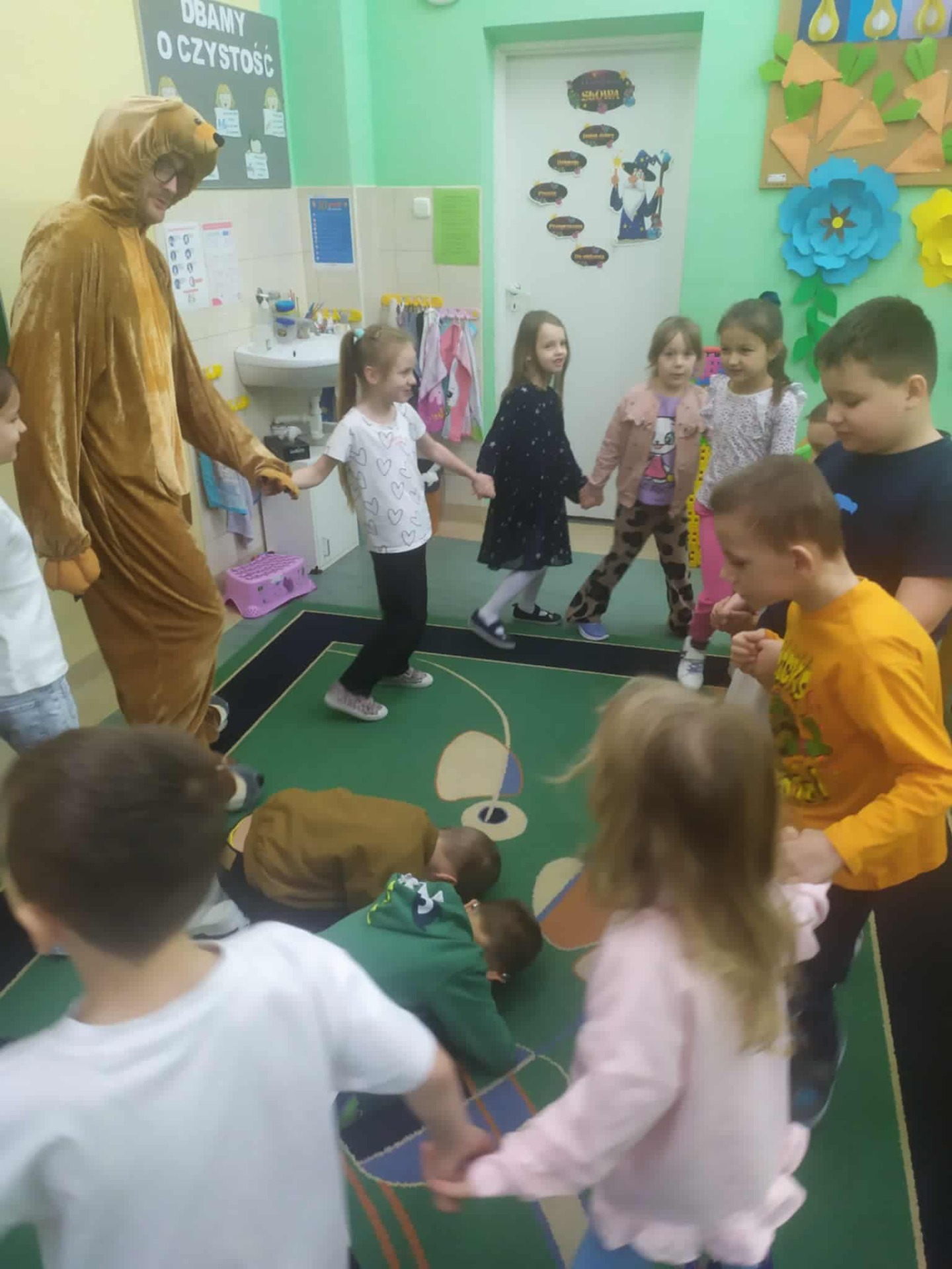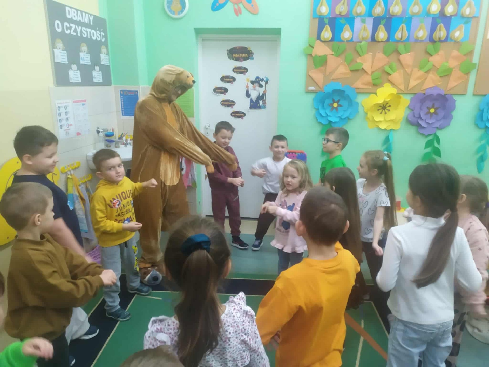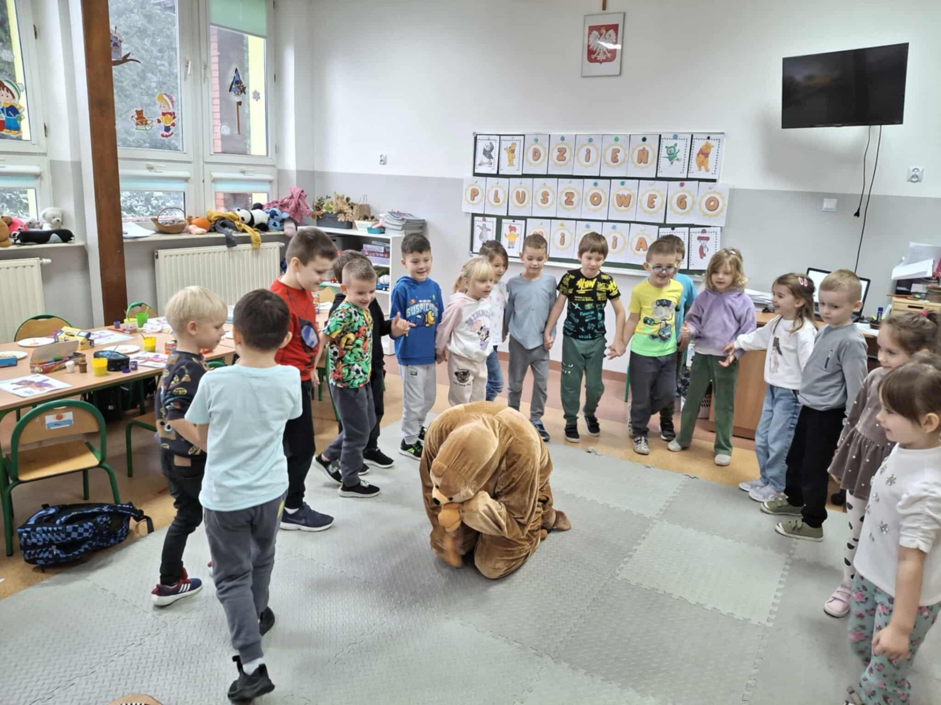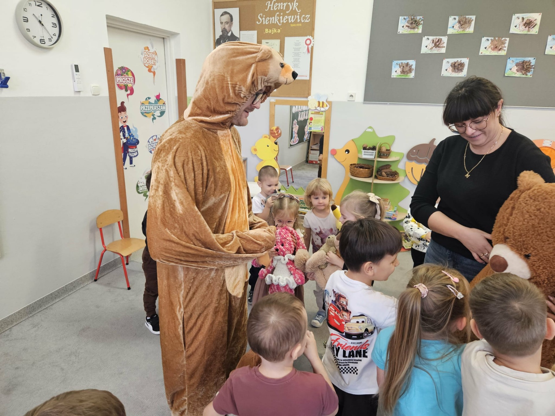 25 listopada obchodziliśmy Światowy Dzień Pluszowego Misia. Tego dnia każde dziecko mogło przynieść do przedszkola swojego ulubionego pluszaka. Przedszkolaczki przedstawiały swoje misie, opowiadały, od kogo je dostały oraz za co najbardziej kochają swoje maskotki. Dzieci zostały zaproszone do wspólnej zabawy w misiowej krainie. Poznały historię święta, słuchały wierszy i opowiadań o misiach, bawiły się przy piosenkach, a także tworzyły słodkie misie. Dla dzieci przygotowano wiele atrakcji: zabawy ruchowe, plastyczne, tańce z pluszakami. Dzieci odwiedził również Miś, z którym przedszkolaczki świetnie się bawiły. Ten dzień był pełen radości i uśmiechu oraz wspólnej zabawy.