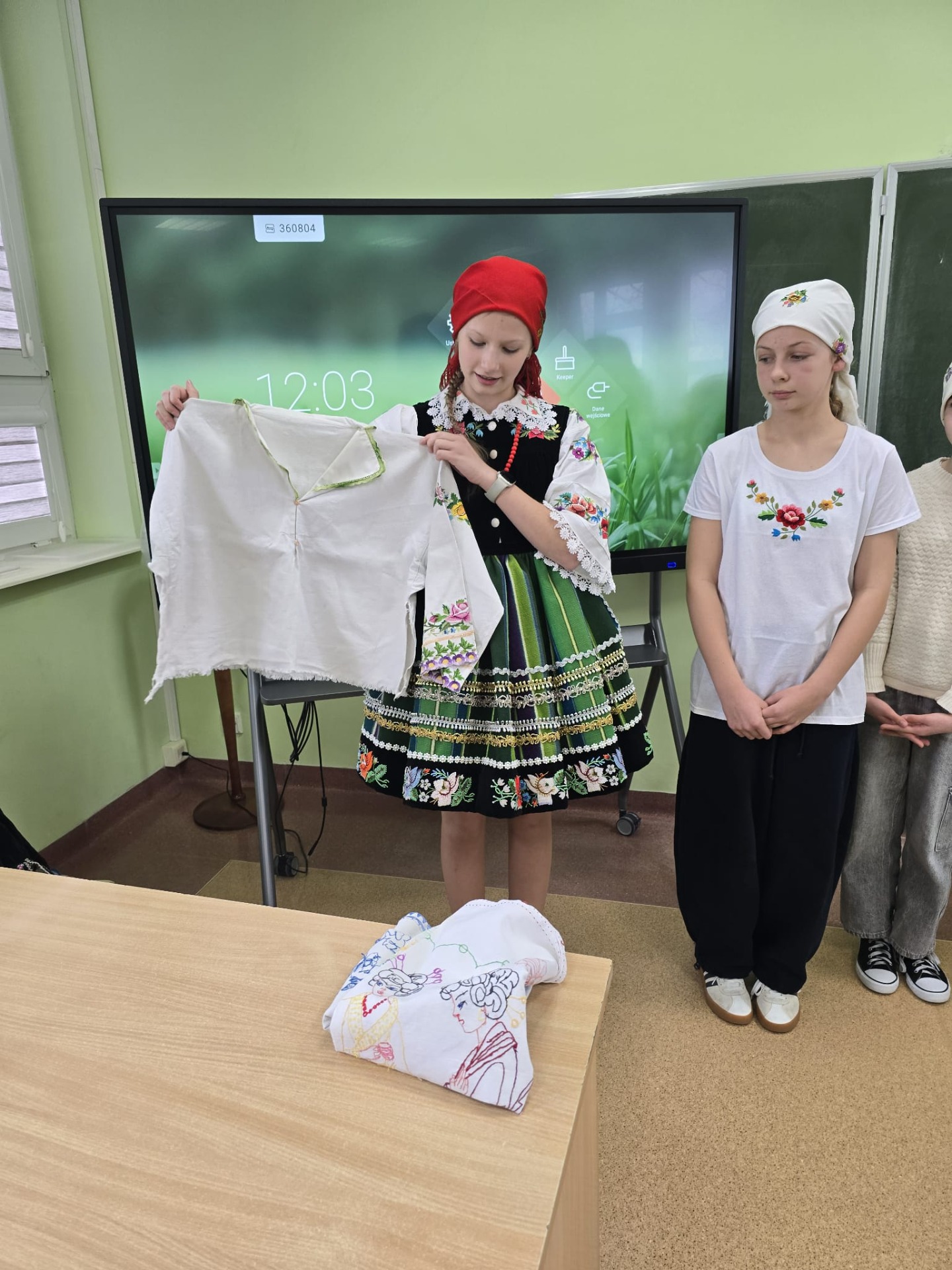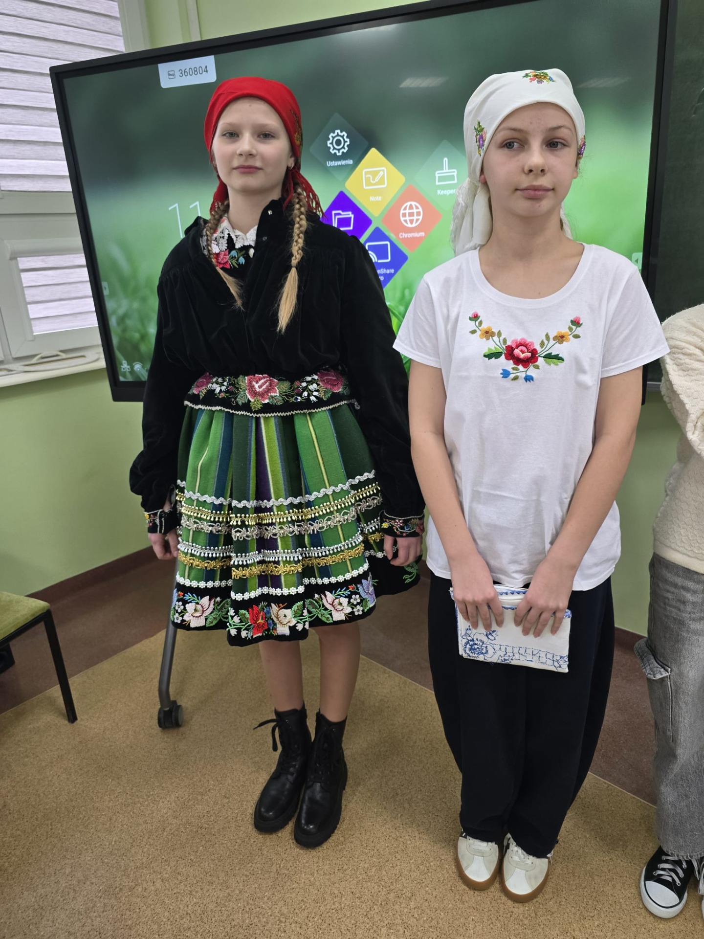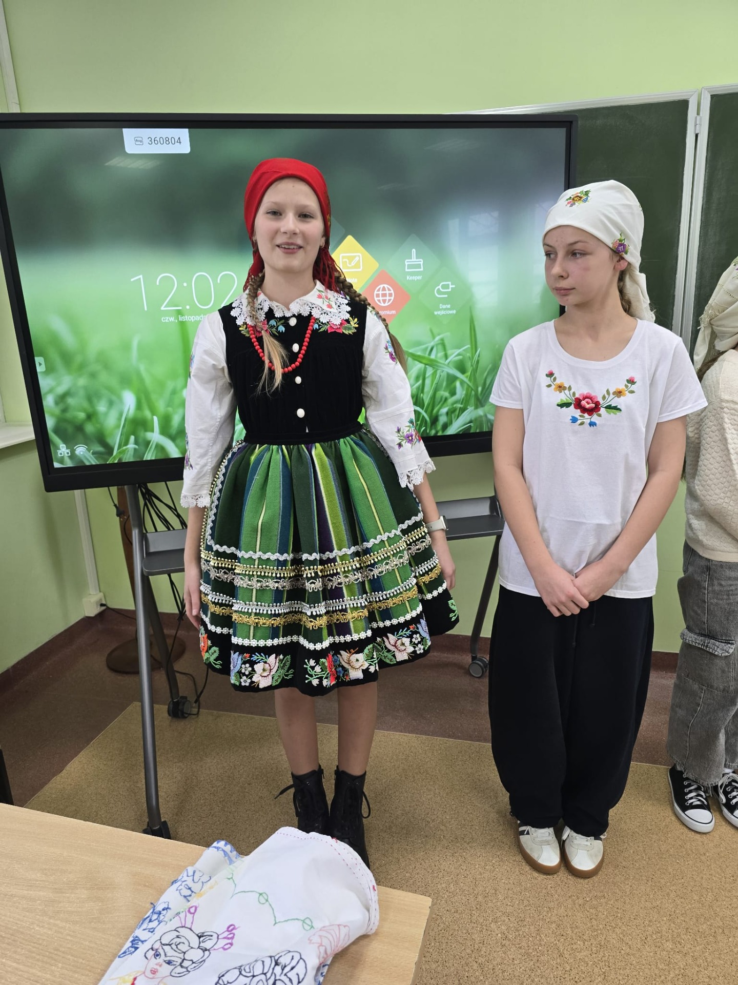27 listopada uczennice klasy Vb podczas lekcji geografii dokonały prezentacji projektu „Folklor ziemi łowickiej.