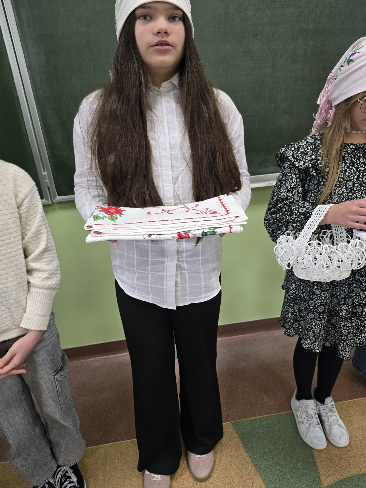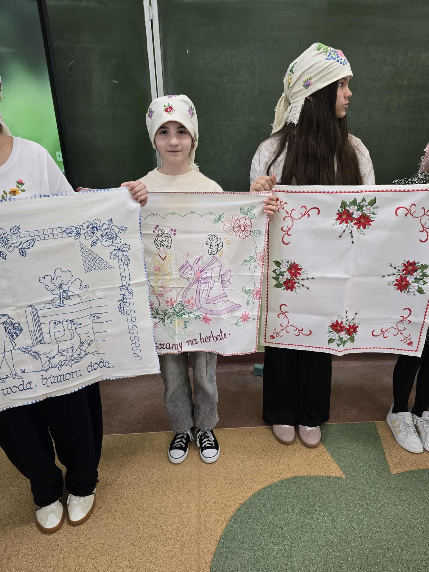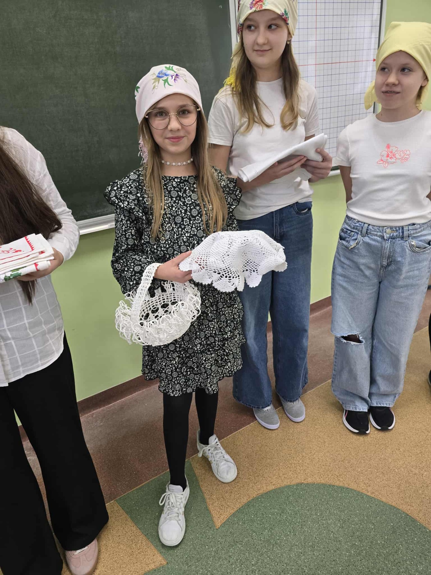 27 listopada uczennice klasy Vb podczas lekcji geografii dokonały prezentacji projektu „Folklor ziemi łowickiej.