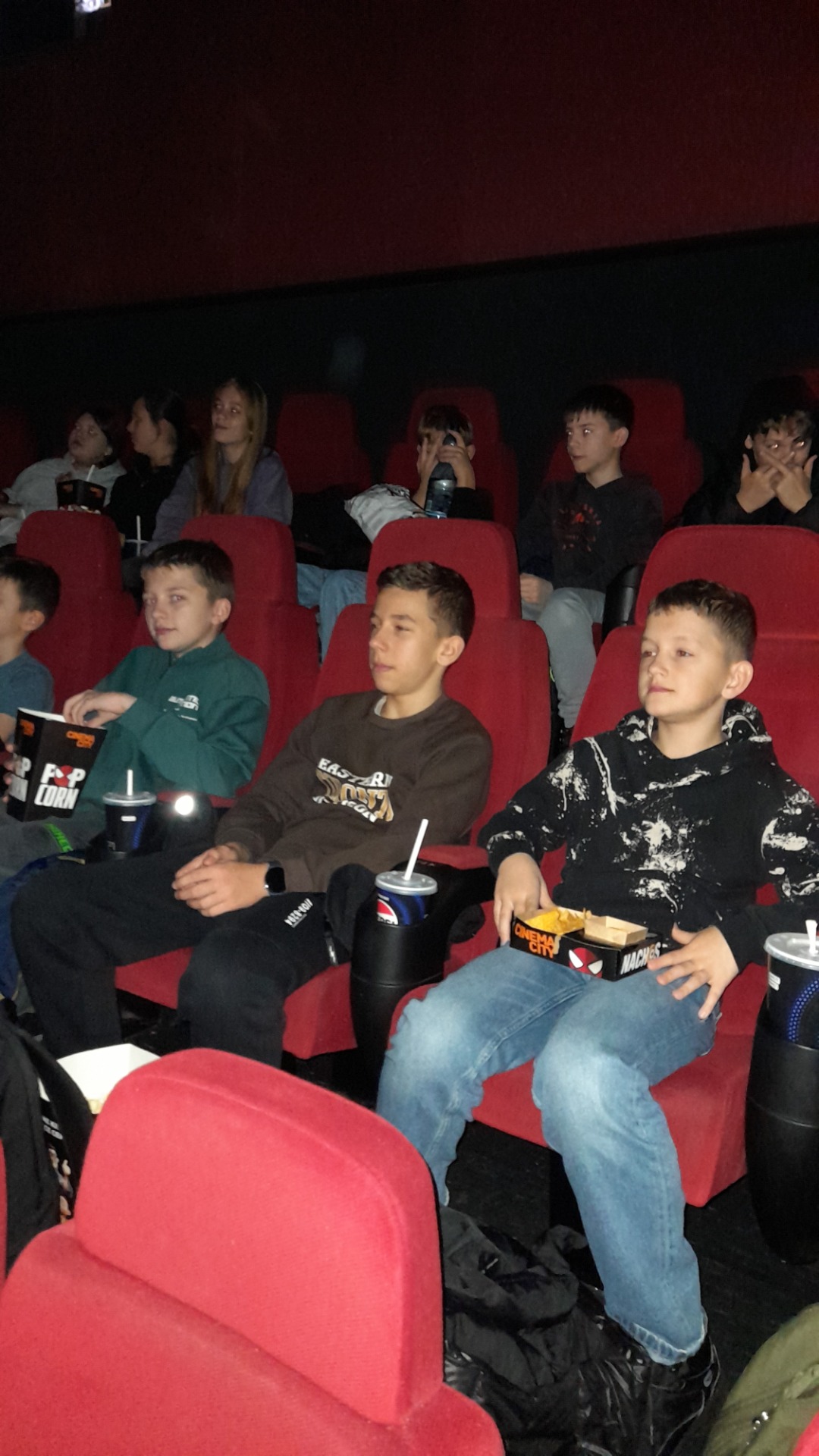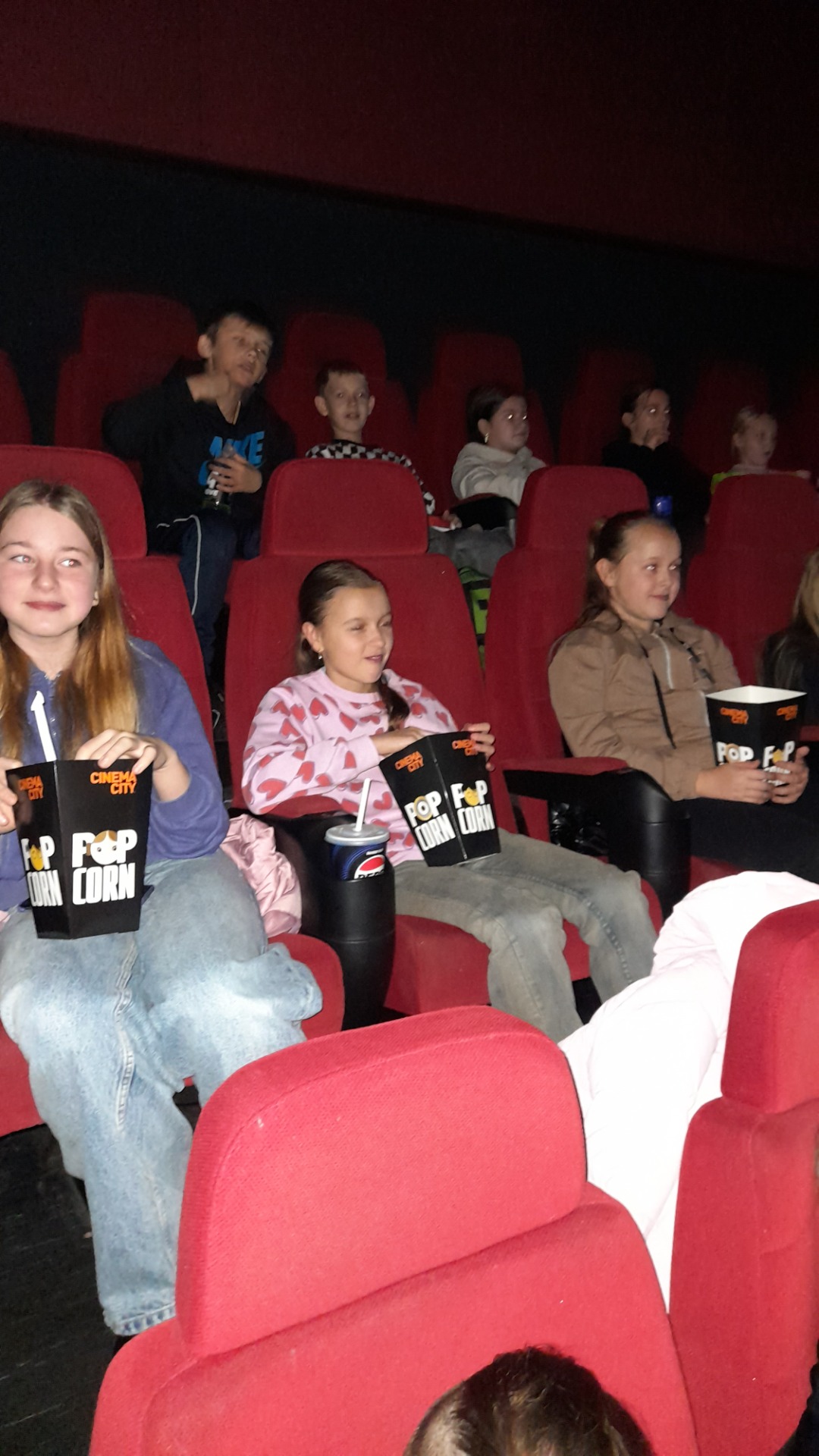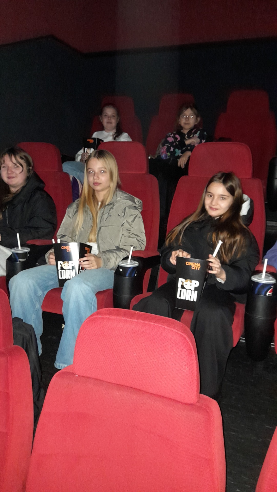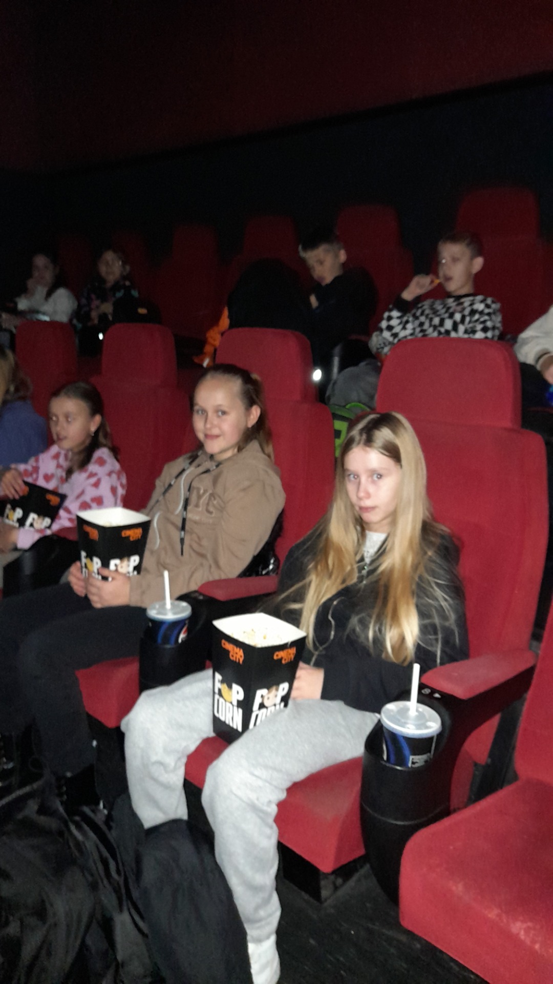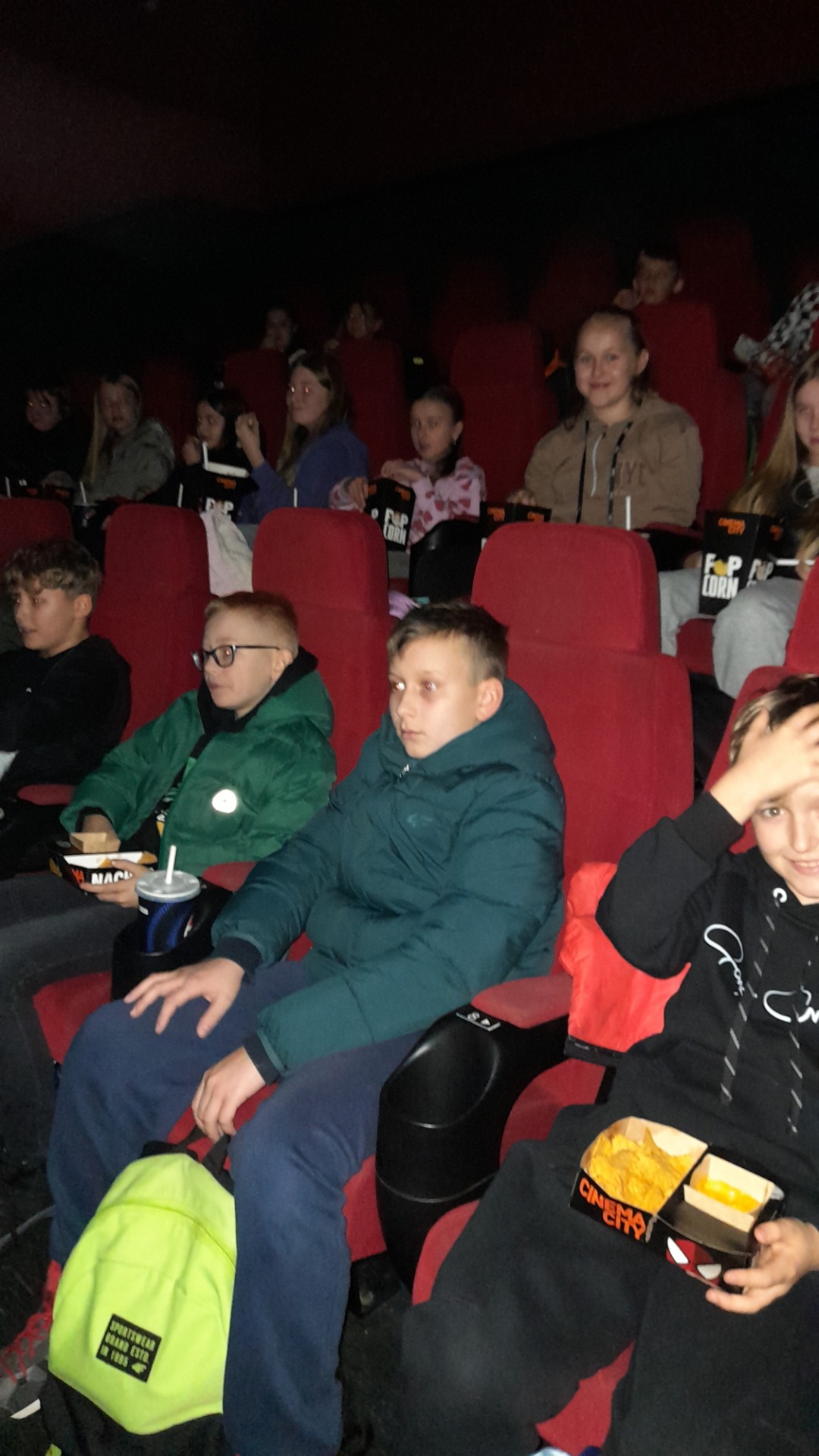 Pierwszym punktem naszej wycieczki był pobyt w kinie Cinema City. Przed zaplanowanym seansem obejrzeliśmy ciekawą videoprelekcję pt. „Magia świąt w bajkach i filmach”. Święta Bożego Narodzenia towarzyszą nam od wieków. Dlatego nie dziwi fakt, że stały się nieodłącznym elementem wielu bajek i filmów. Wspólnie przyjrzeliśmy się świątecznej symbolice, a pomogły nam w tym znane i lubiane postacie bajkowe i filmowe. Wprowadziły nas w świąteczny klimat i zagwarantowały dobrą zabawę. Następnie obejrzeliśmy film pt. „Zwierzaki na zakręcie”. To pełna humoru i niezwykłych emocji opowieść o dzielnej myszy, która musi znaleźć w sobie odwagę, by stanąć do szalonej rywalizacji. Film pokazuje, jak ważne są wsparcie innych, przyjaźń i współpraca. Uczy, że prawdziwe szczęście to nie tylko sukces i blask fleszy, ale też osoby, które są przy nas w trudnych chwilach. Główna bohaterka – Edzia przypomina nam, że warto wierzyć w swoje marzenia, nawet jeśli inni mówią, że są nierealne. Film uczy też, że uczciwa rywalizacja i szacunek dla innych są ważniejsze niż same nagrody. Podczas projekcji filmu było mnóstwo okazji do śmiechu.