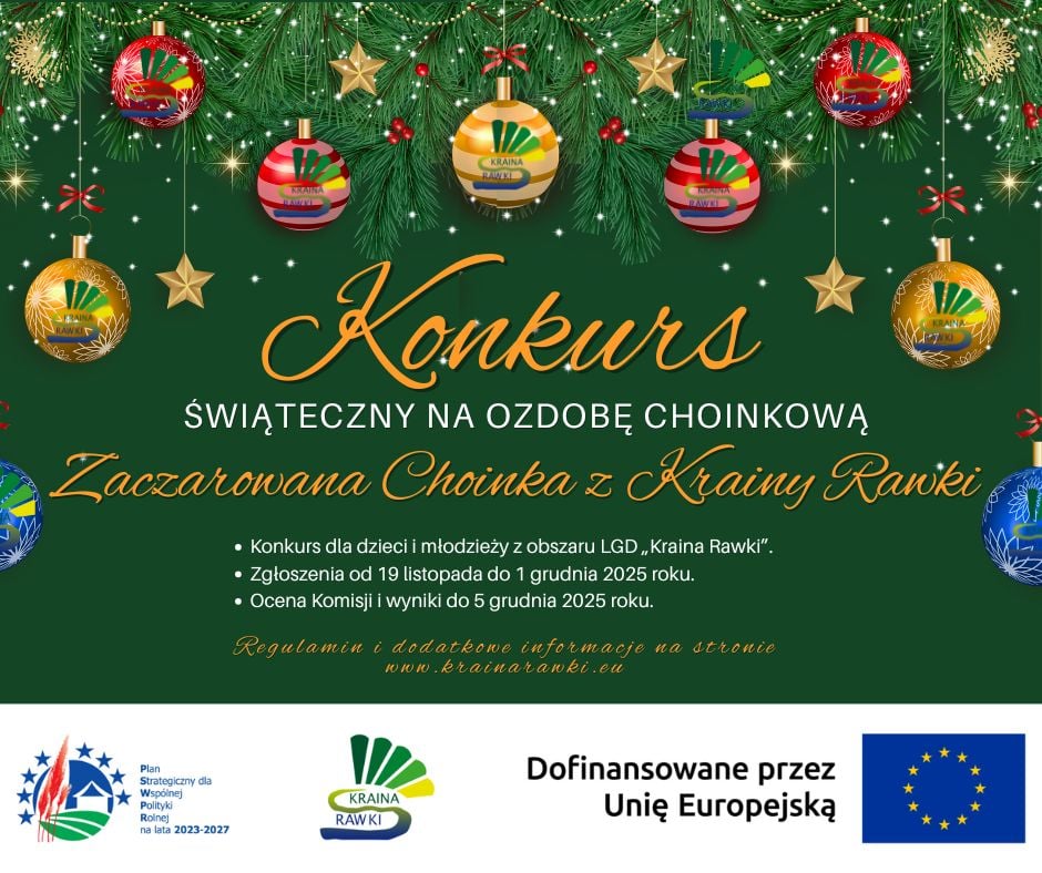 Zadanie uczestników polegało na wykonaniu trójwymiarowej ozdoby choinkowej inspirowanej logo LGD „Kraina Rawki” lub zawierającej jego elementy graficzne. Technika wykonania była dowolna, z wykorzystaniem materiałów trwałych i bezpiecznych, takich jak papier, filc, masa solna, drewno, tkanina czy sznurek. Każdy uczestnik mógł zgłosić jedną pracę. Nagrodami były karty podarunkowe.