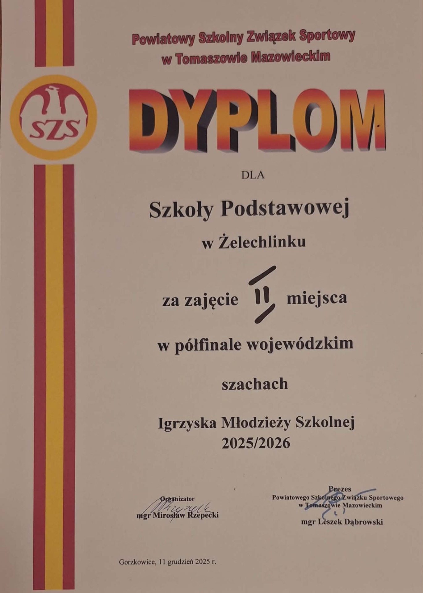 Na oddanie się szachom, każdy dzień jest dobry, chociażby czwartek! Właśnie 11.12.2025 r. wracamy z gościnnych Gorzkowic, które tradycyjnie są organizatorem i gospodarzem DRUŻYNOWYCH PÓŁFINAŁÓW WOJEWÓDZTWA ŁÓDZKIEGO W SZACHACH.