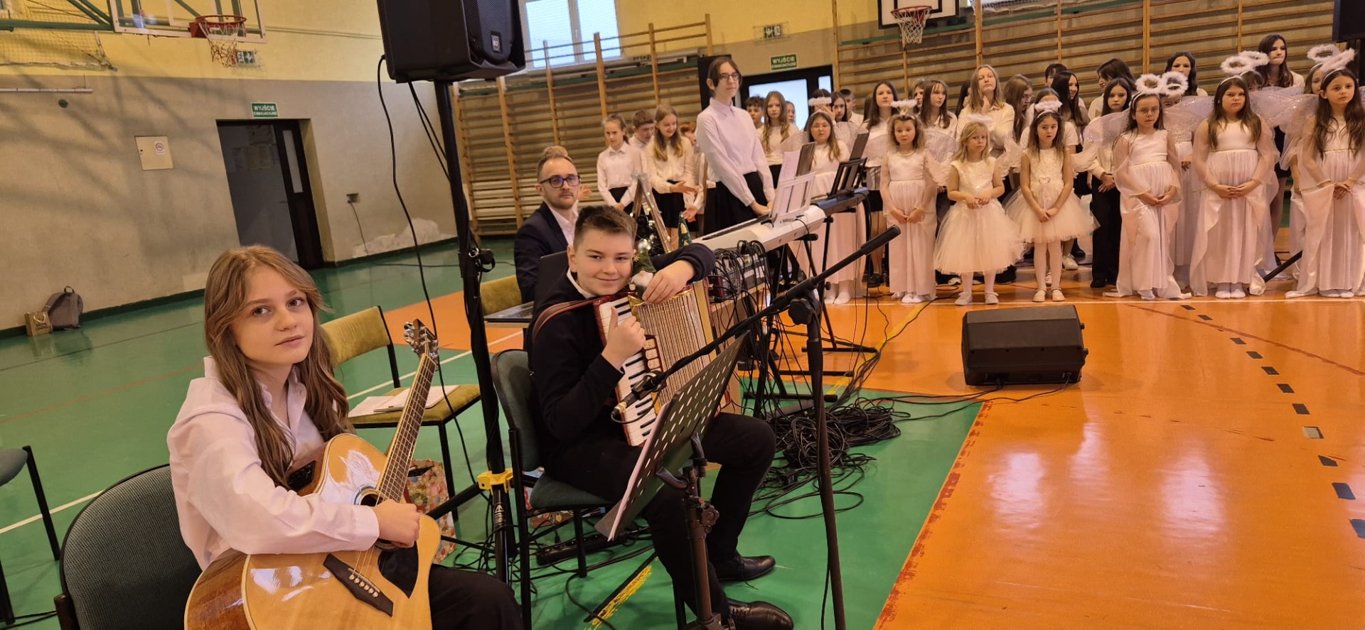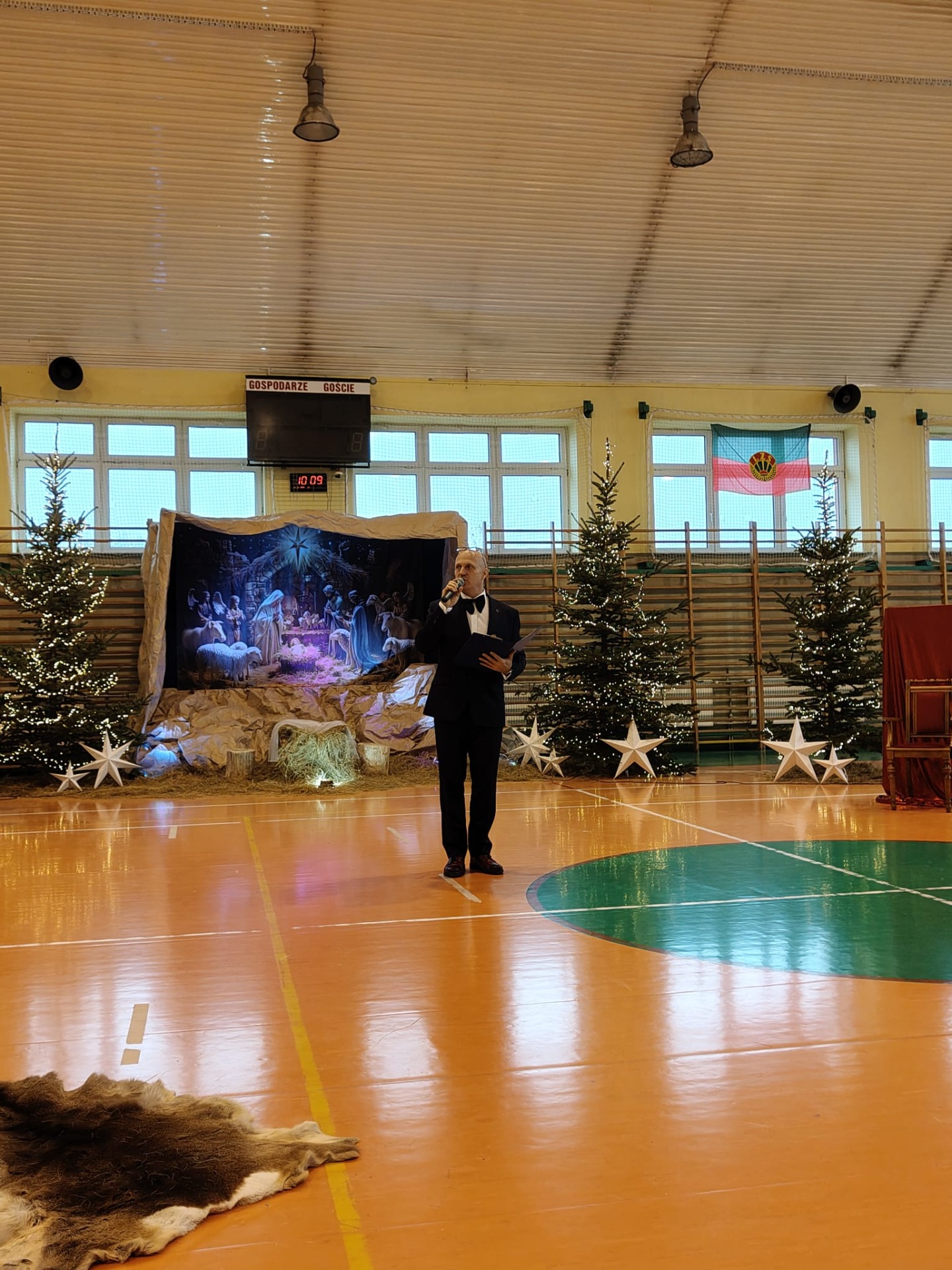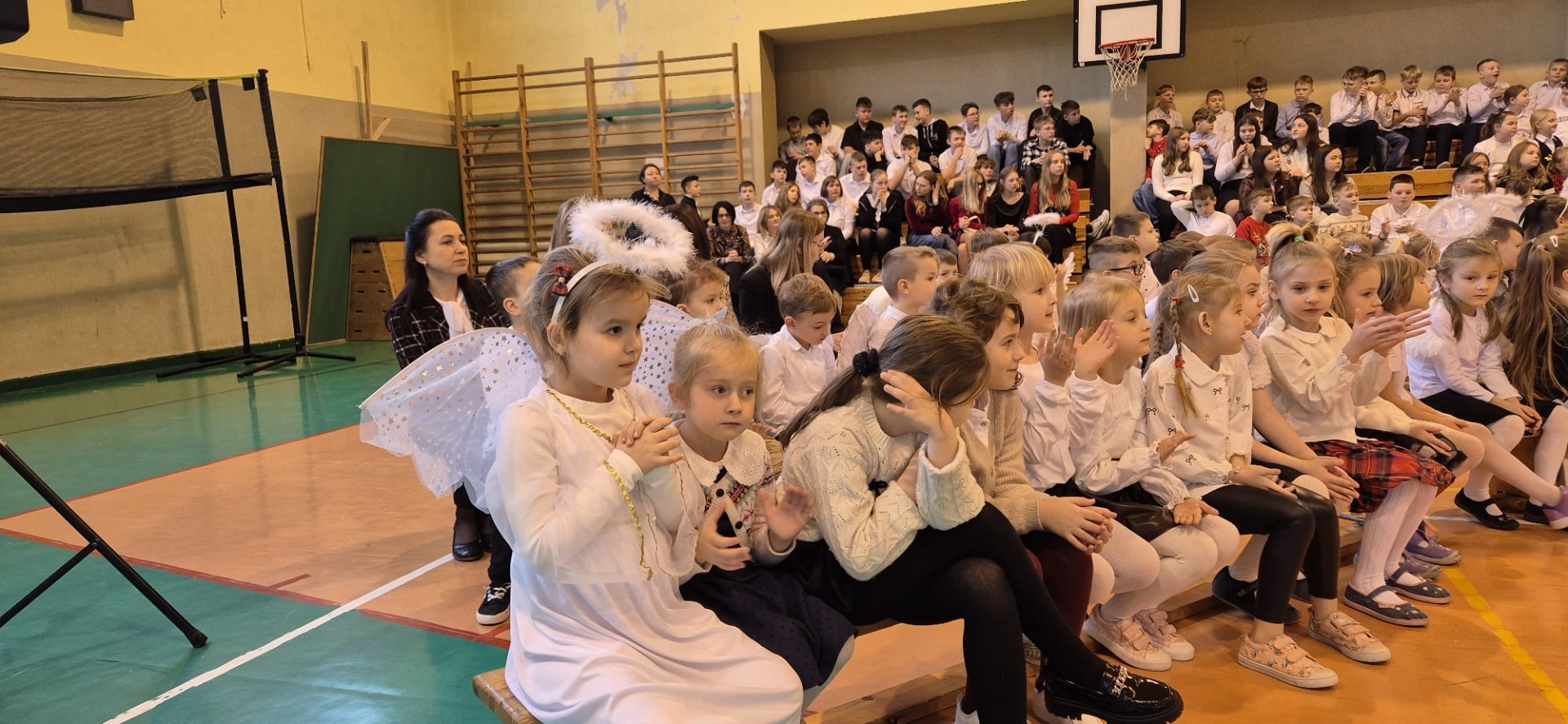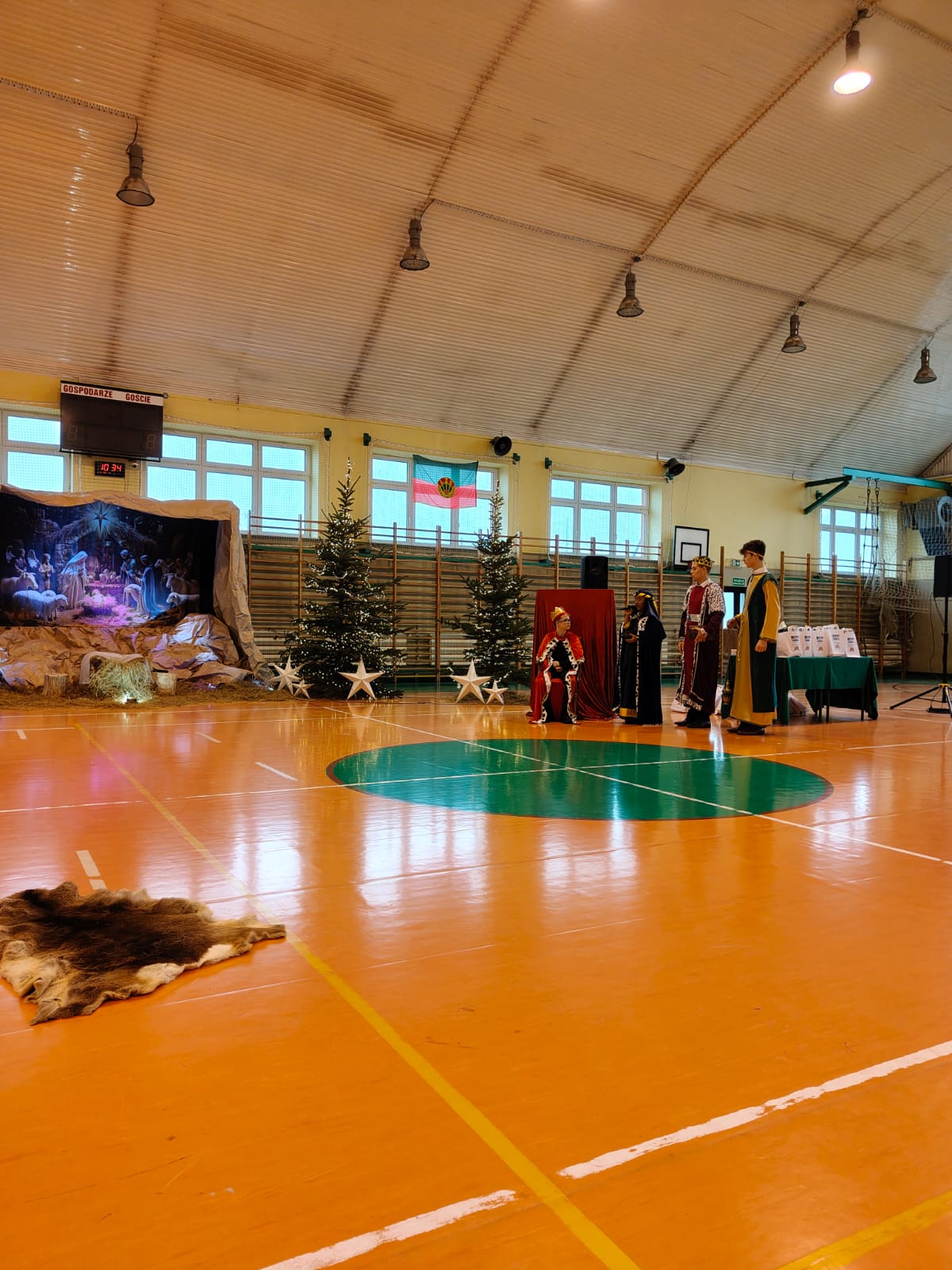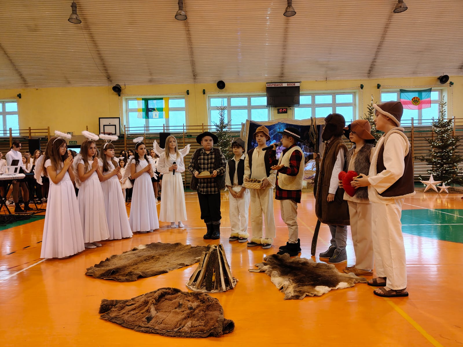 18 grudnia w naszej Szkole odbyły się tradycyjne jasełka przygotowane przez uczniów po opieką nauczycieli. Wydarzenie miało miejsce w hali sportowej, którą na tę okazję udekorowano świątecznymi ornamentami, gwiazdami oraz scenografią przedstawiającą Betlejem.