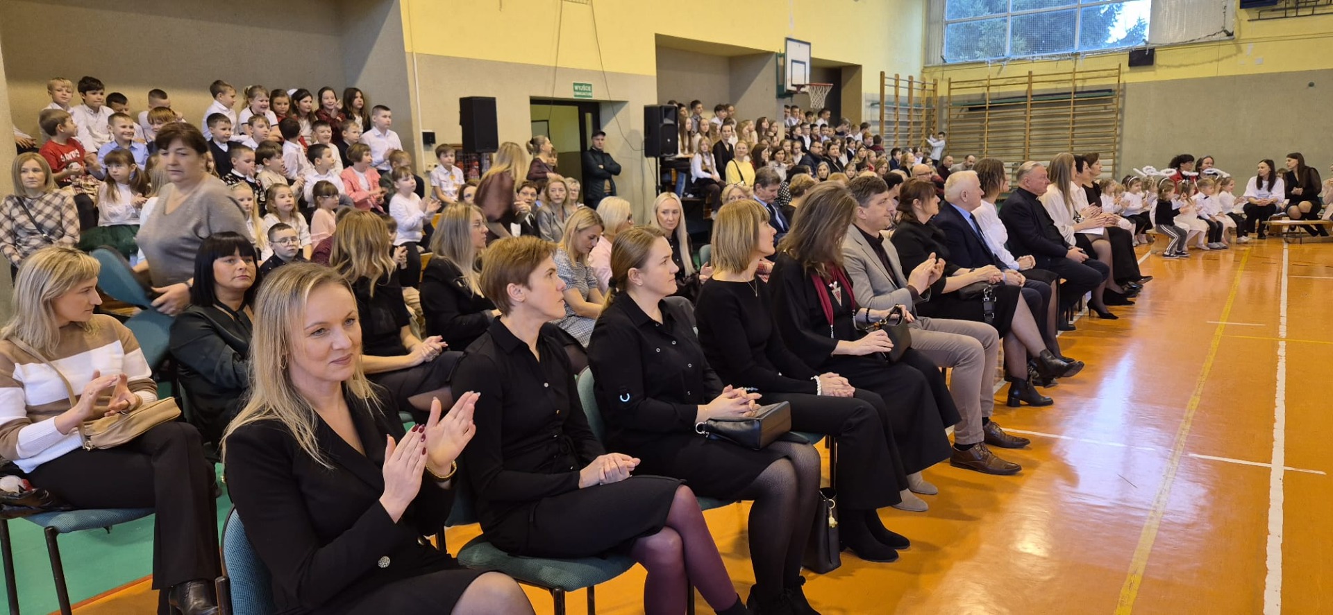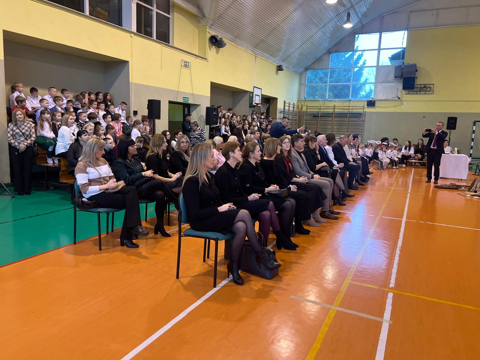 Występ został bardzo ciepło przyjęty przez zgromadzoną w hali sportowej publiczność, wśród której znaleźli się uczniowie, nauczyciele, rodzice oraz zaproszeni na uroczystość goście. Publiczność nagrodziła wykonawców gromkimi brawami, doceniając ich zaangażowanie, odwagę sceniczną i starannie przygotowane stroje.
