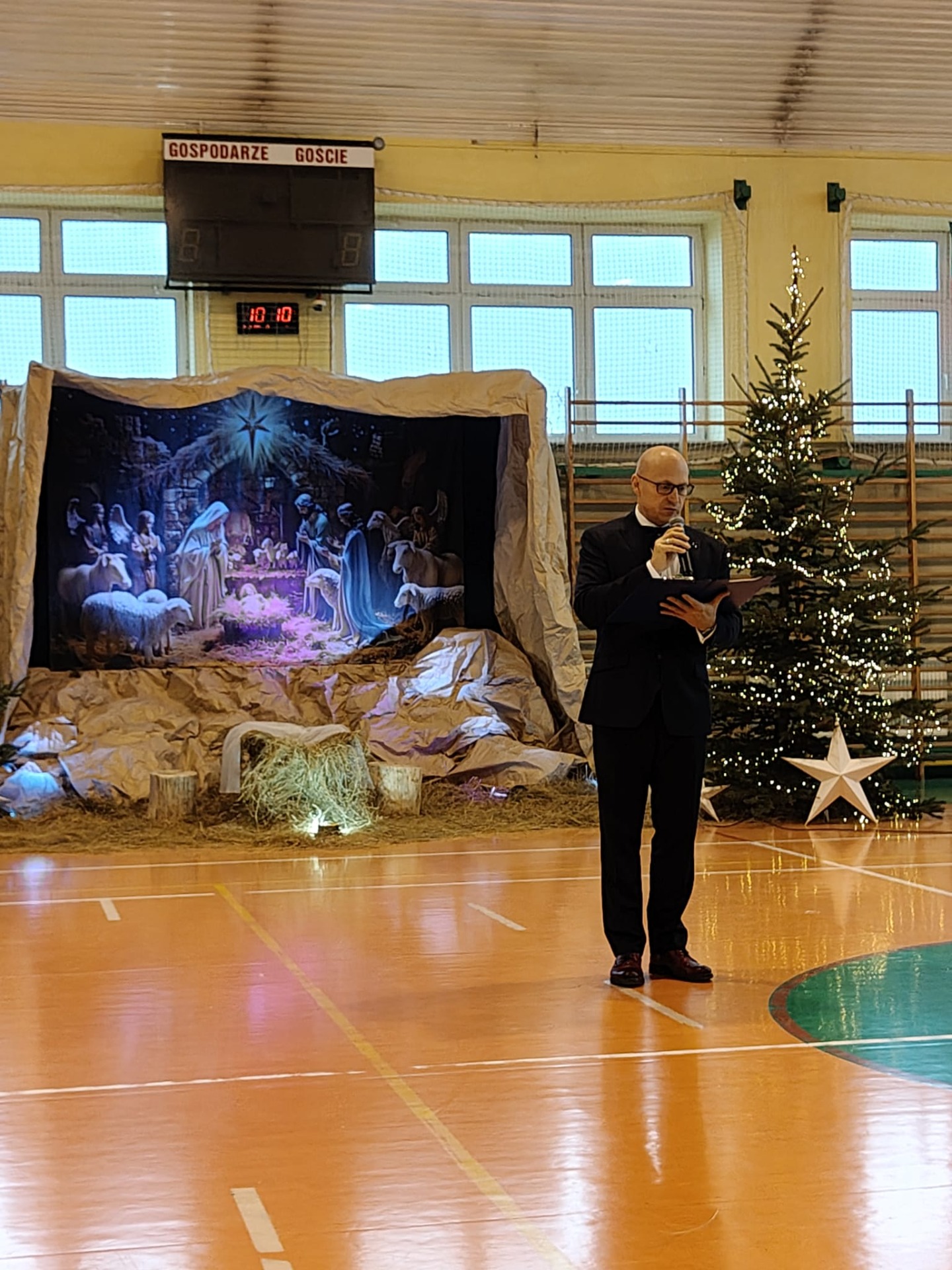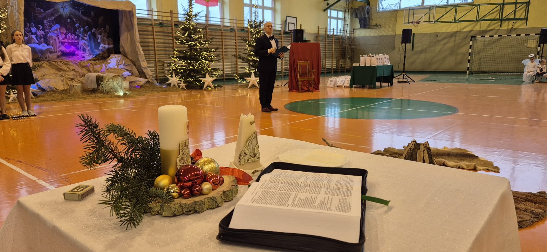 Po zakończeniu jasełek dyrektor Szkoły podziękował młodym wykonawcom i nauczycielom za zaangażowanie i trud włożony w przygotowanie przedstawienia oraz podkreślił znaczenie szkolnych tradycji, które łączą całą społeczność.